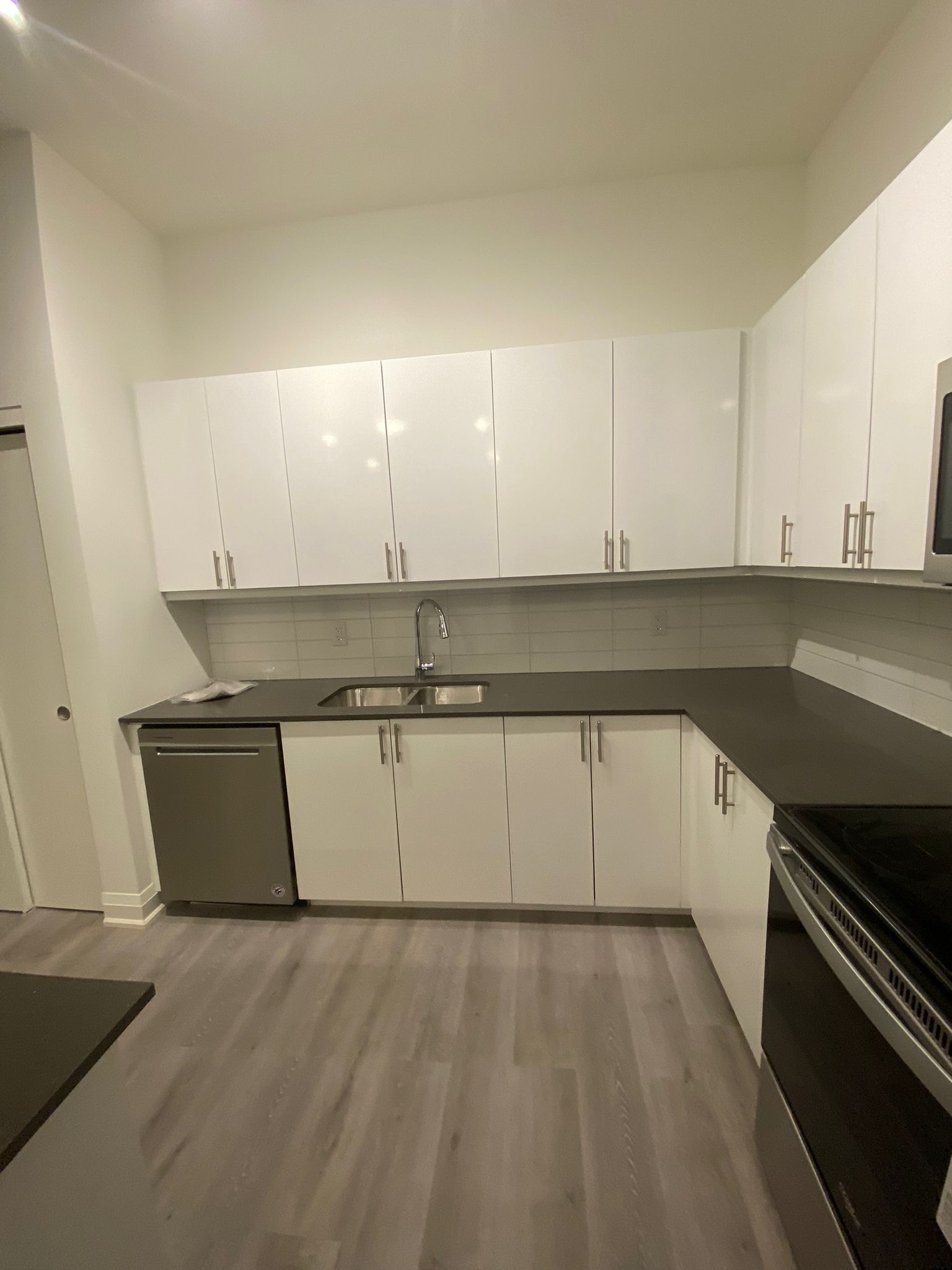 • Modern 830 sq. ft. condo with open-concept layout and high ceilings.