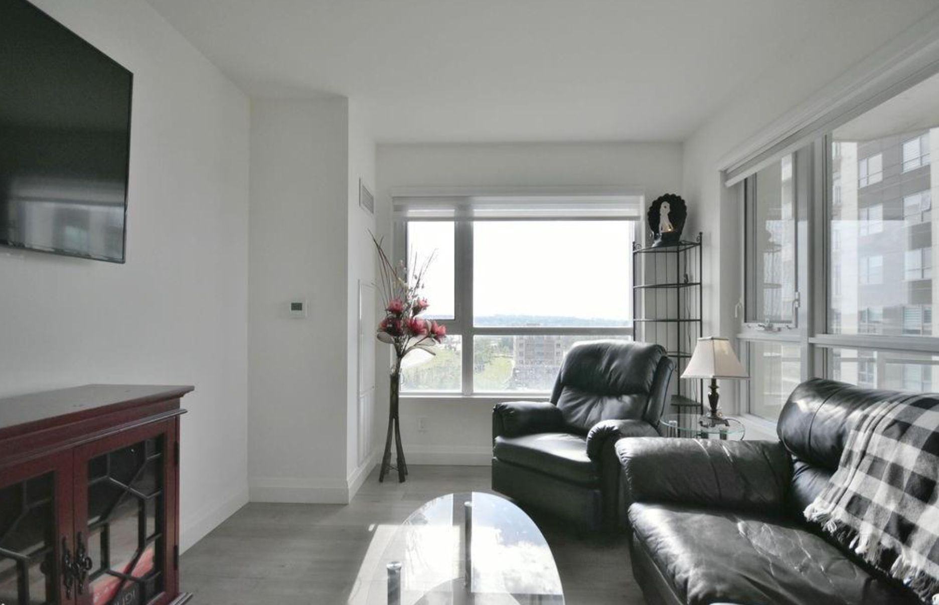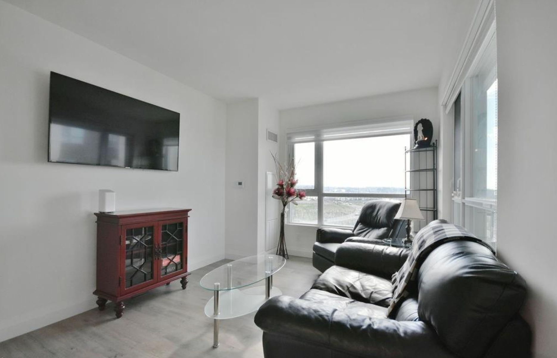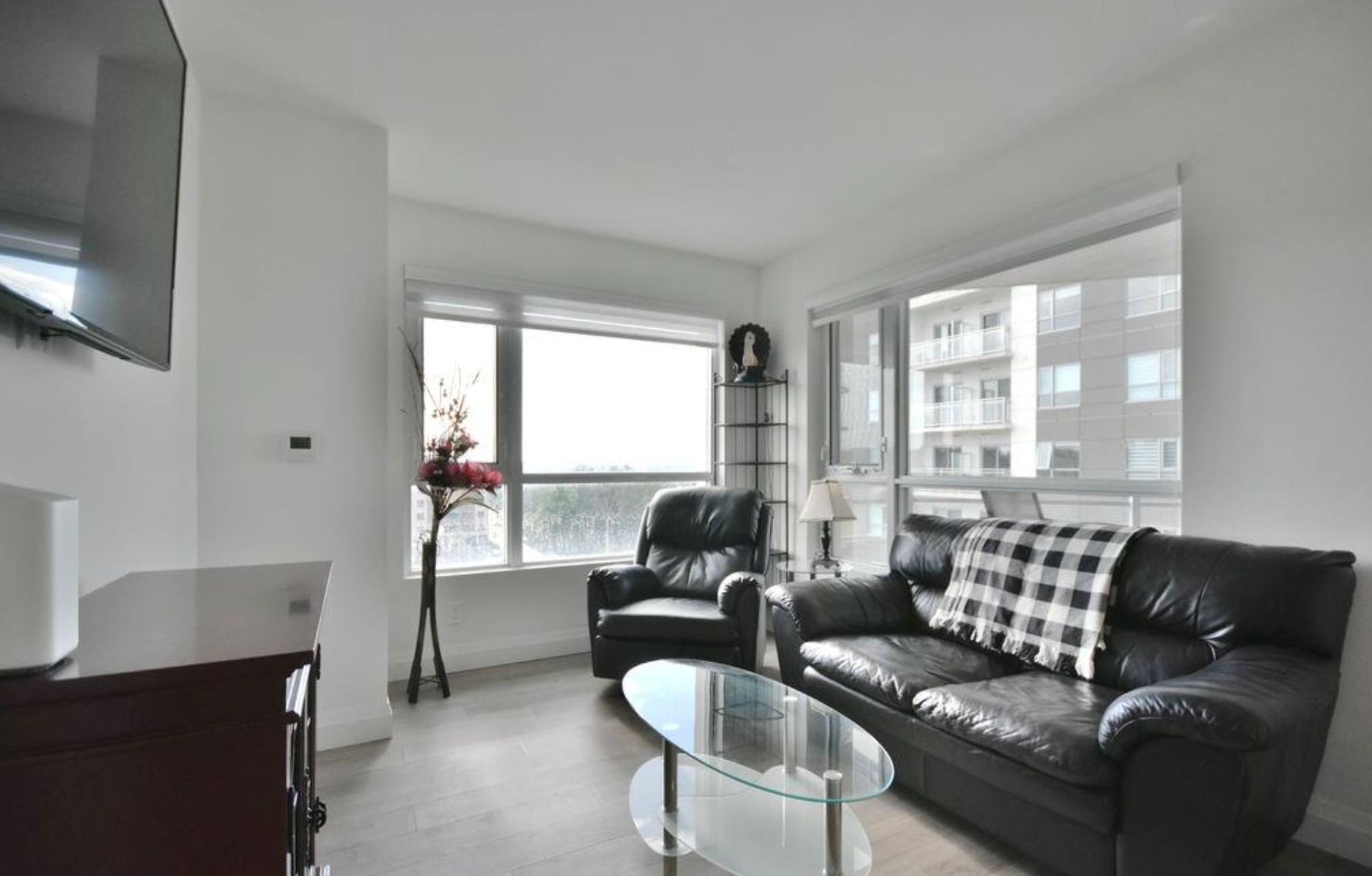 • Open-concept layout with large windows offering natural light and views.