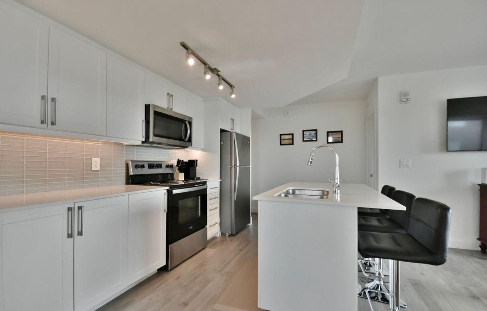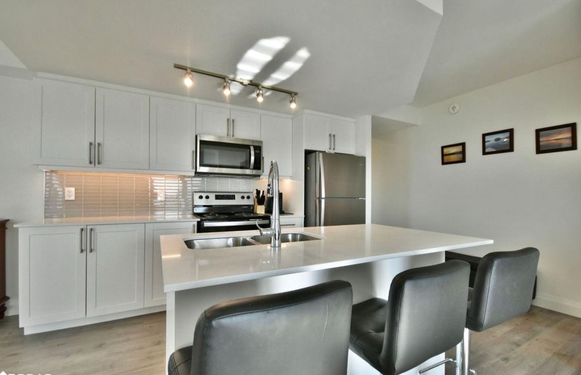 • Modern kitchen with state-of-the-art appliances and quartz countertops.