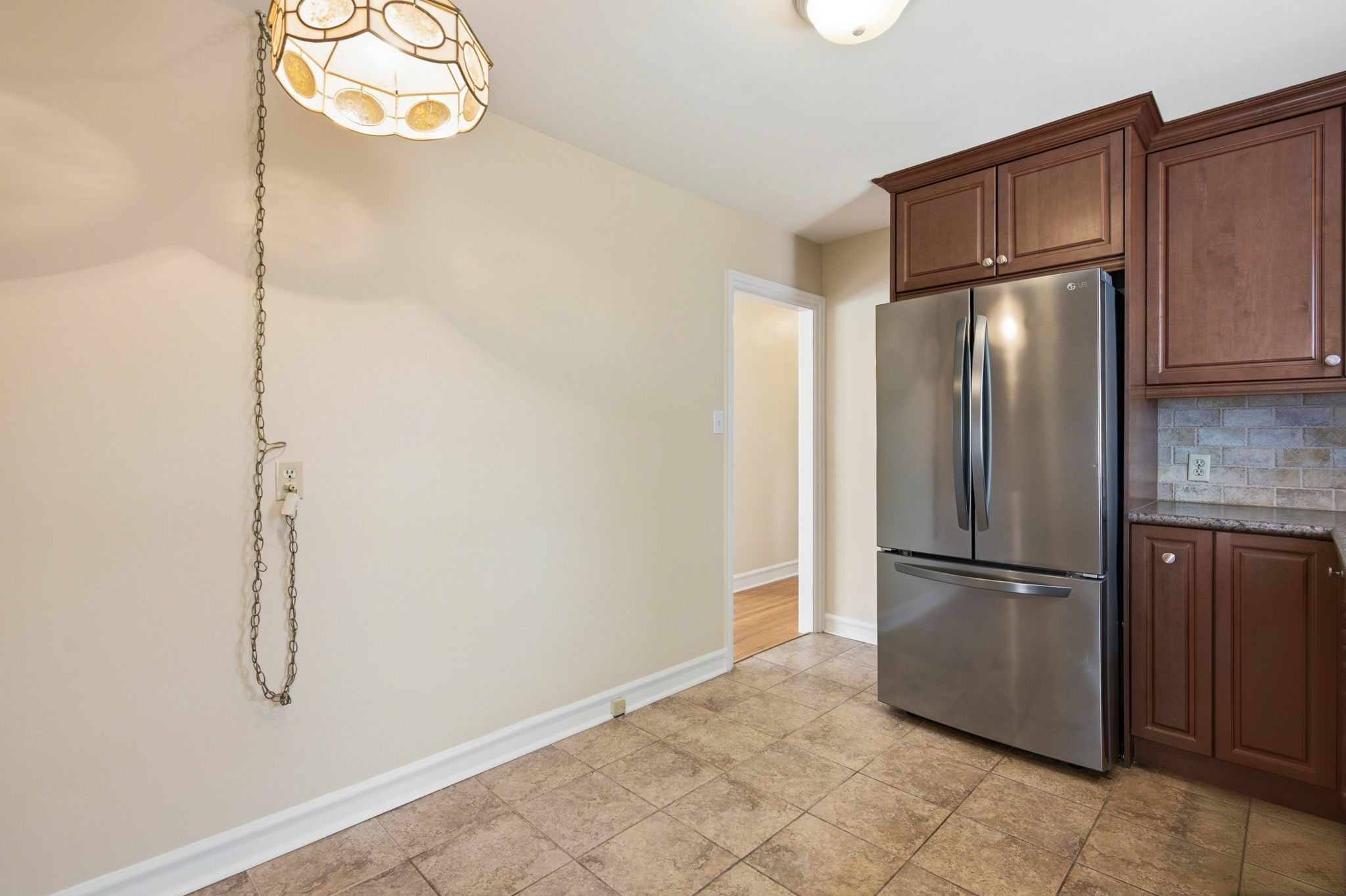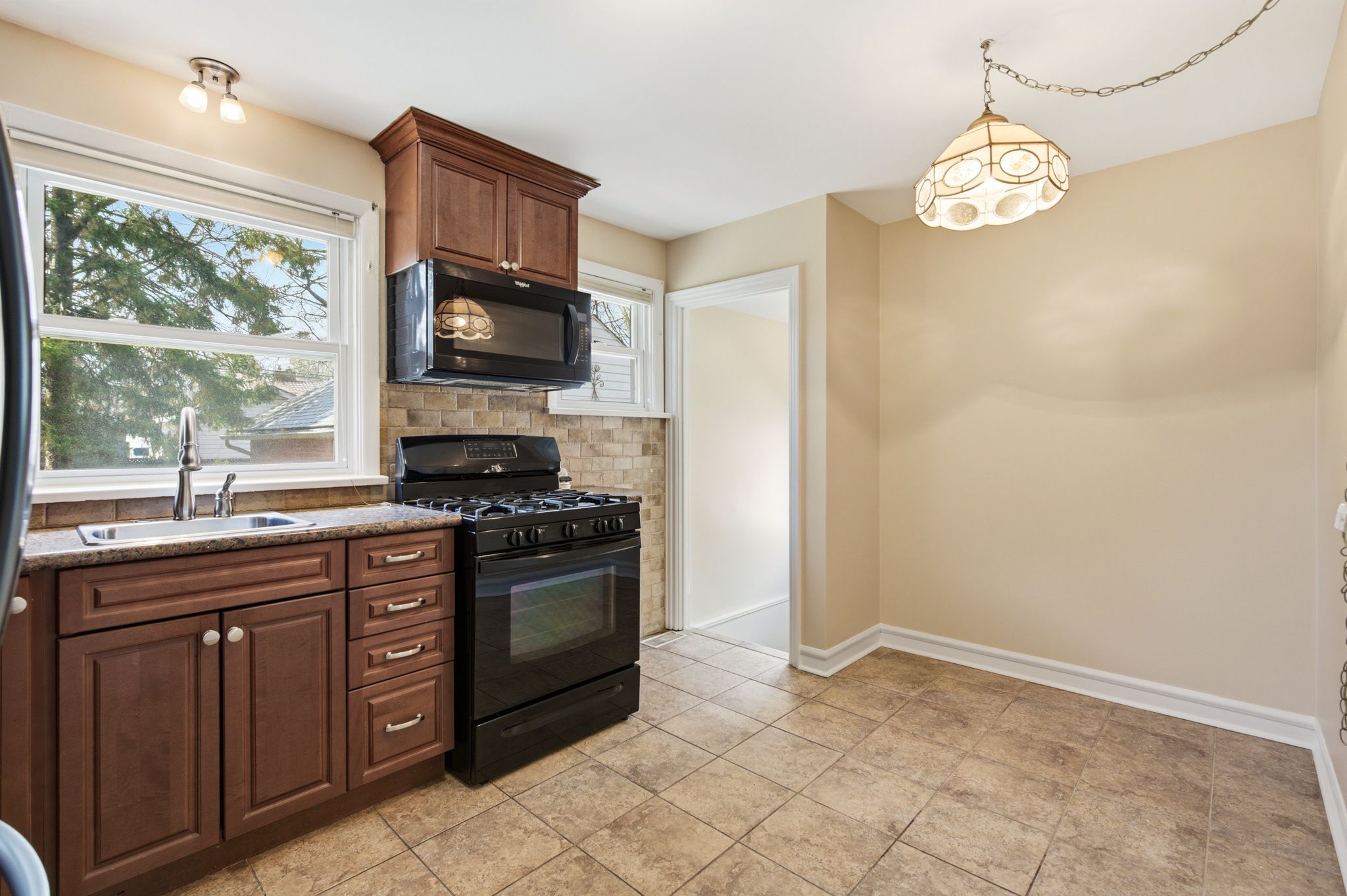 • Renovated kitchen features gas range and side-door access for versatility.
