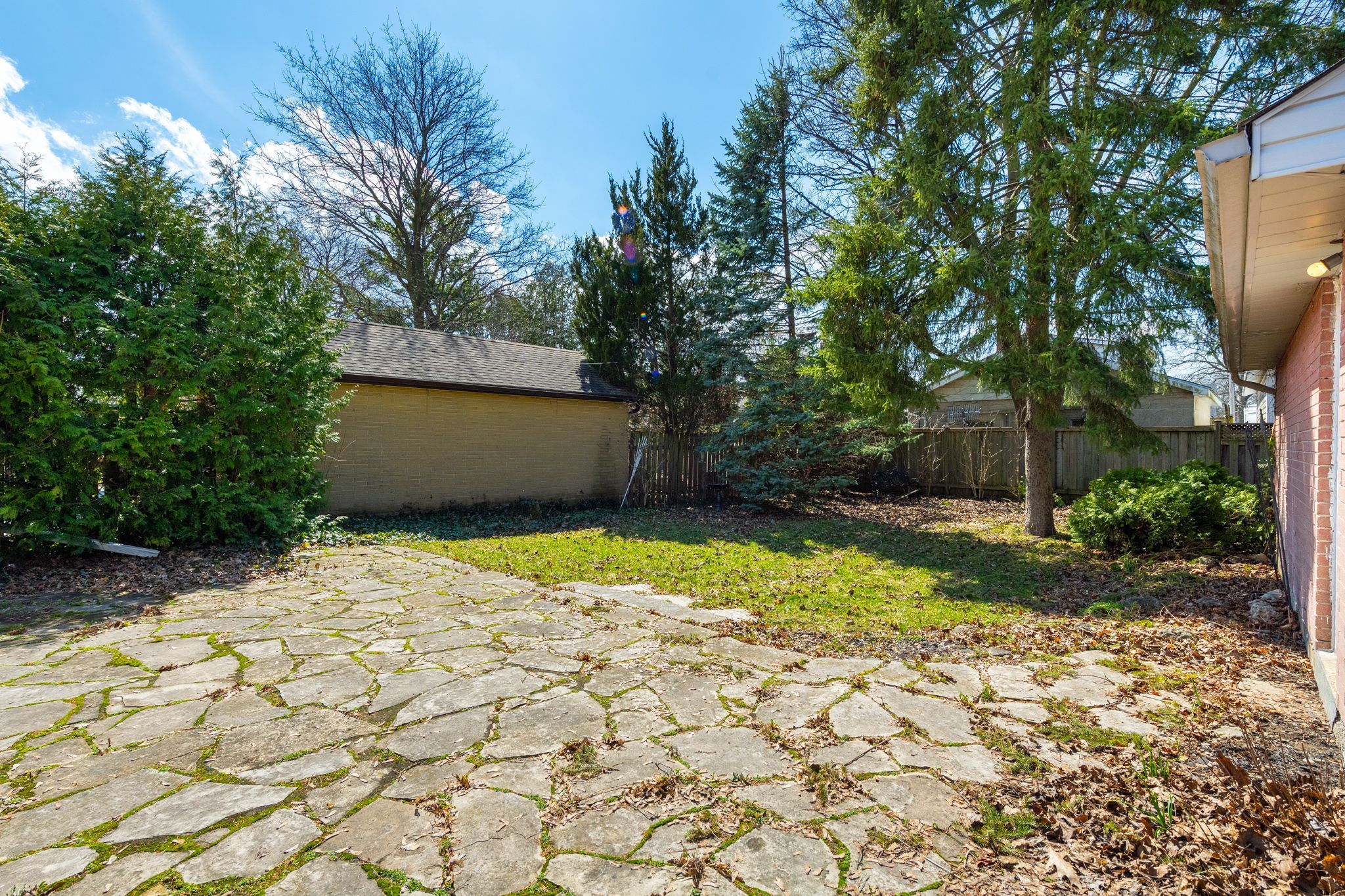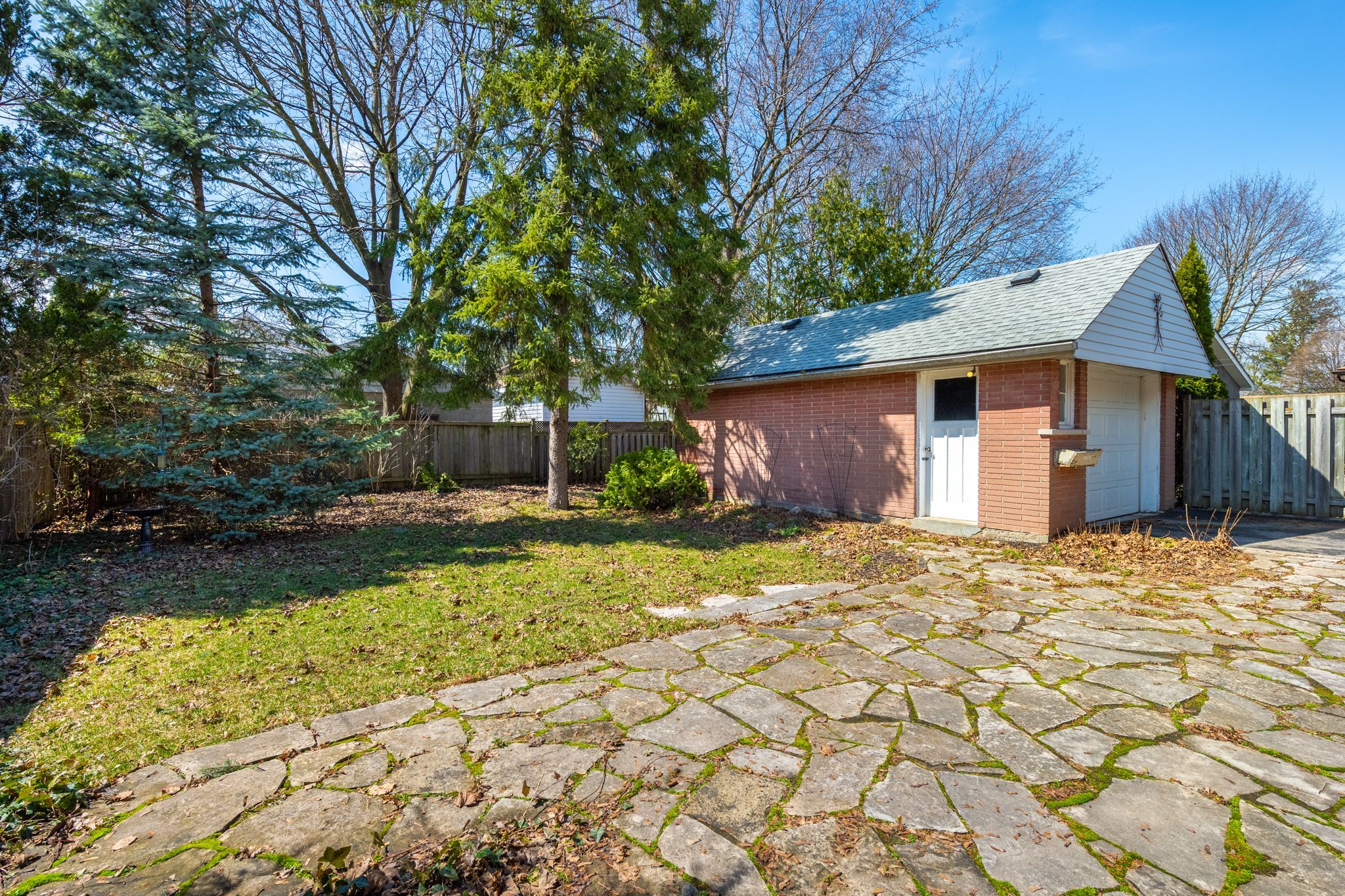 • Private landscaped lot with flagstone patio and mature trees for enjoyment.