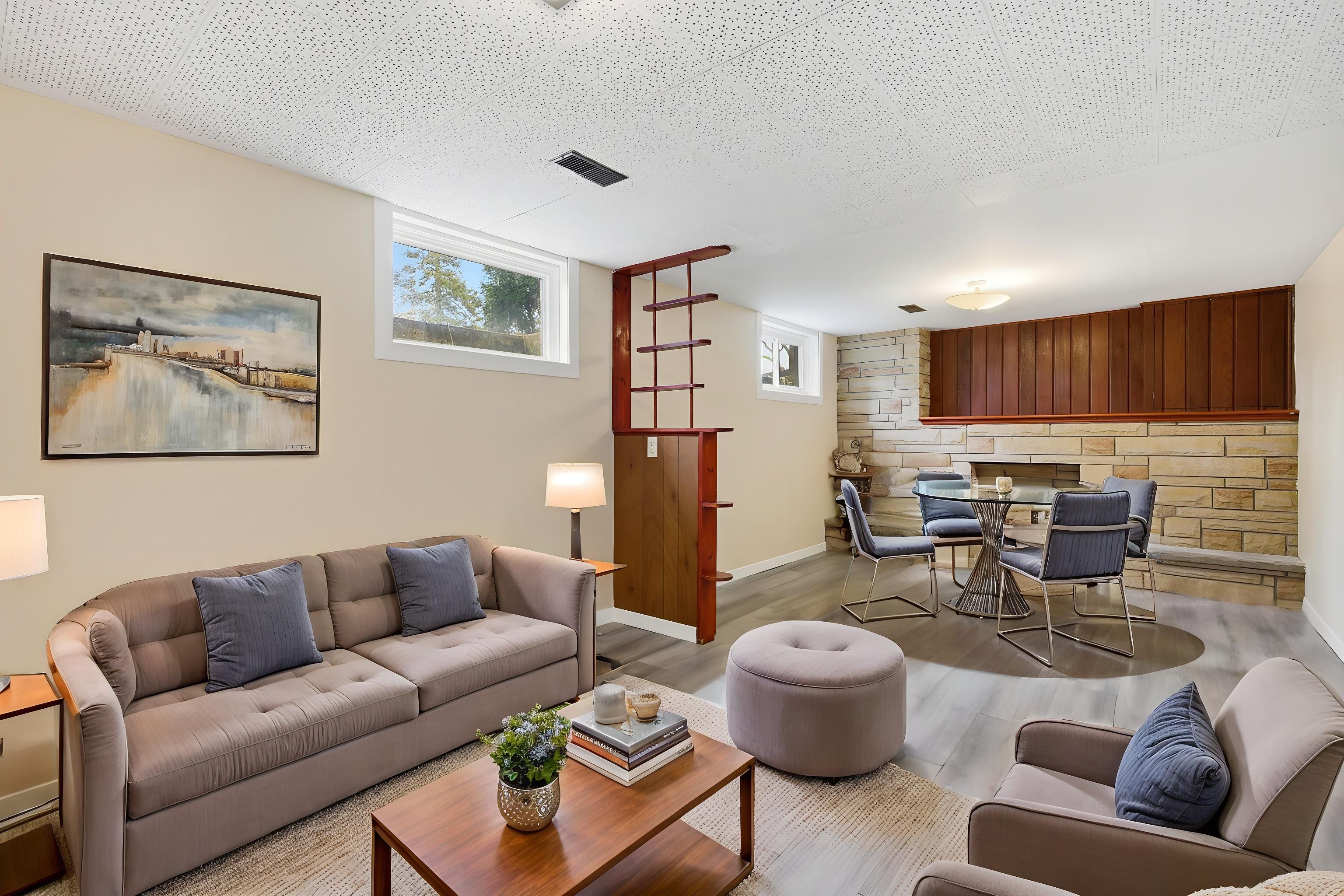 • Fully finished basement with spacious rec room, office, and bar area.