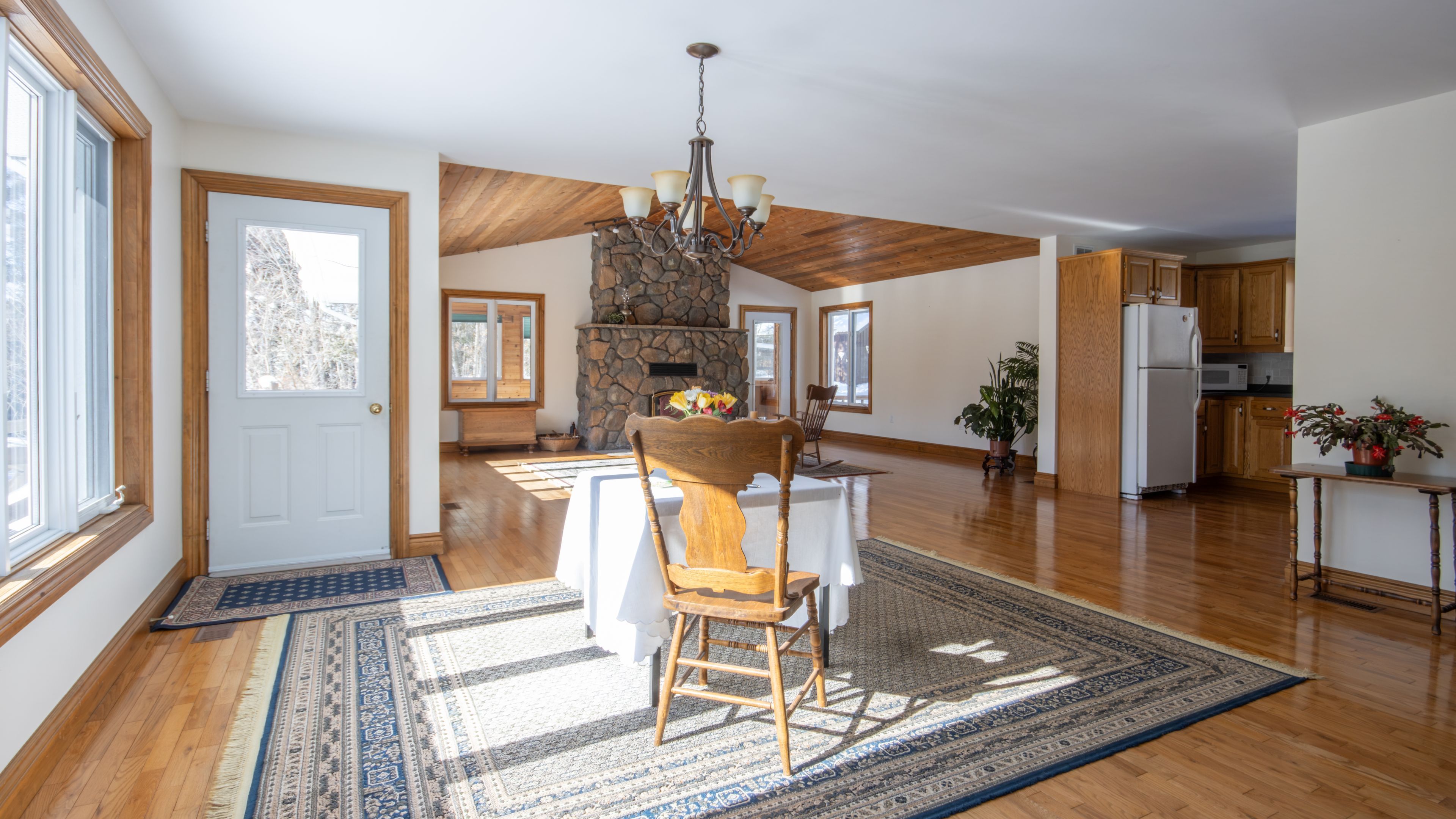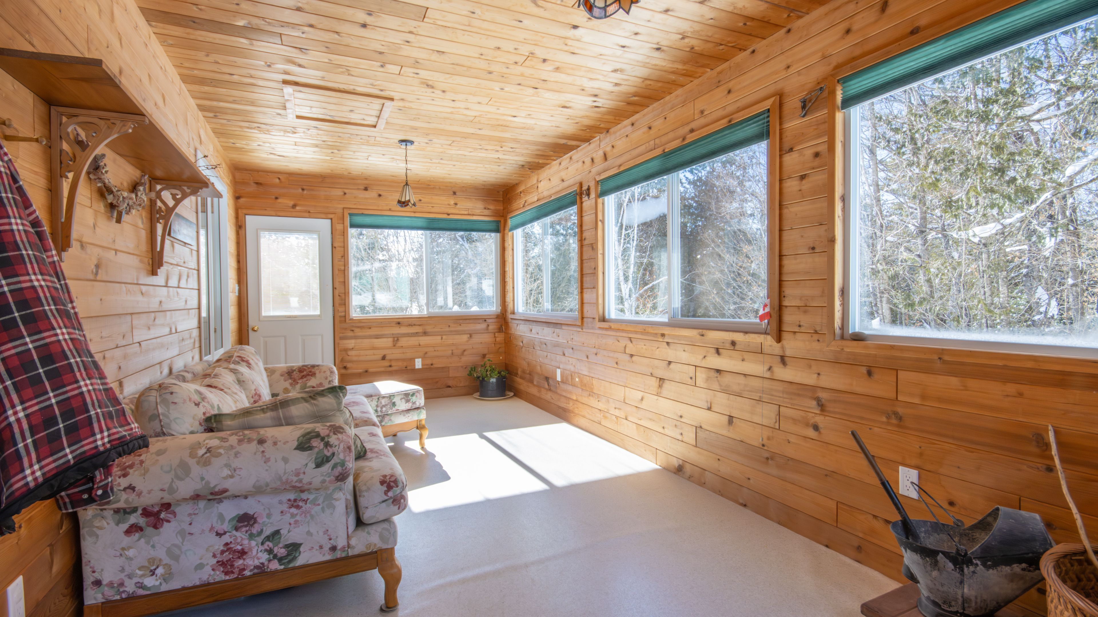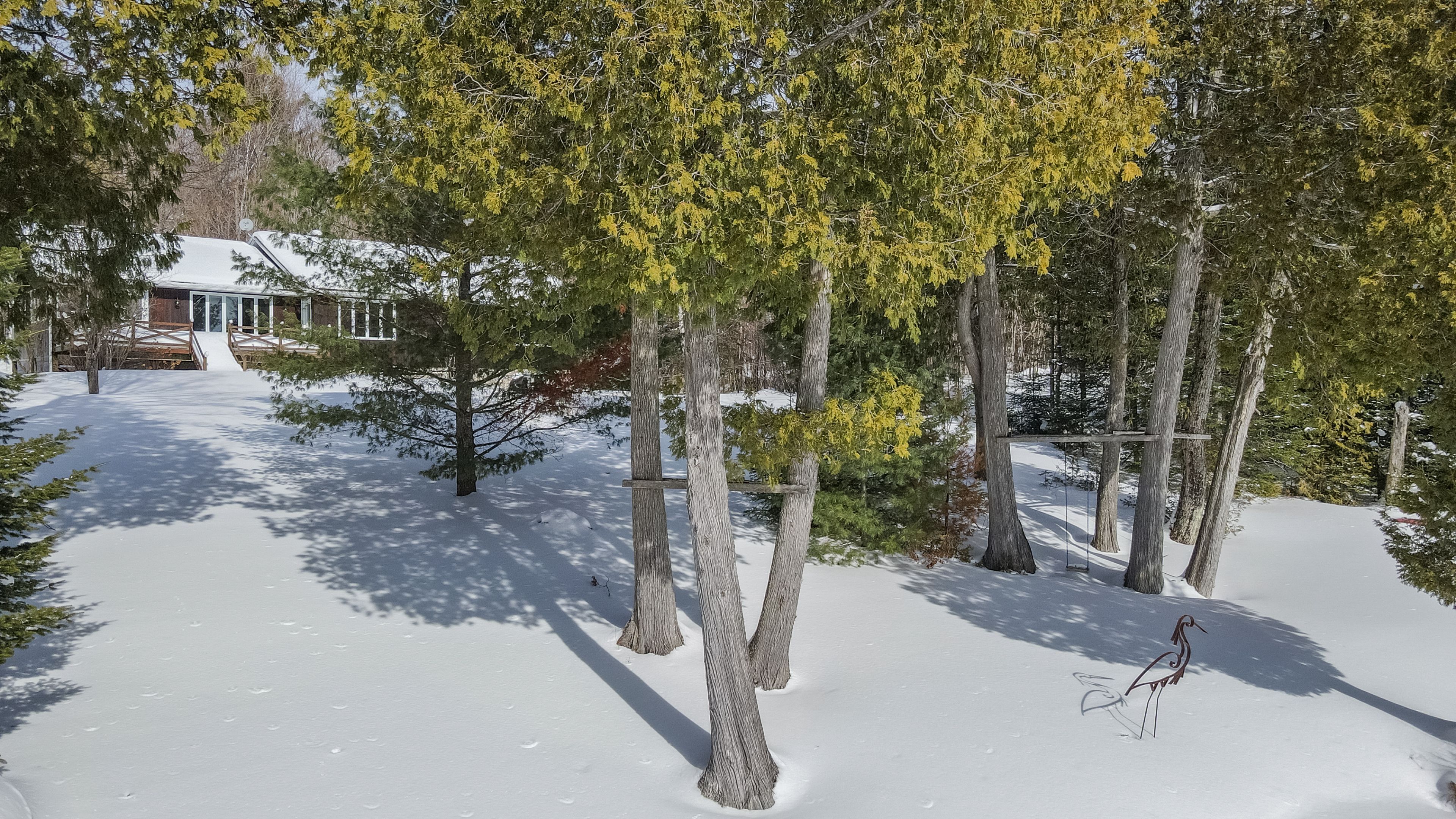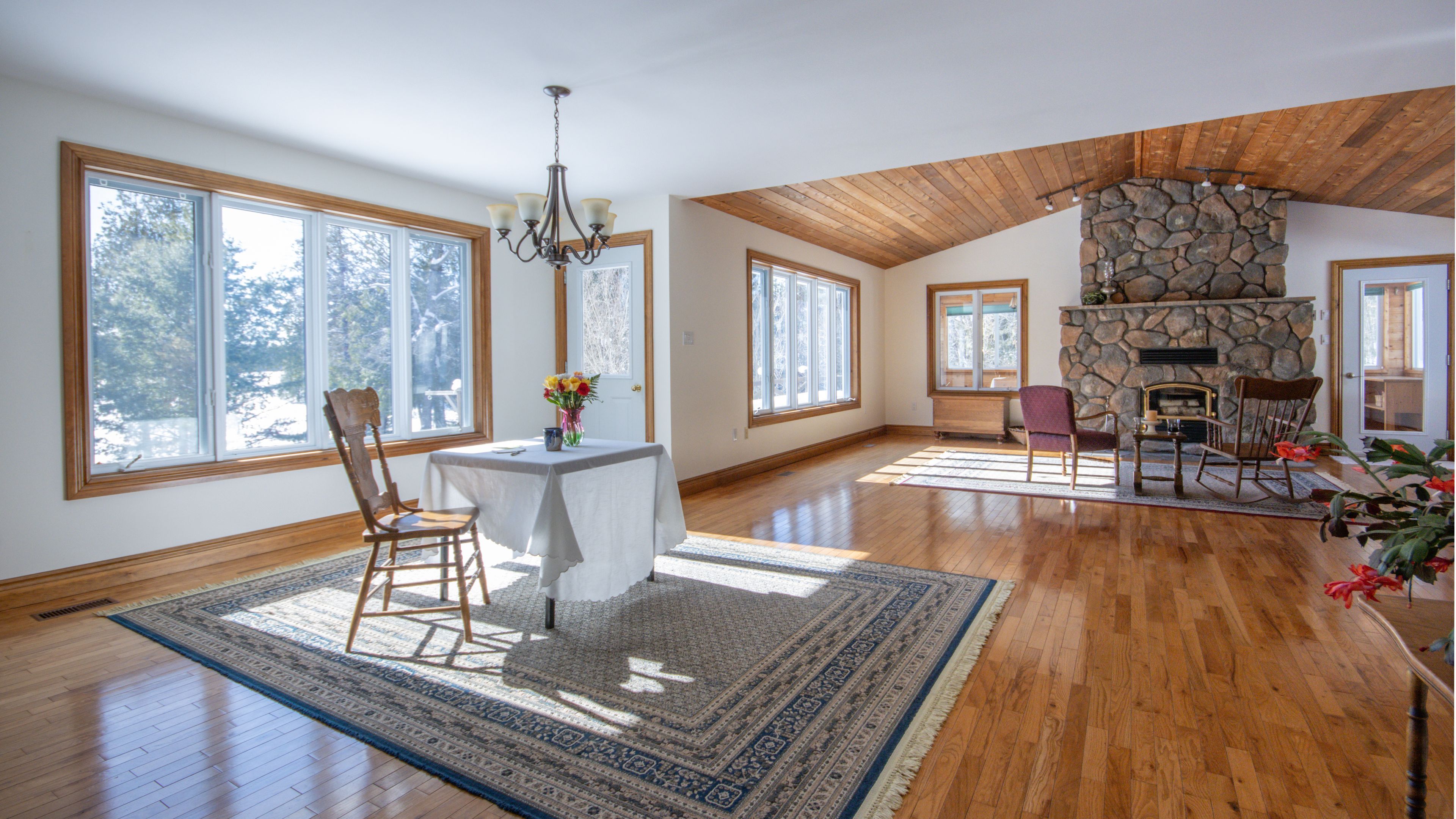 Looking for both waterfront and privacy, it doesn't get any better than this. 400 feet of sandy shoreline on 5 plus private acres. Hardwood lake is a very quiet spring fed pristine lake. Experience dragonflies hatching, call of the loons, great blue herons, and watch the sunsets from your dock. In the fall the lyndoch hills are on fire with brilliant fall colours. The 1600 square foot bungalow is built on a level lot and features open concept design with lots of windows to let the sunlight shine throughout. The living room features a floor to ceiling cultured stone fireplace with wood insert, along with a cathedral ceiling finished in cedar with gleaming hardwood floors. In the evenings you can retire to the 3 season spacious sunroom and enjoy the views. The main floor has two large bedrooms and a 3 pc bath with a whirlpool tub to relax at the end of the day. A fully functioning findlay cookstove adds a special touch to the main floor area. The lower level is finished with a large recreation room and a 3 piece bath with shower. The lower level features a walkout to the lakeside. The laundry room is quite large and can easily be converted into a bedroom, moving the laundry room to the utility room. There is a large 32 x 23 foot garage/workshop fully insulated, wired and has woodstove heat. There is also a large wood shed and a drive shed for storage.