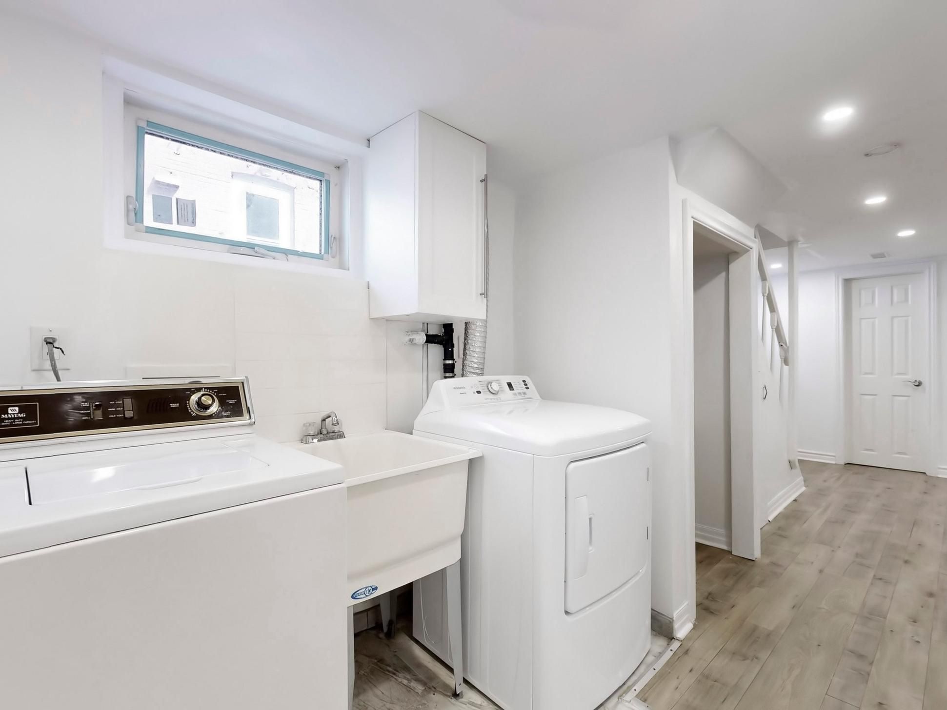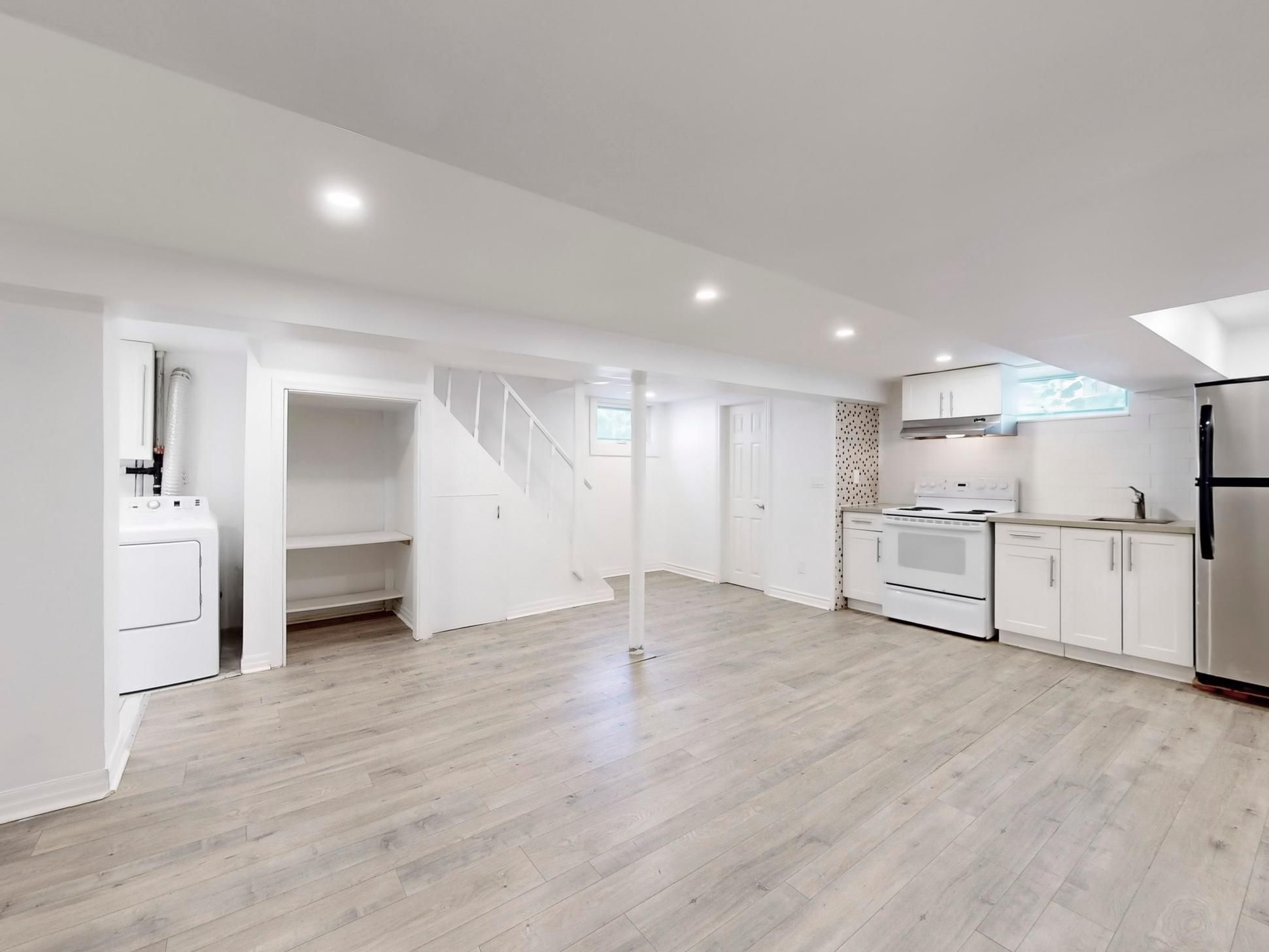 Spacious lower-level unit (studio)for lease in a semi-detached home, nestled in a quiet and family-friendly neighborhood just minutes from the beautiful scarborough bluffs beach and with quick, convenient access to public transit. This freshly painted unit features a private entrance, bright and functional layout, hardwood flooring throughout, and a modern kitchen with newer appliances. Enjoy the convenience of your own in-suite laundry with washer and dryer, as well as easy access to nearby supermarkets, shopping centers, restaurants, banks, parks, and schools. Perfectly suited for young professionals seeking a comfortable home in a safe and welcoming community. 35% utilities sharing with the upper level tenant.