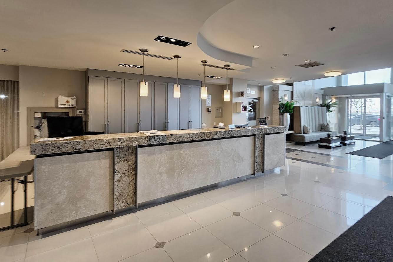 • Bright open-concept suite featuring 12ft ceilings and large floor-to-ceiling windows.