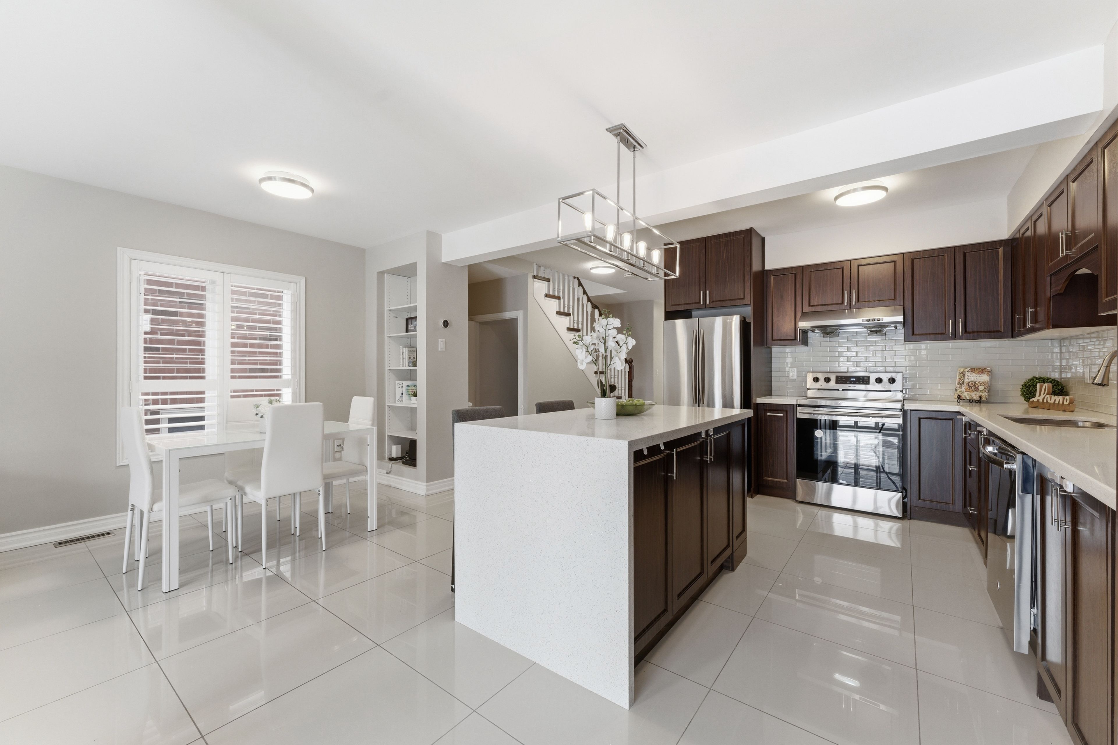 The perfect family home... Thoughtfully updated and designed for modern living. This beautifully maintained semi-detached welcomes you with a bright, open layout and a large, tastefully renovated kitchen featuring an abundance of cabinet space, a spacious island with a waterfall quartz countertop, and ideal flow for everyday living and entertaining. Upstairs, you'll find 3 generous bedrooms, each with its own walk-in closet, an updated primary ensuite with separate tub & shower, plus a stunning skylight that fills the second-floor hallway with natural light. The finished basement adds even more functional space, complete with an additional bedroom and a bathroom. The exterior is just as impressive, offering interlocking across the front, side, and backyard; low-maintenance and perfect for outdoor enjoyment. Located in a highly sought-after area, this home is close to top-ranked schools, richmond green park, transit, shopping, restaurants, and all the amenities a family needs. Move-in ready and meticulously upgraded, this is one you won't want to miss!