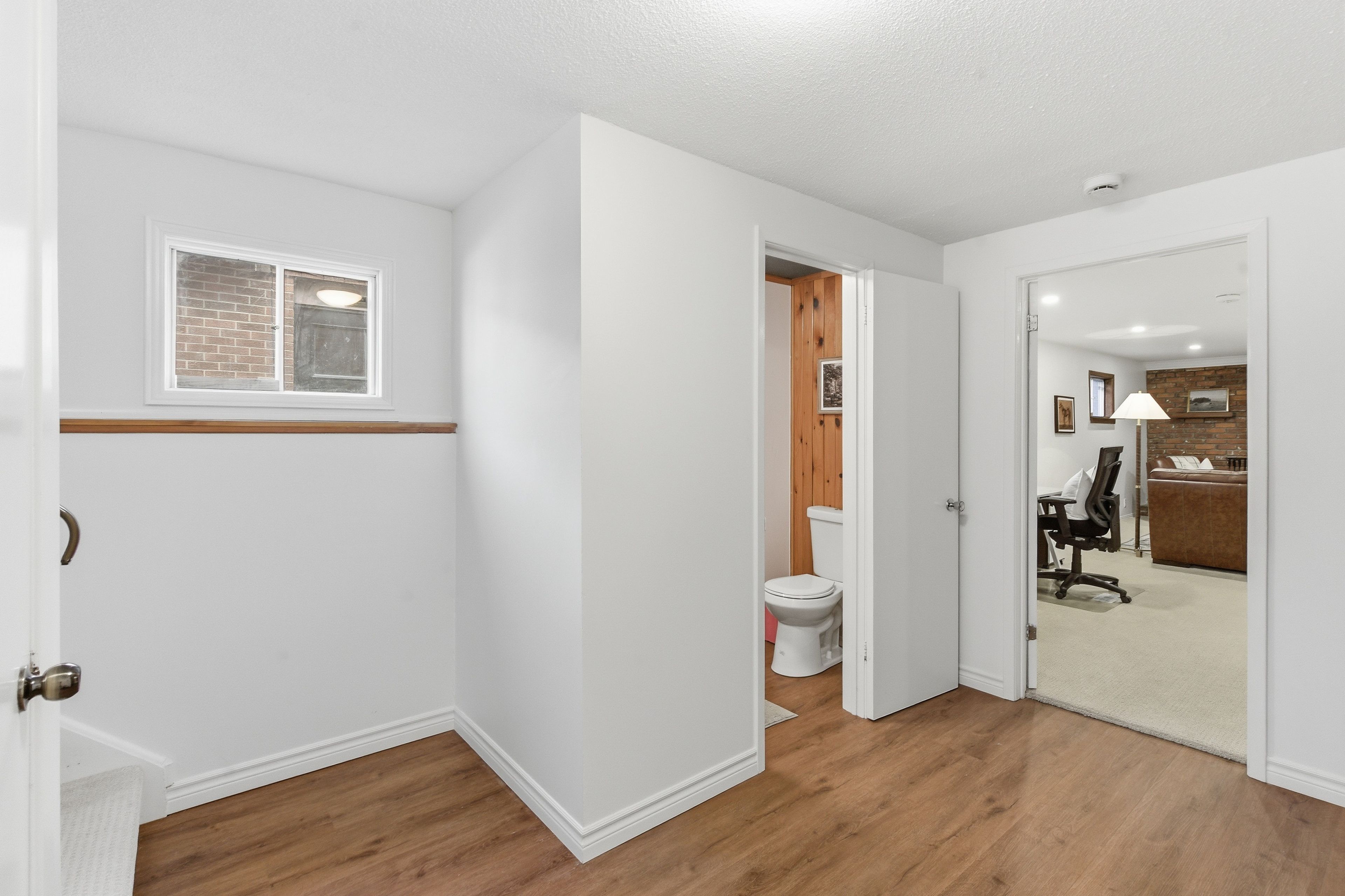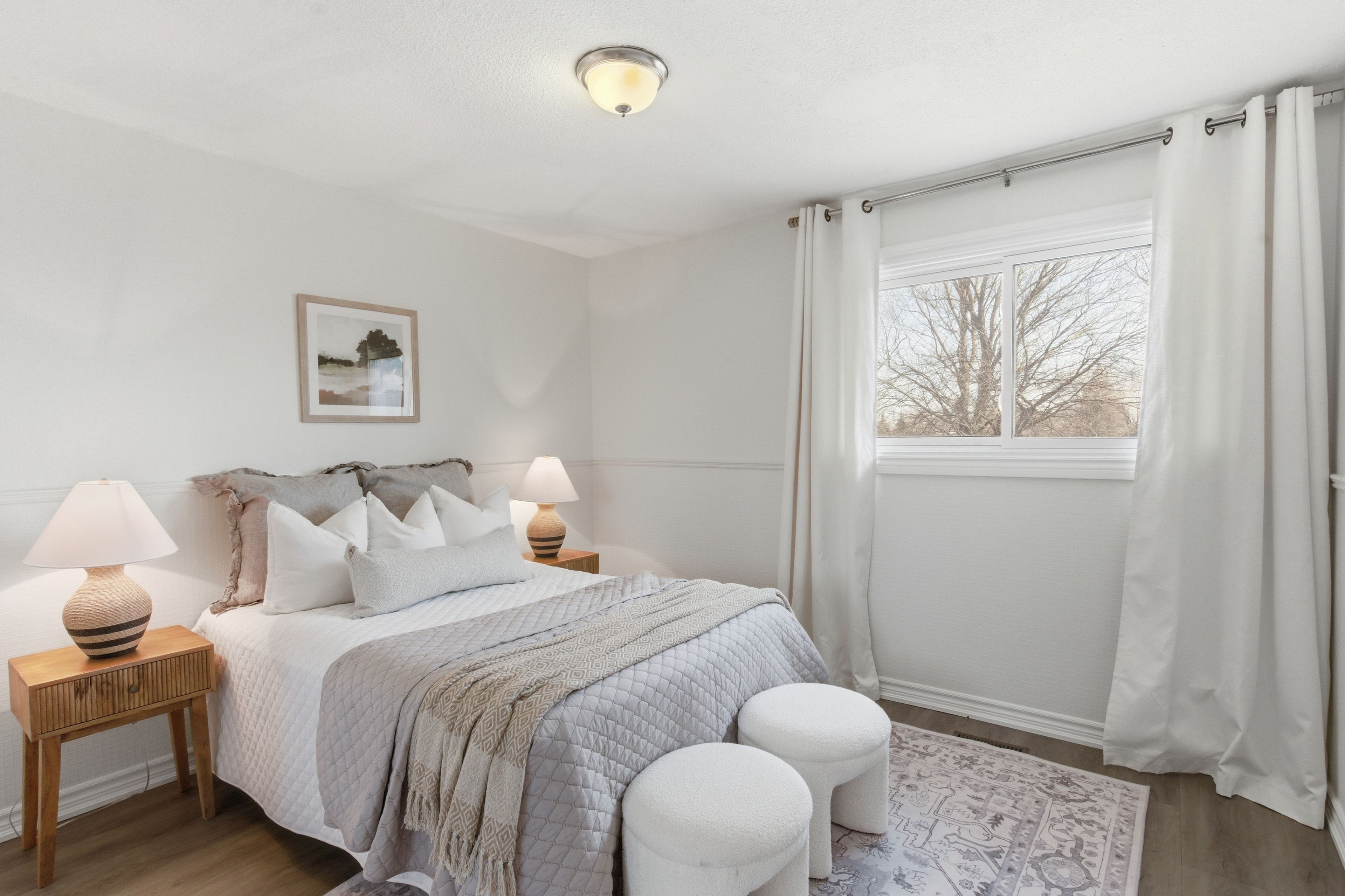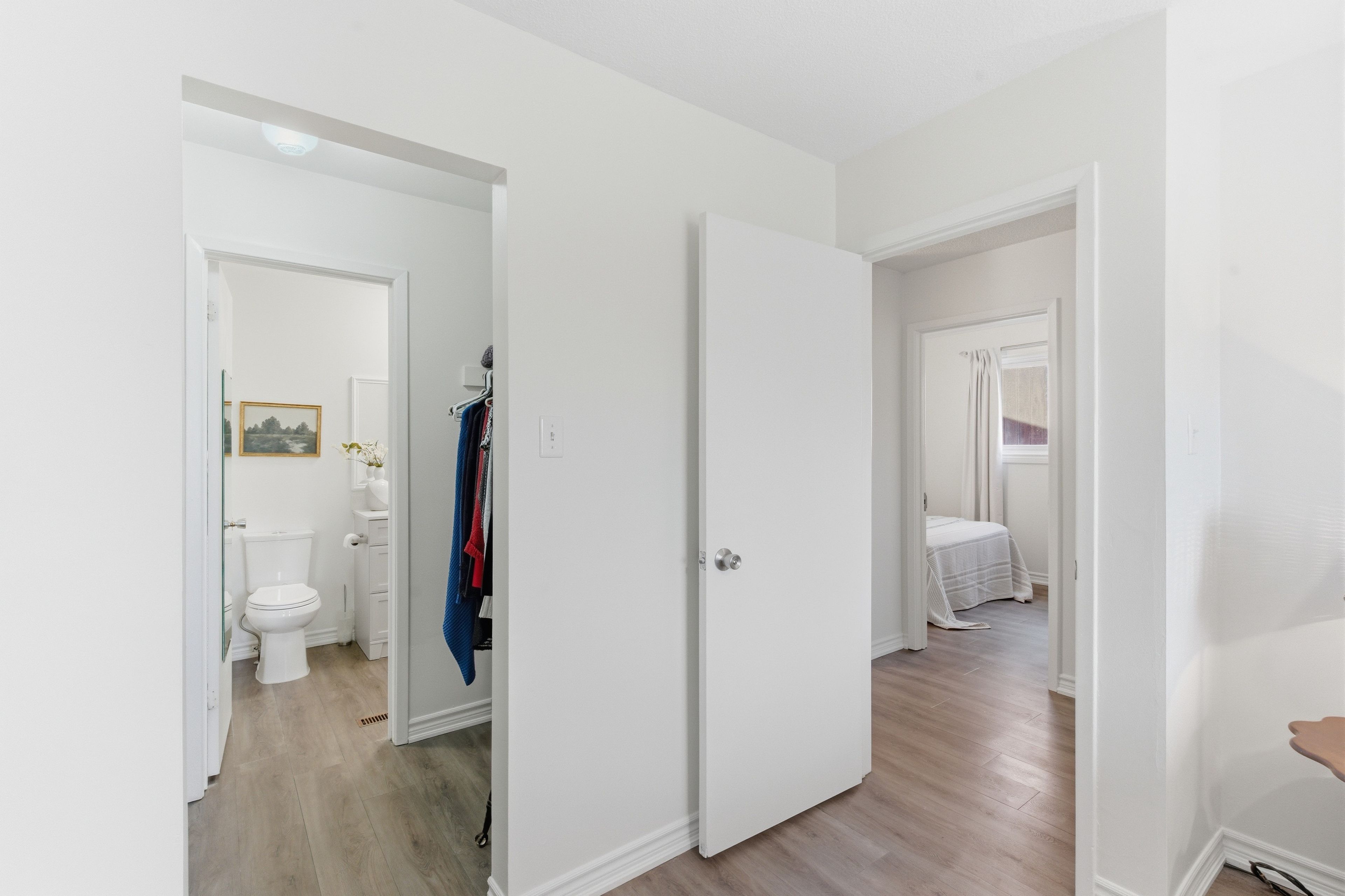 Welcome to this beautifully maintained semi-detached home nestled in the highly sought-after lynde creek community of whitby. Offering a functional and spacious layout, this home features 3+1 bedrooms and 3 bathrooms-perfect for families, multi-generational living, or those seeking additional space. The main level boasts a bright, open-concept design with stunning laminate flooring throughout. The living and dining areas flow seamlessly into a well-appointed kitchen, creating an ideal space for both everyday living and entertaining. Three generously sized bedrooms are conveniently located on this level, including a primary retreat complete with a walk-in closet, semi ensuite, and a walkout to a deck-perfect for enjoying your morning coffee or unwinding in the evening. The finished lower level, with its own separate entrance, provides outstanding flexibility, featuring a generous rec room, a 2-piece powder room, and a fourth bedroom with a 3-piece ensuite-ideal for guests, extended family, or a private home office. Backing onto guthrie park, this home provides a serene, nature-filled setting with no rear neighbors. Enjoy easy access to nearby otter creek, scenic walking trails, and an abundance of mature trees that enhance the peaceful surroundings. Perfectly positioned just minutes from schools, shopping, transit, and all key amenities, this home delivers an ideal balance of comfort, convenience, and lifestyle. A rare opportunity in a family-friendly neighborhood-don't miss your chance to call this exceptional property home! Extras: 2017 installation of 200 amp panel, 2017 kitchen window/bedroom window, basement bedroom window, 2018 main bathroom reno, 2020 attic insulation, 2021 reliance furnace and ac, 2024 new patio door, 2024 basement full reno, 2026 main floor paint including kitchen cupboards.