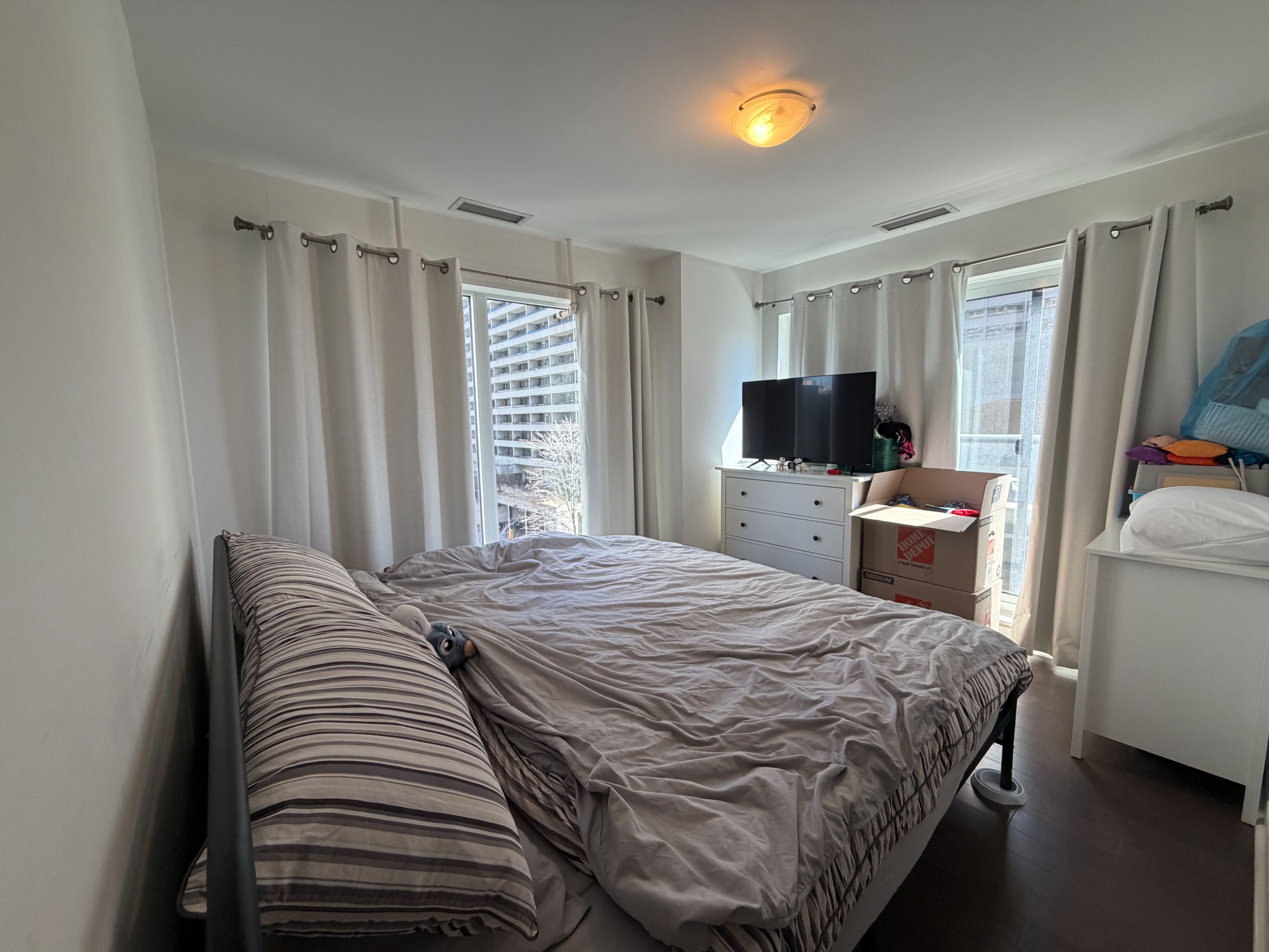 • Bright corner suite with 2 bedrooms, den, and 2 full bathrooms.