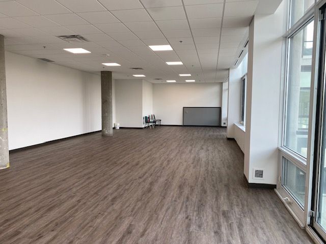 • Bright 915 sq ft commercial space with west facing windows and two balconies.