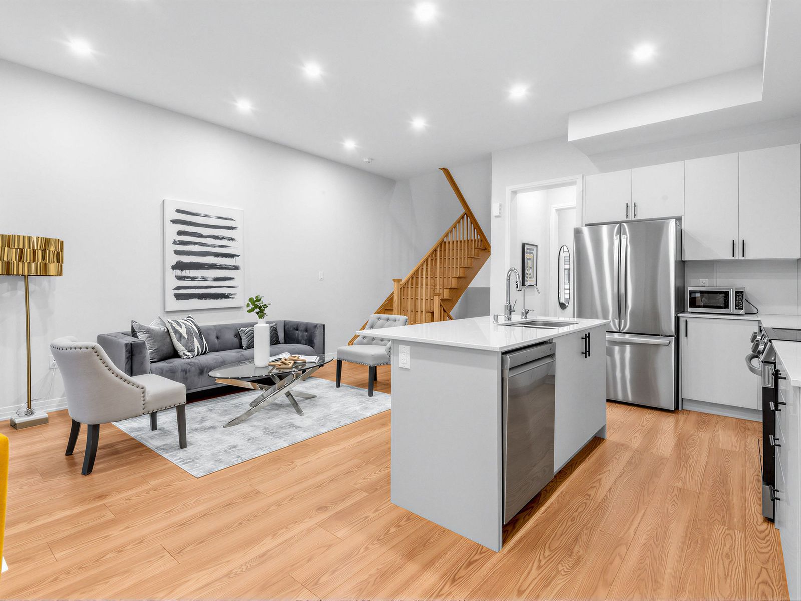 • Upgraded kitchen features stainless steel appliances and a spacious island.
