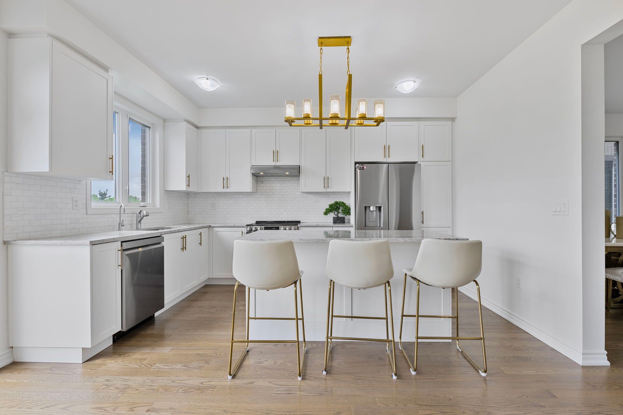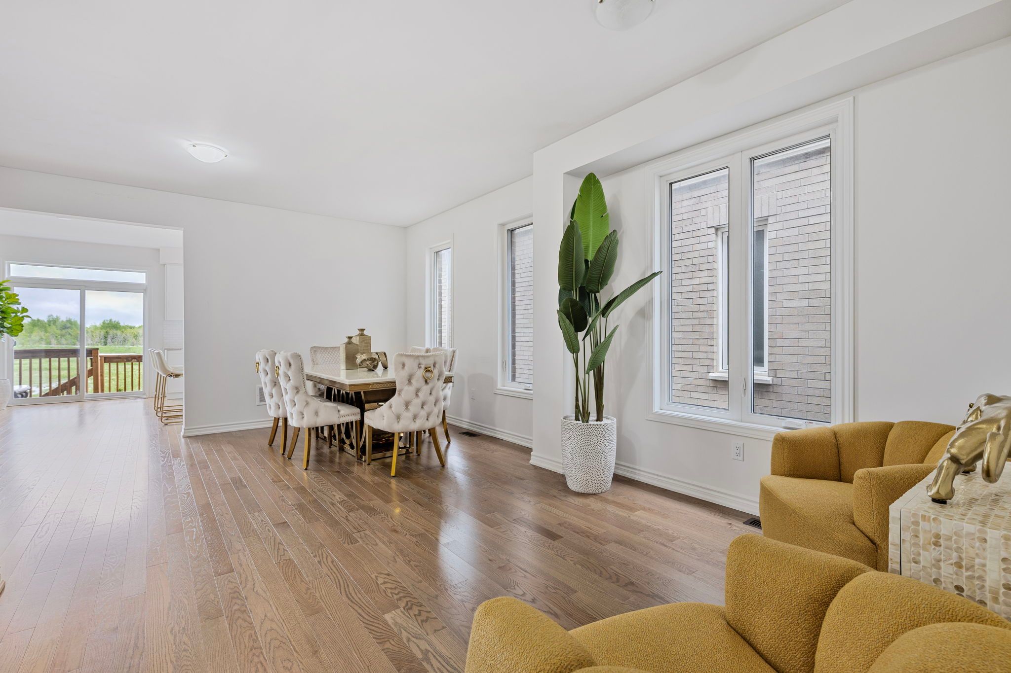 Step into this stunning 2-year-new home featuring a sleek modern elevation and over 3,000 sqft of thoughtfully designed living space. With 5+1 bedrooms and 5 bathrooms, there's room for the whole family-and then some. The open-concept main floor is an entertainer's dream, highlighted by an upgraded kitchen with quartz countertops, stainless steel appliances, and a seamless flow into the spacious family room. A rare main floor guest suite with a full bath and closet offers ideal accommodation for seniors or guests with mobility needs. Upstairs,you'11 find 4 generously sized bedrooms, including two with private ensuites and an additional full bath, perfect for growing families or hosting visitors. Enjoy peace and privacy as your backyard backs onto scenic green space and walking trails, bringing nature right to your door. All of this just minutes from hwy 400, top-rated schools, shopping, and everyday essentials. A rare blend of style, space, and location, don't miss your chance to make this home yours.