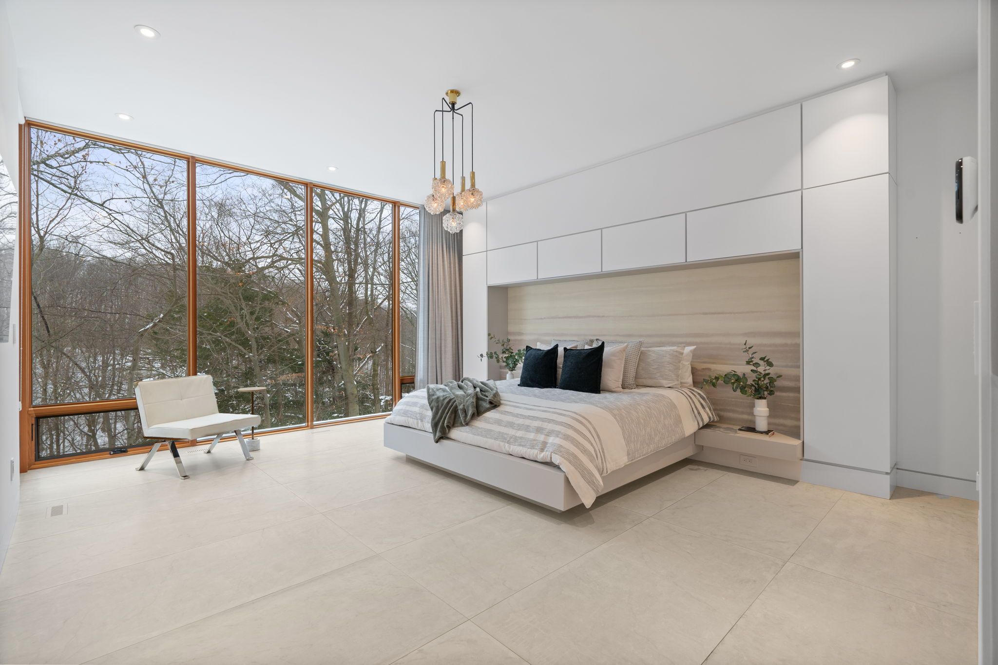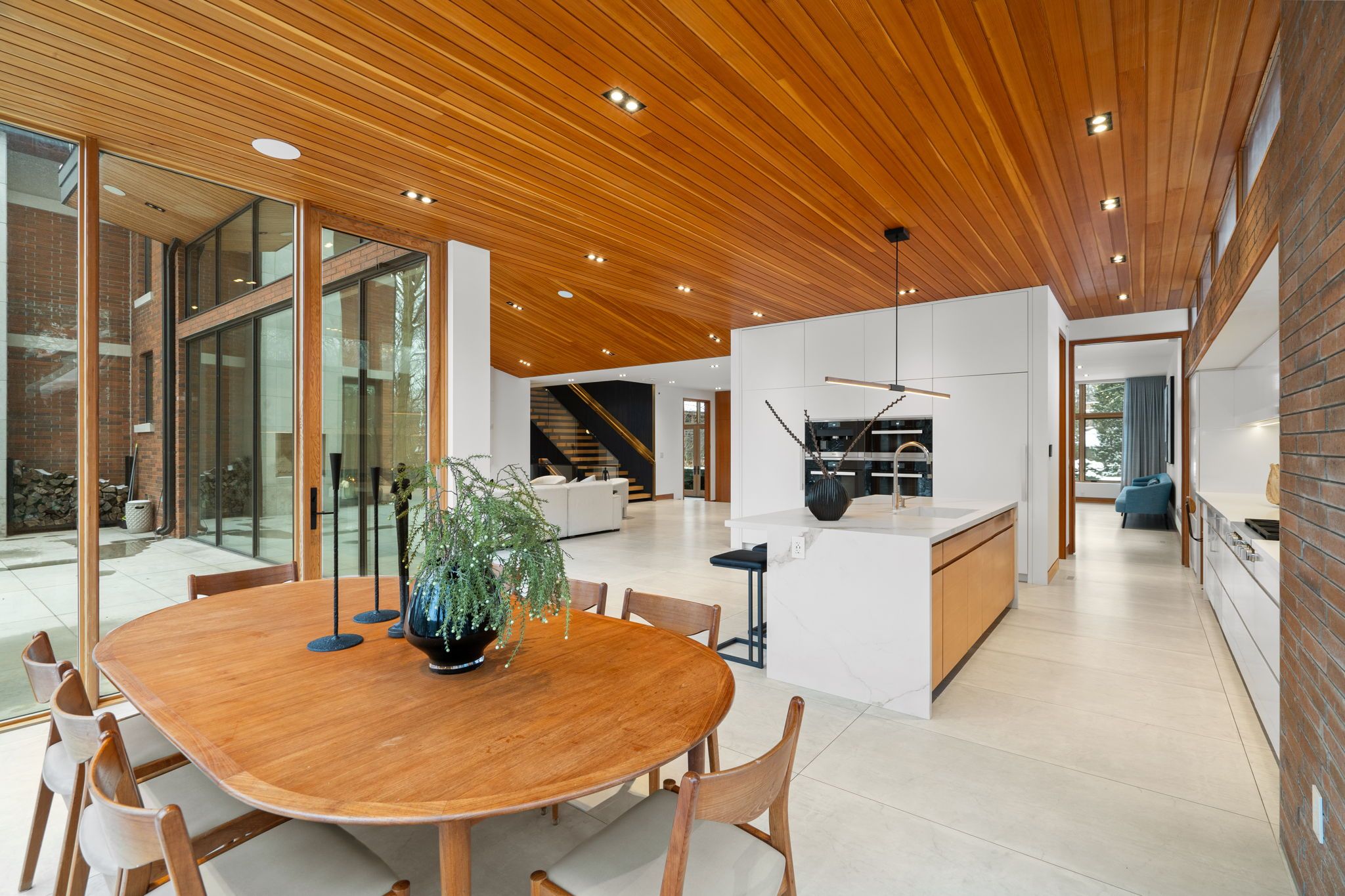 West coast inspired - architecturally significant custom residence. Designer palette and nestled at cul-de-sacs end. In perfect harmony of sleek design and timeless modern elegance. Picturesque natural treed setting overlooking private ravine views. This home boasts an open-concept floor plan, soaring ceilings, floor-to-ceiling windows and cascading natural light. Designed for both luxury, functionality & family entertainment being amenity rich with an exciting interior slide from main floor to lower level (not just for kids). The main living area is an entertainers dream, featuring a sophisticated living room with a sleek wood-burning fireplace and a chefs kitchen outfitted with top-of-the-line appliances, refined finishes and eating area. The spacious dining area is equally impressive, providing the perfect setting for hosting. The primary suite is a serene retreat, offering floor-to-ceiling windows, a walkout to the deck, a spa-like ensuite, and a large walk-in closet. Additional bedrooms are generously sized, each featuring walk-in closets and beautifully designed private ensuites washrooms. The expansive lower level provides exceptional versatility, complete with a large recreation room that opens to the backyard and overlooks a scenic ravine, making it an ideal space for both relaxation and entertaining. Step outside to discover a serene backyard oasis, backing onto a lush ravine that offers both privacy and breathtaking natural views. This home seamlessly blends indoor and outdoor living. This rare modern retreat is situated within exclusive neighbourhood with convenient access to top-tier amenities, renowned park, public and private schools, shops and dining.