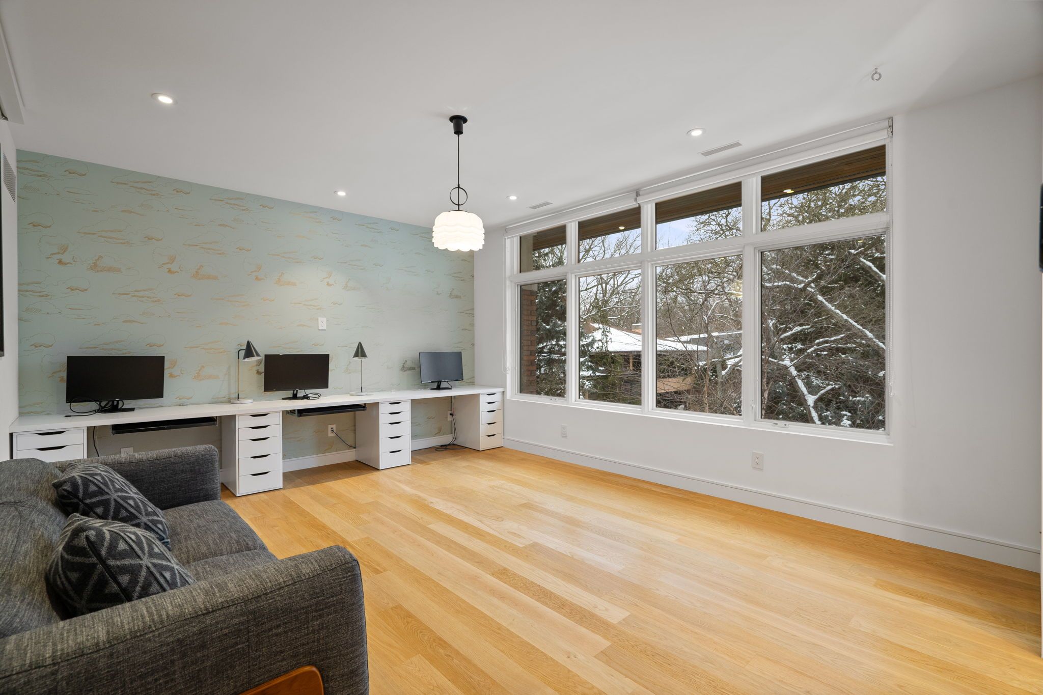 • Expansive lower level with versatile recreation room and scenic ravine views.
