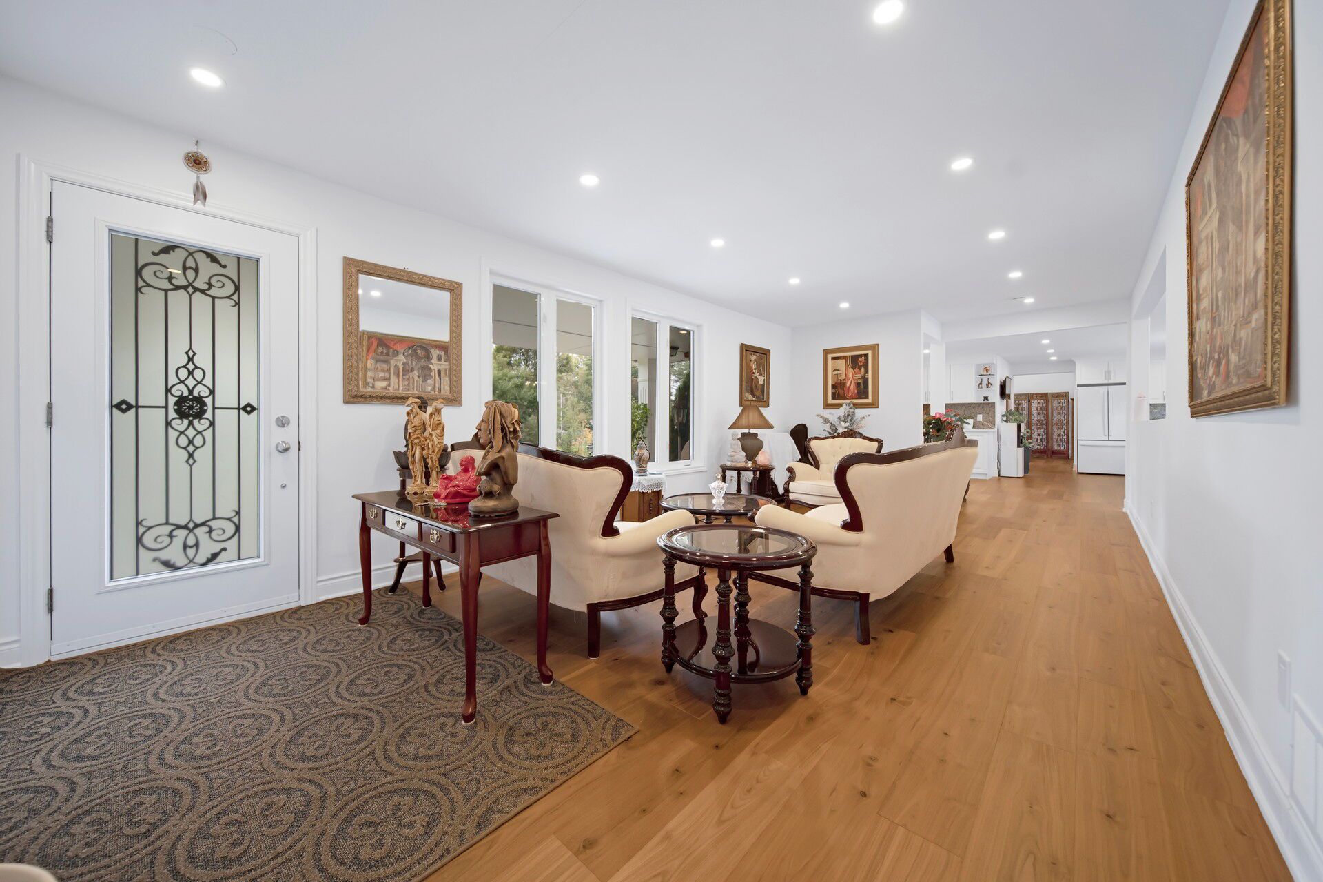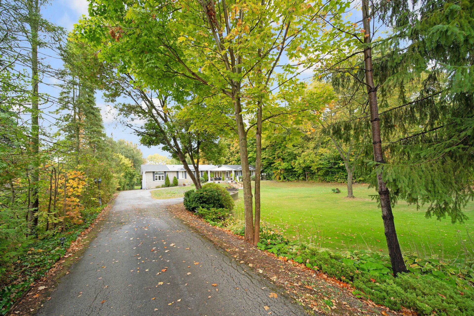 Welcome to this fully renovated sprawling bungalow, gracefully set on an impressive 4. 3-acre estate lot in one of the region's most exclusive and sought-after neighbourhoods. This extraordinary residence blends timeless sophistication with contemporary design, offering the perfect balance of luxury, functionality, and privacy. Step inside to discover a bright and spacious four-bedroom, four-bath layout, thoughtfully designed to accommodate both family living and elegant entertaining. The heart of the home features a chef-inspired kitchen, meticulously crafted with top-of-the-line appliances, a massive quartz island, and refined finishes that invite gatherings and culinary creativity. Throughout the main floor, brand-new walnut flooring exudes warmth and richness, complementedby smooth ceilings, custom lighting, and pot lights that elevate every space with understated elegance. Each ensuite bathroom has been luxuriously designed, combining high-end materials with everyday practicality to create a serene retreat in every room. Outside, the expansive backyard unfolds like a private park, surrounded by lush greenery and open space perfect for quiet reflection, family enjoyment, or sophisticated outdoor entertaining. This property offers more than a home it delivers a refined lifestyle, where modern luxury meets natural beauty on a truly remarkable scale.