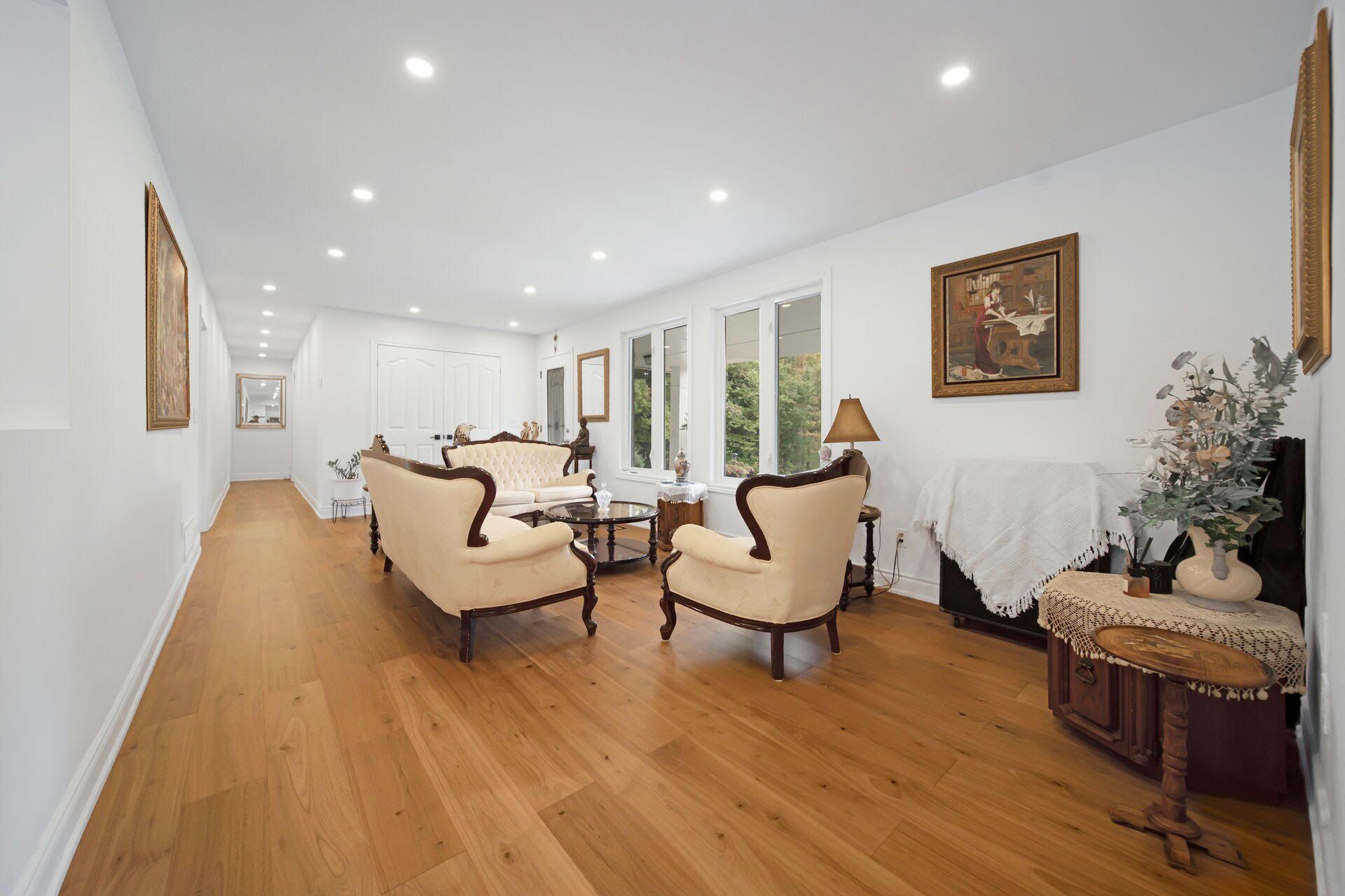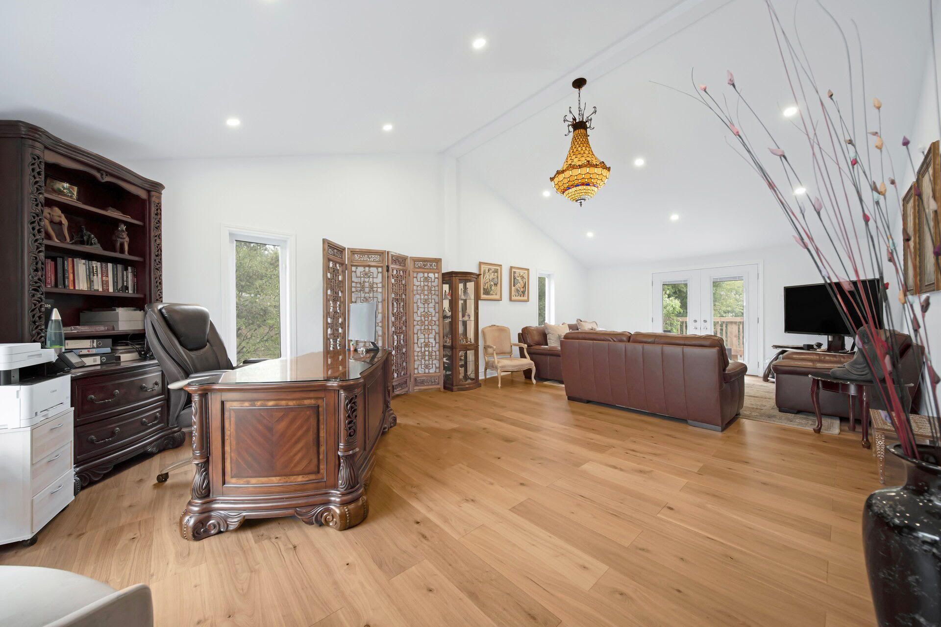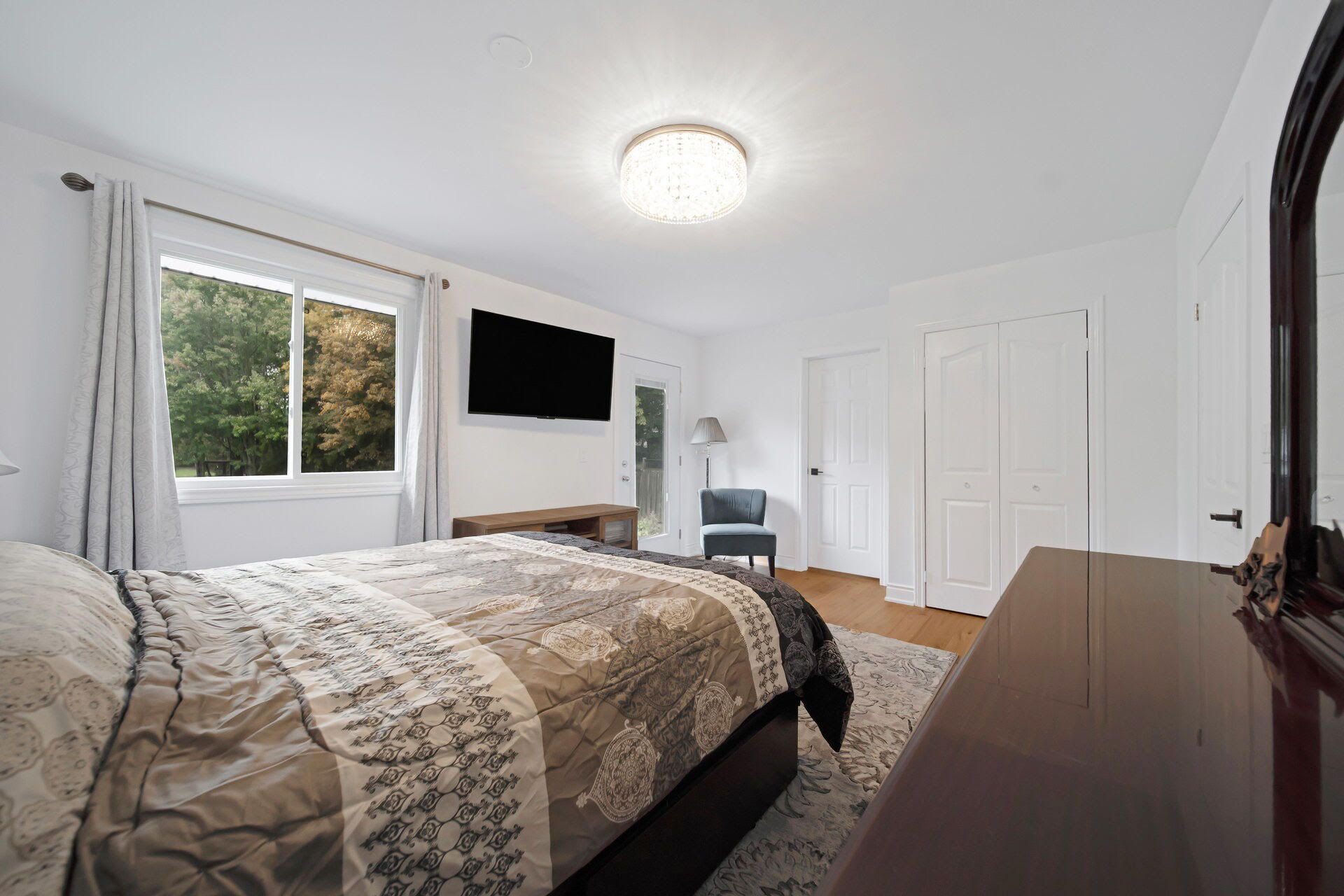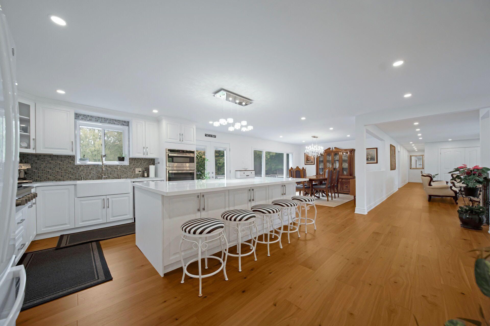 Welcome to this fully renovated sprawling bungalow, gracefully set on an impressive 4. 3-acre estate lot in one of the region's most exclusive and sought-after neighbourhoods. This extraordinary residence blends timeless sophistication with contemporary design, offering the perfect balance of luxury, functionality, and privacy. Step inside to discover a bright and spacious four-bedroom, four-bath layout, thoughtfully designed to accommodate both family living and elegant entertaining. The heart of the home features a chef-inspired kitchen, meticulously crafted with top-of-the-line appliances, a massive quartz island, and refined finishes that invite gatherings and culinary creativity. Throughout the main floor, brand-new walnut flooring exudes warmth and richness, complemented by smooth ceilings, custom lighting, and pot lights that elevate every space with understated elegance. Each ensuite bathroom has been luxuriously designed, combining high-end materialswith everyday practicality to create a serene retreat in every room. Outside, the expansive backyard unfolds like a private park, surrounded by lush greenery and open space perfect for quiet reflection, family enjoyment, or sophisticated outdoor entertaining. This property offers more than a home it delivers a refined lifestyle, where modern luxury meets natural beauty on a truly remarkable scale.