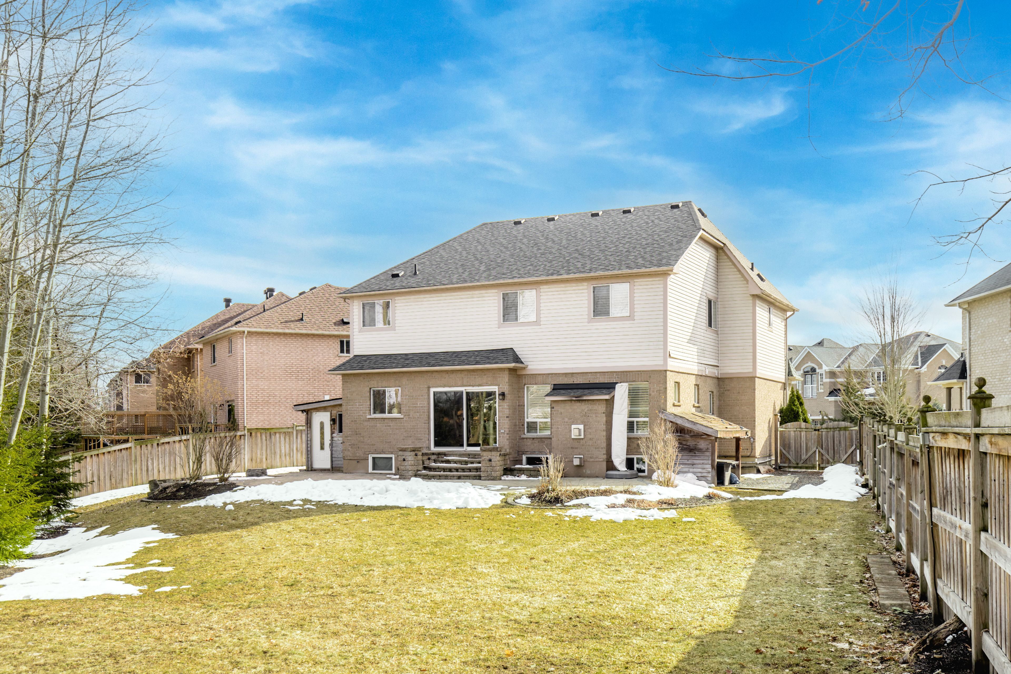 Welcome to 58 versailles crescent, this is the one to call home. Located in the sought-after community of innis-shore, this fully finished home is close to newer schools, the go train, and everyday amenities. Set on a premium, oversized pie-shaped lot, this beautifully upgraded home offers exceptional space, comfort, and modern living. Featuring 5 bedrooms plus an upper-level office/den and 4. 5 bathrooms, this home is thoughtfully designed for growing families. The main floor showcases a bright, open-concept layout with a combined living and dining area, a spacious family room, and a stylish kitchen complete with granite countertops, centre island, backsplash, stainless steel appliances, and ample cabinetry. A mudroom with inside garage access and a powder room adds everyday convenience. The upper level showcases 4 generously sized bedrooms, all with ensuite access, delivering elevated comfort and privacy for every family member, including a luxurious primary suite with radiant heated floors. A dedicated home office and second-floor laundry complete the space. The partially finished basement offers a large recreation room, an additional bedroom, a full bathroom, storage, and an unfinished framed area ready to be customized to suit your needs. Extensive upgrades include roof (2021), ac (2021), furnace (2023), newer front door, updated interior doors, upgraded lighting and pot lights, hardwood flooring throughout the main and second floors, and laminate flooring in the basement. Custom built-ins enhance the mudroom, office, laundry, and basement, while all bedroom closets are professionally finished. The exterior boasts a long driveway, beautifully landscaped front and backyard, a gas bbq hookup, a shed, and ample space for entertaining and enjoying time with family and friends. An extraordinary opportunity to own a beautifully designed home where elegance, space, and privacy come together in a premier neighbourhood.