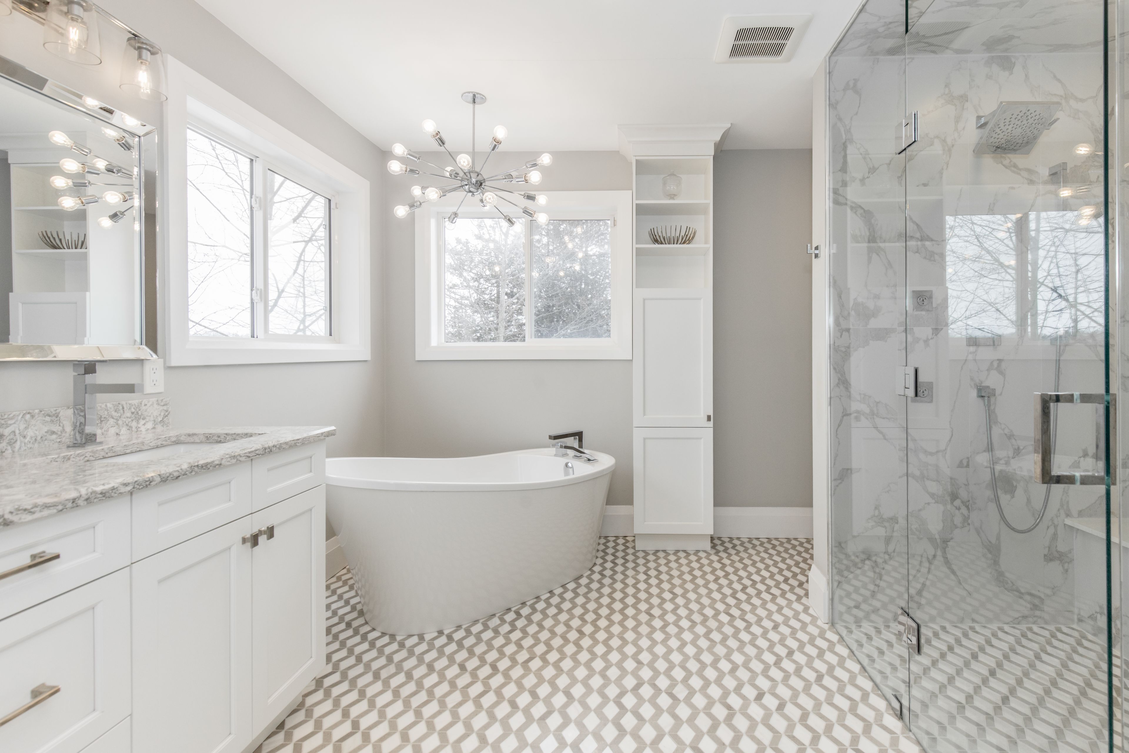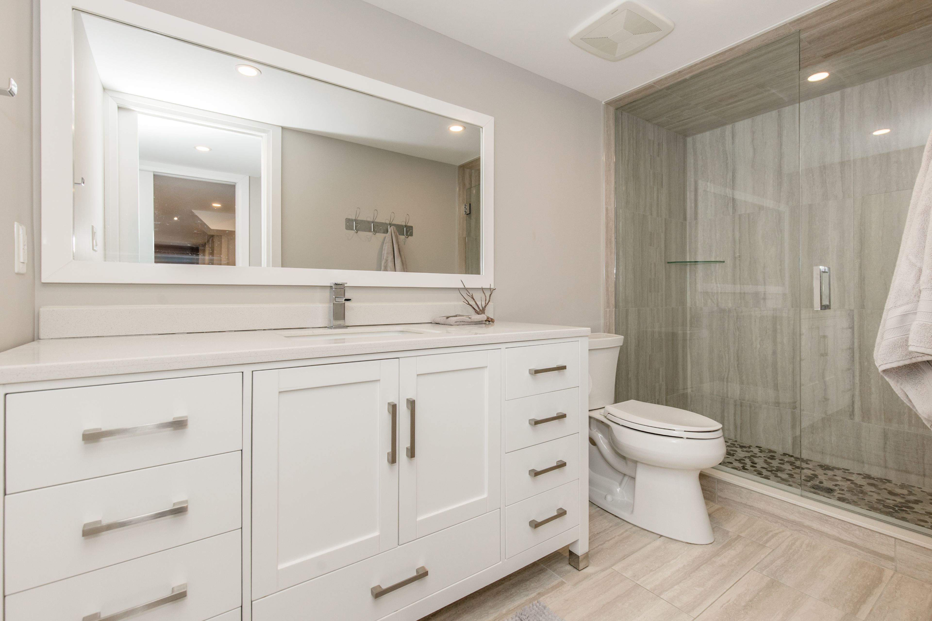 • Luxurious primary suite features radiant heated floors and ensuite access.