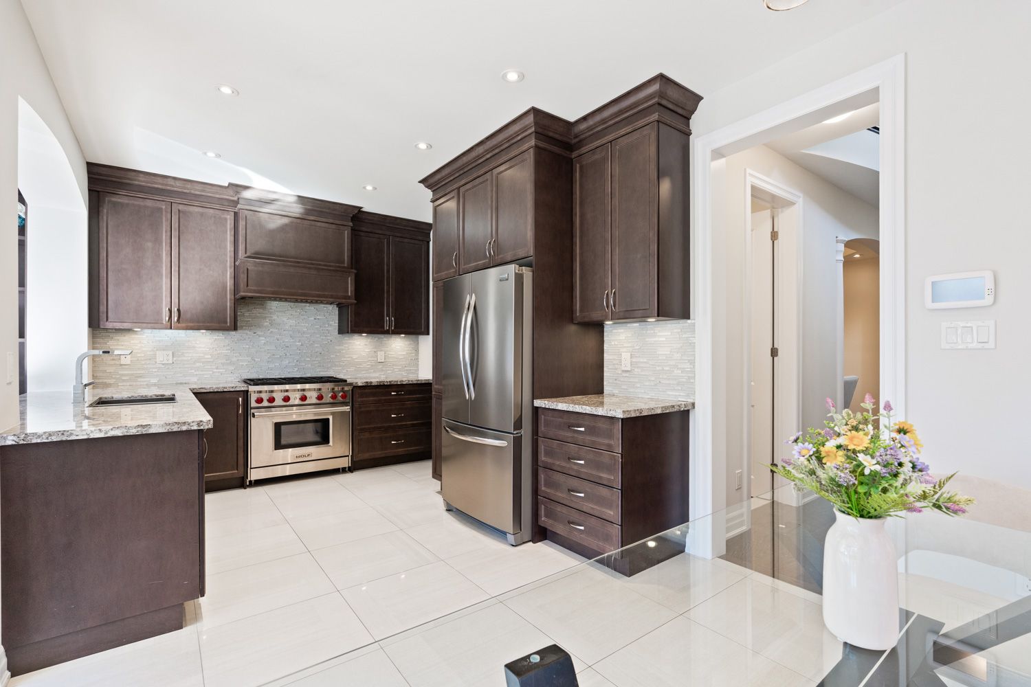 One of the largest end-unit link homes in the subdivision, situated on a premium 40 ft. Wide lot linked only at the garage. Offering 2,190 sq. Ft. Above grade plus a 1,012 sq. Ft. Finished basement, this home delivers nearly 3,200 sq. Ft. Of total living space - beautifully upgraded throughout. Features include a 36" 6-burner wolf gas range, butler's pantry, natural gas bbq hookup, and built-in entertainment unit. Hardwood flooring and 24" tile flow throughout the home. The finished basement includes a full kitchen, recreation/fitness area, 3-pc bathroom with glass shower, and ample storage. Upstairs, the primary suite offers high ceilings, a 5-pc ensuite, and a custom walk-in closet. Convenient second-floor laundry and a spacious 2-car garage with home and backyard access complete the layout. Located in a family-friendly neighbourhood, walking distance to shops, restaurants, and top-rated schools, and just minutes to hwy 400, the zancor rec centre, and scenic walking trails. A must-see home offering exceptional quality, comfort, and convenience.