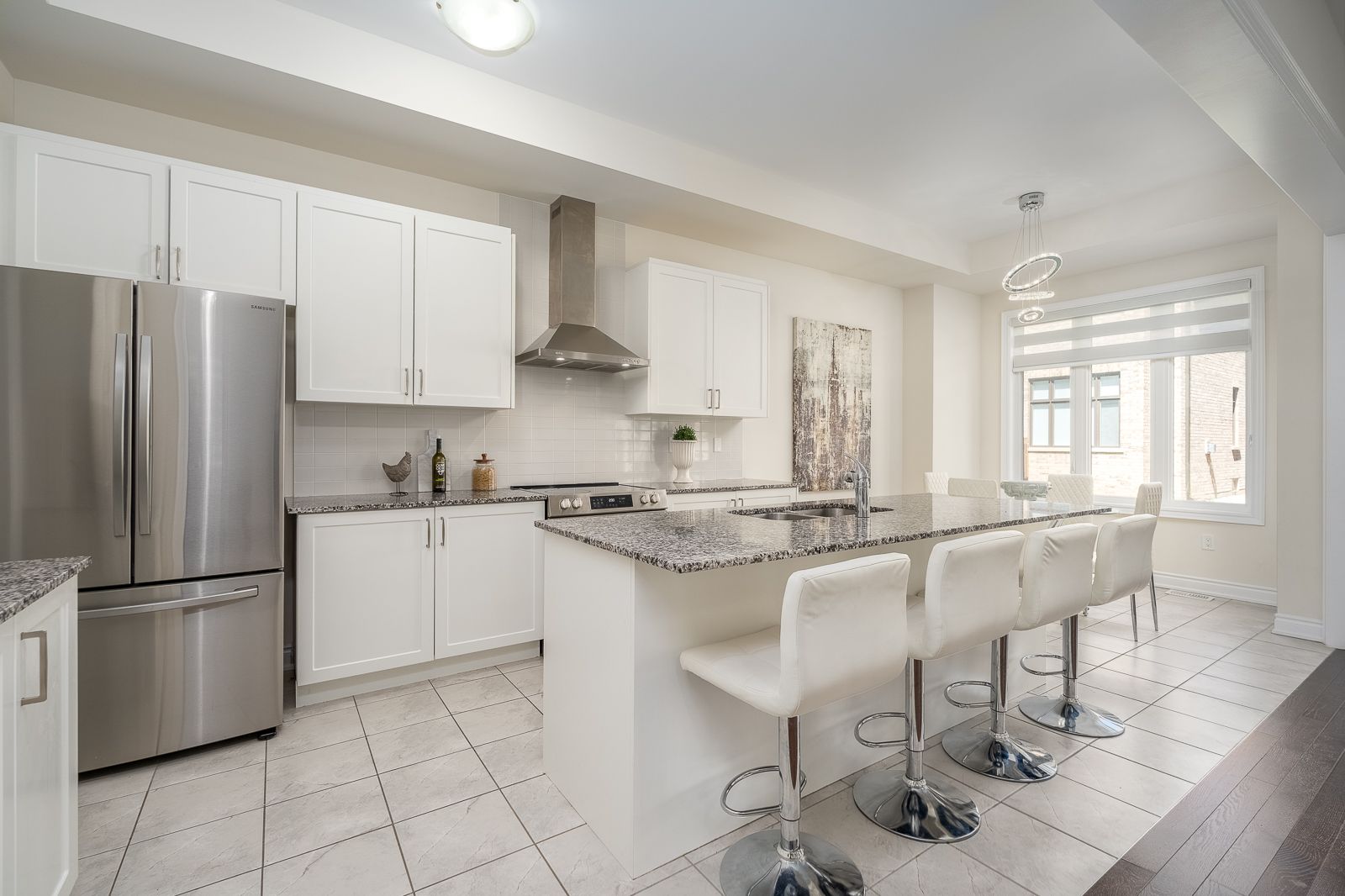 • Gourmet kitchen with quartz countertops and spacious pantry for storage.