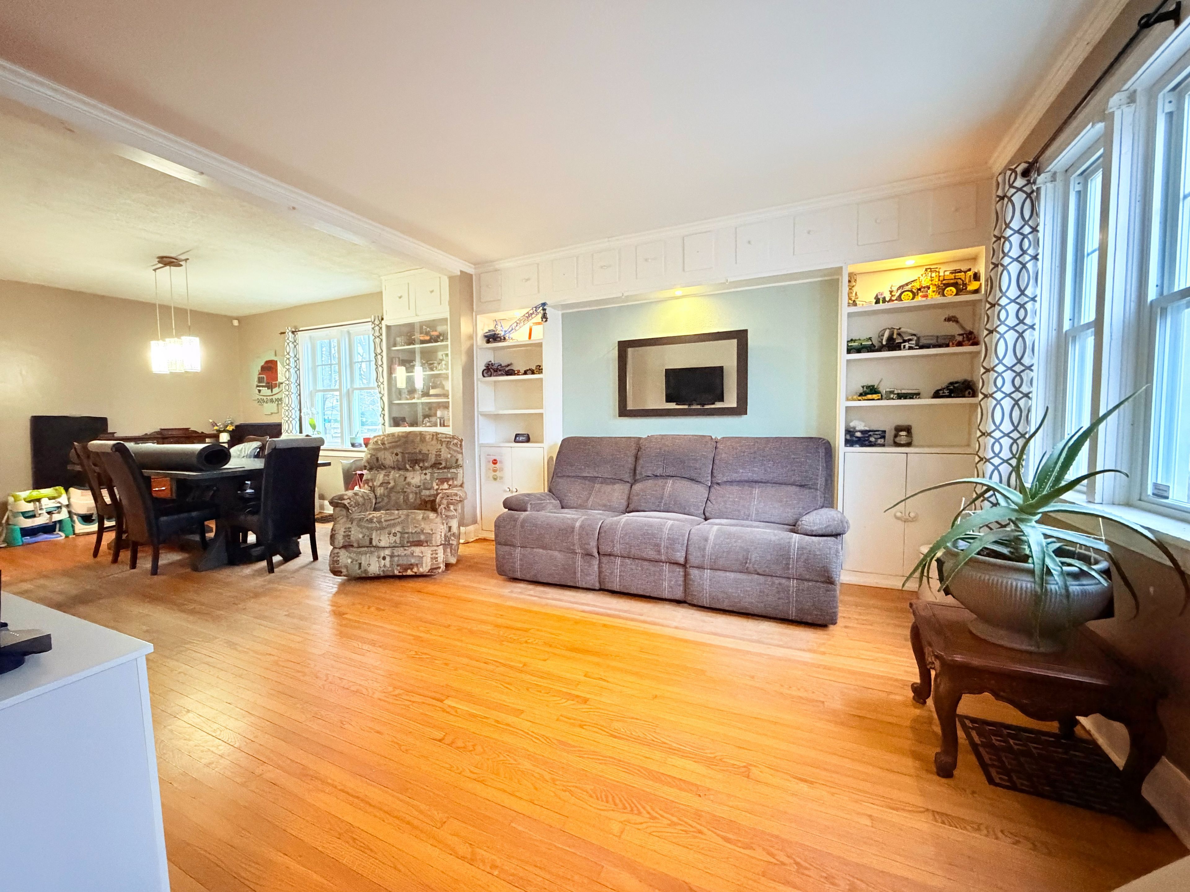 • Spacious main level with living room, dining room, and open kitchen.