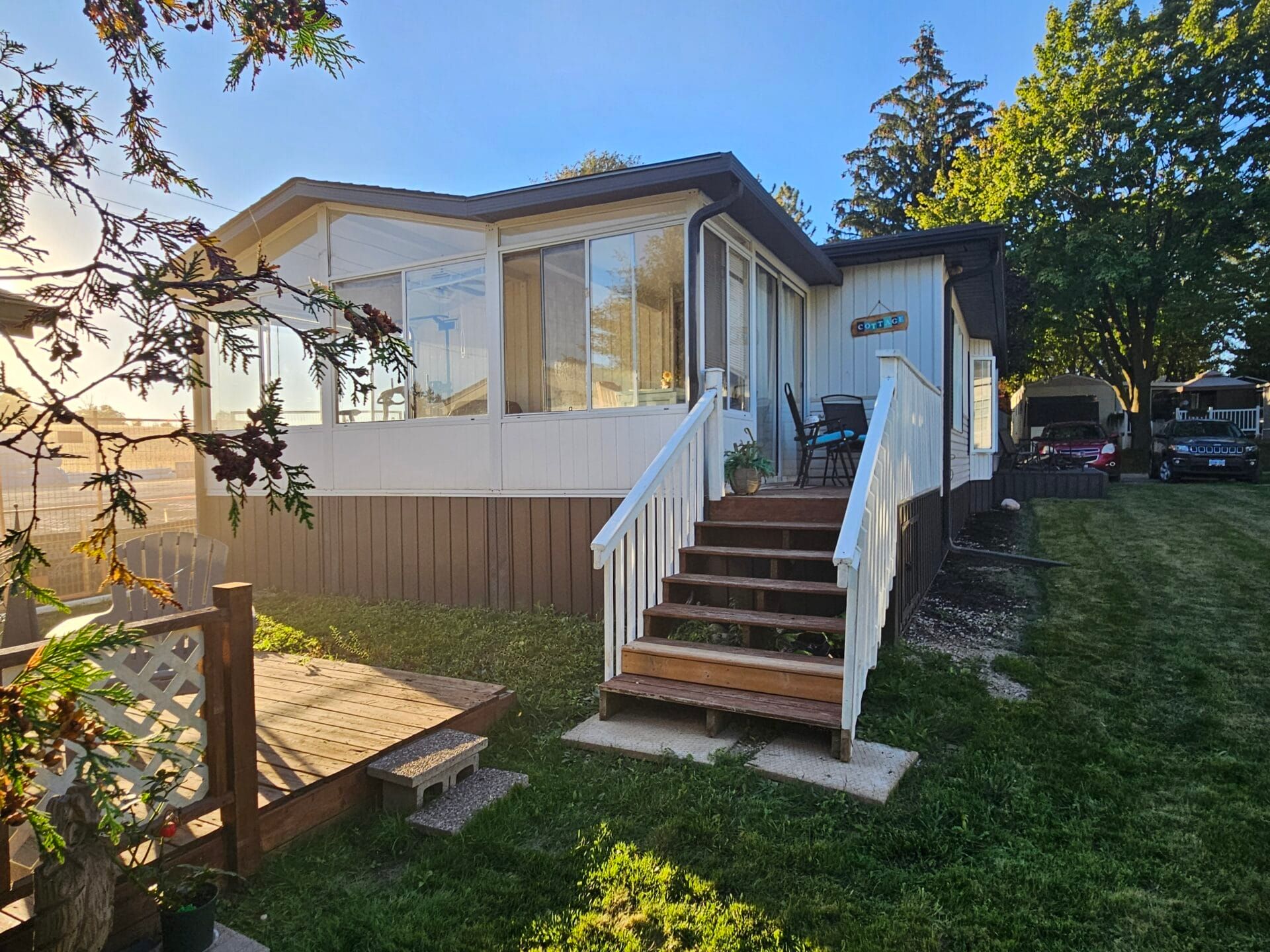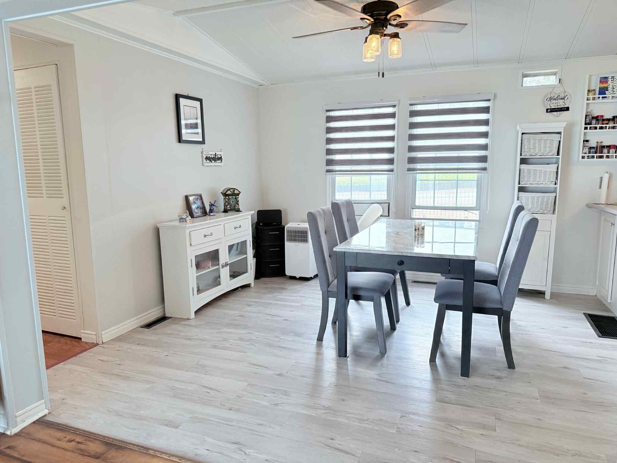 Exquisite vacation home minutes from st jacobs market in this 10-month park! Enjoy morning coffee surrounded by sounds of nature in green acre park, waterloo. Adjacent to laurel creek conservation lake where you can kayak and paddle board in peace and tranquility. Immaculate two bed, one bath 1995 northlander offers an open concept living space with oversized living room kitchen with breakfast bar and large dining space down the hall are two spacious bedrooms with closets and a full bathroom! *bonus space* - bright beautiful sunroom off the master bedroom with sliding door access to a morning coffee balcony and steps down to another private deck and storage shed including workbench! Outdoor space has tons to offer including mini golf arcade room, dog run park, pool and two hot tubs, four wheel bike rental, community hall, fishing pond, and more! Minutes away from downtown waterloo enjoy a private tree field oasis away from the hustle and bustle. This is your opportunity to enjoy an affordable practical and accessible recreational destination for fun-filled times with your family. Upgrades include: new kitchen flooring, new faucet all new paint in 2023, new french doors in main entry 2025, new roof portions in 2024, brand new skirting in 2024 & large side deck. Huge lot is extra private and extra large sitting on a double area lot as an end unit one-- of the biggest in the park. *for additional property details click the brochure icon below*