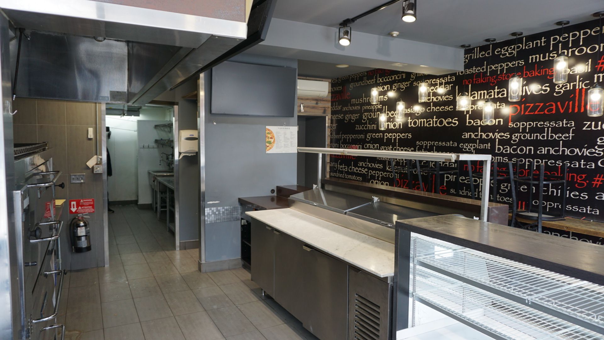Prime location ideal for pizza, chicken, or sushi take-out use. High foot traffic and excellent street visibility. Direct access to bathurst subway station. Fully equipped commercial kitchen including professional hood system, walk-in fridge and freezer, and existing kitchen equipment. Turn-key opportunity suitable for food service operators. Rent: $5,800 + hst per month, including tmi. Utilities extra new lease available. ***the tenant shall pay an additional $60,000 for the existing equipment.***