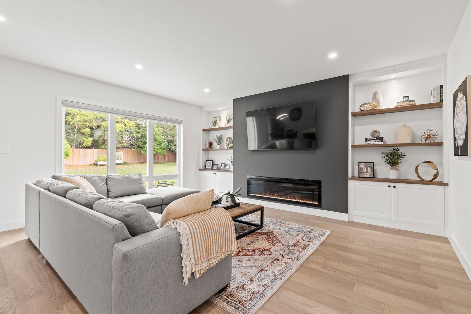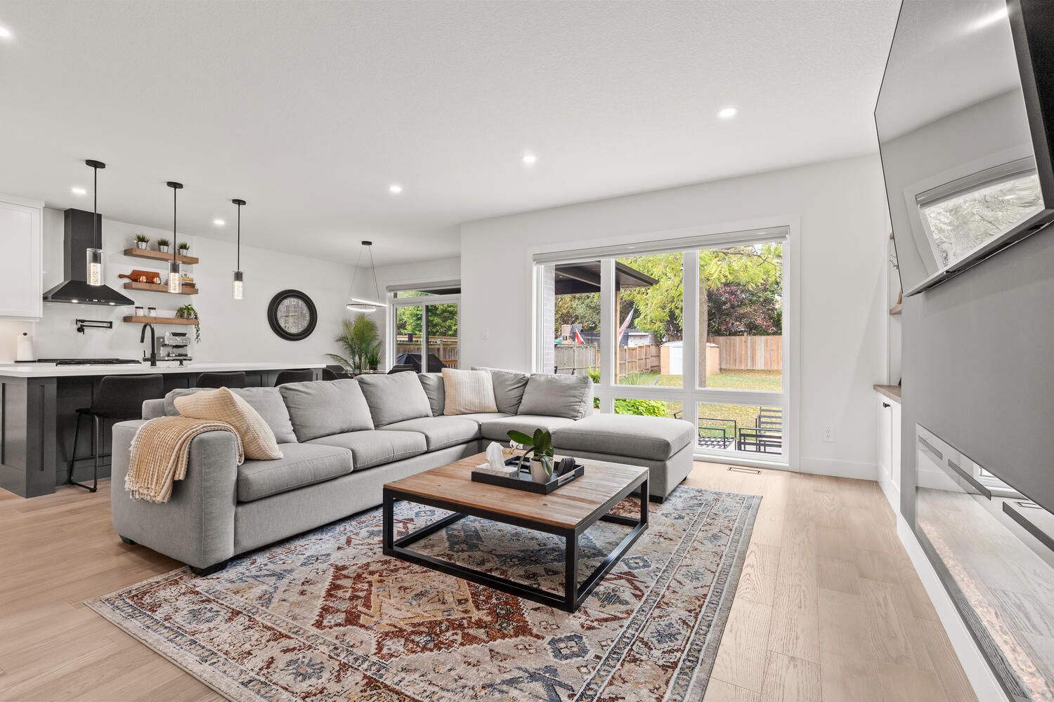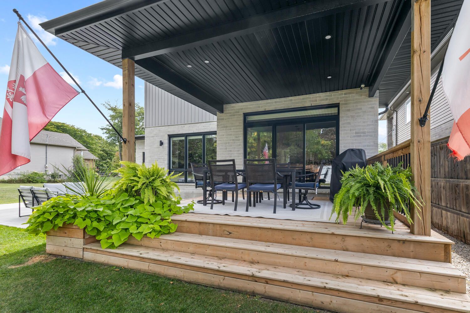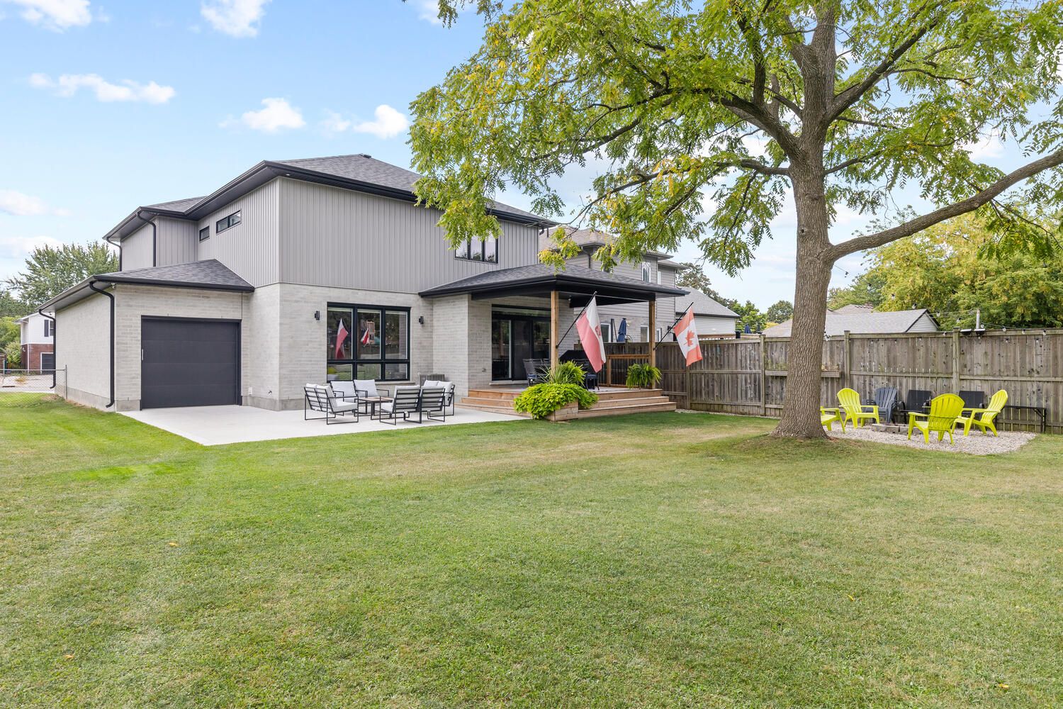 • Backyard oasis with covered deck, patio, and fire pit for outdoor enjoyment.