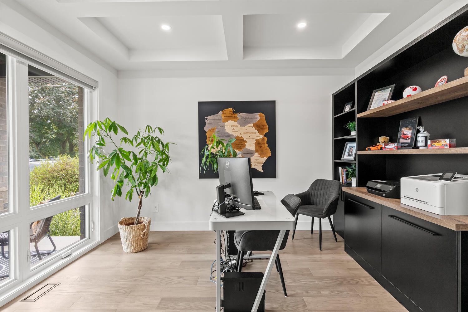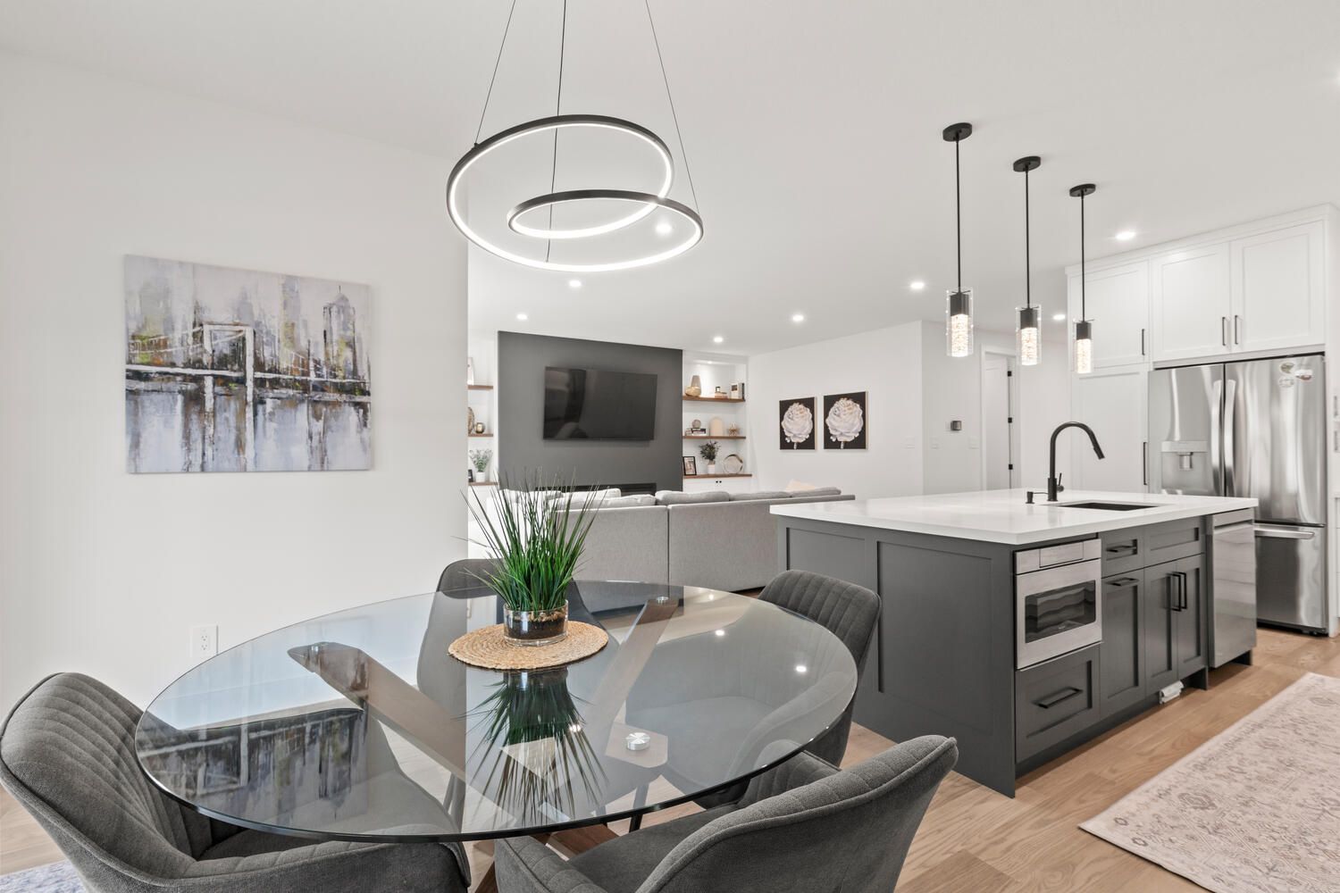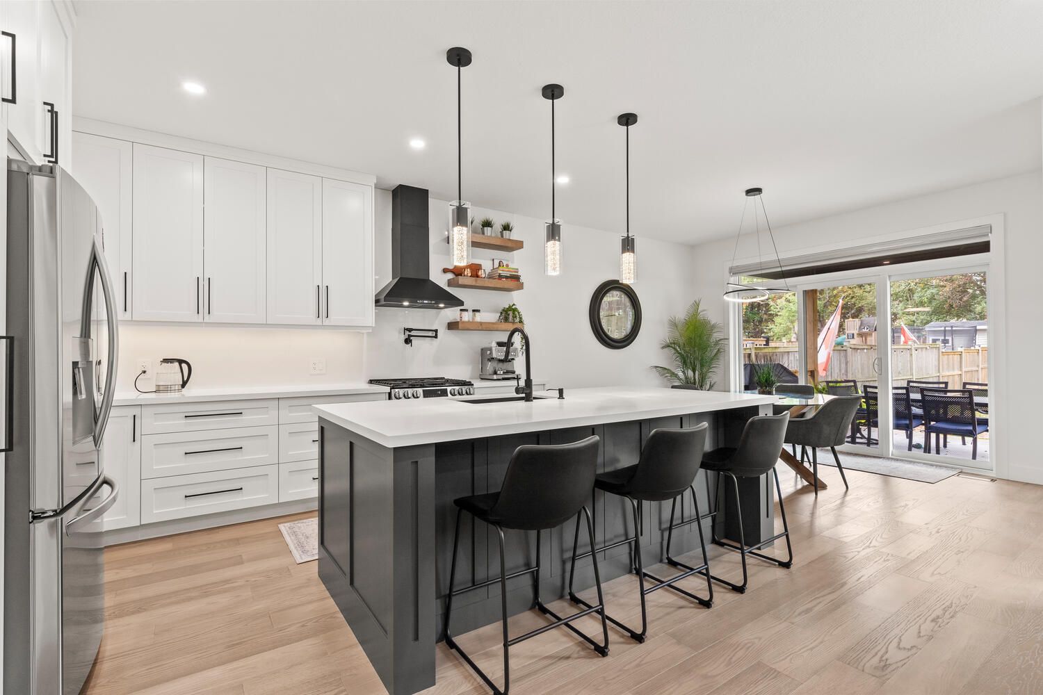 Welcome to 580 eden ave, a builder's own masterpiece, loaded with custom upgrades and thoughtful design at every turn. From the moment you arrive, the oversized 3-car drive-through garage and massive driveway with parking for 9 vehicles set the tone for the space and convenience this home delivers. Step inside to find a layout built for both family living and entertaining, with engineered hardwood floors flowing throughout the main and second levels. The heart of the home is the showpiece kitchen, a custom two-toned design with premium cabinetry, a gas stove, pot filler, and stylish finishes. It overlooks the sun-filled great room with its custom-built-ins and electric fireplace, creating a seamless space to gather. A main floor office offers the perfect work-from-home setup or the flexibility of an additional bedroom. Upstairs, every bedroom is its own private retreat with each featuring a walk-in closet and a private ensuite bath. The primary suite boasts an impressive, fully customized walk-in closet and 5 pc en-suite. The fully finished basement adds even more wow-factor, with over 8-foot ceilings, a full wet bar complete with beverage fridge and dishwasher, a spacious rec. Room with built-ins and an additional fireplace, a fourth bedroom and a huge cold room for storage. Step outside to your backyard oasis, a covered deck with recessed lighting that flows down to the patio, perfect for summer barbecues and evening entertaining. You will also find a cozy fire pit, a shed and still lots of grass space for children and pets to play. This isn't just a house, it's a rare opportunity to own a truly custom-built home with luxury finishes throughout, crafted for the builder himself.
