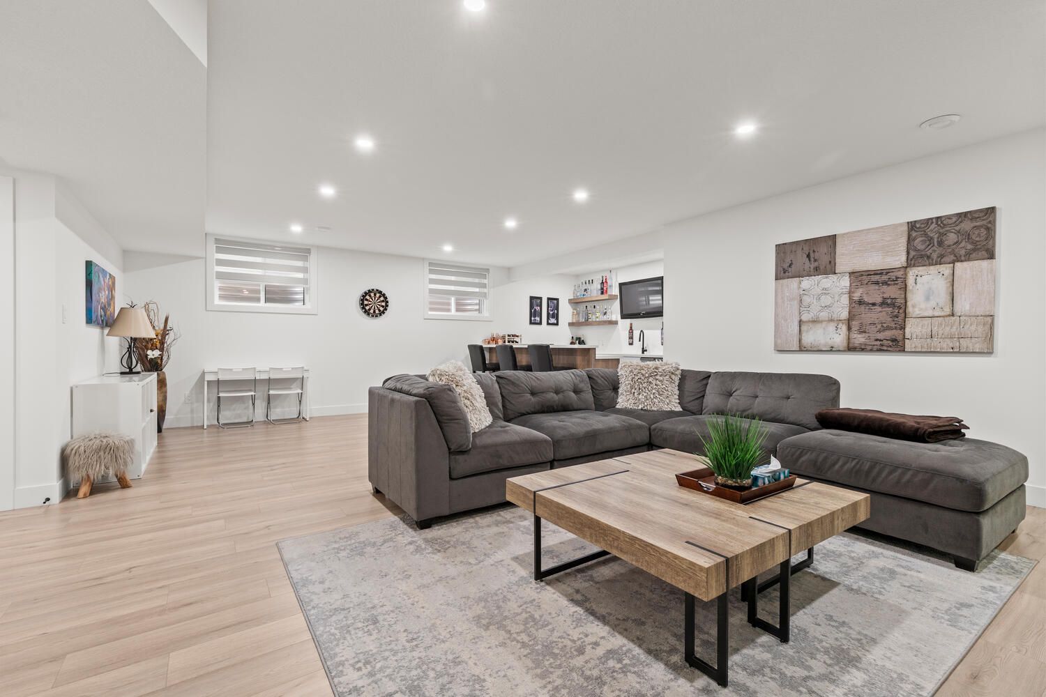 • Finished basement features a wet bar and spacious recreation room for entertainment.