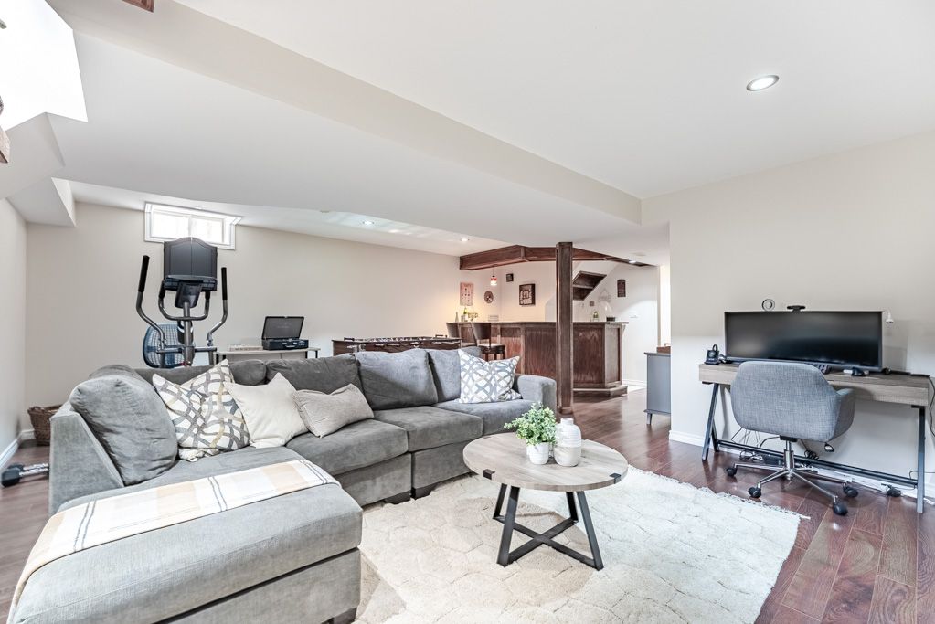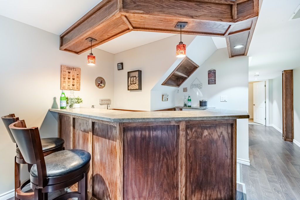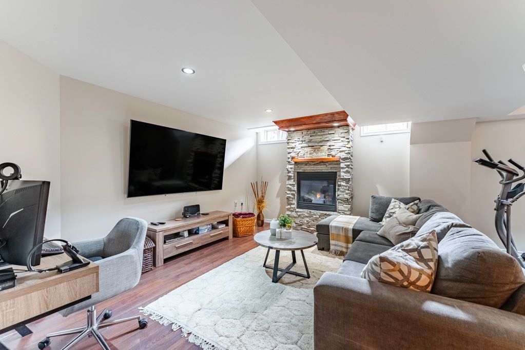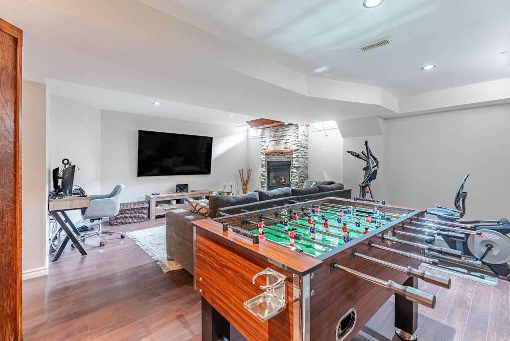 • Fully finished lower level with rec room, wet bar, and gas fireplace.