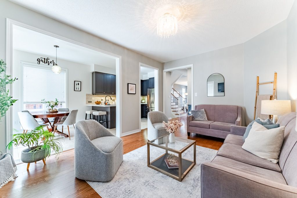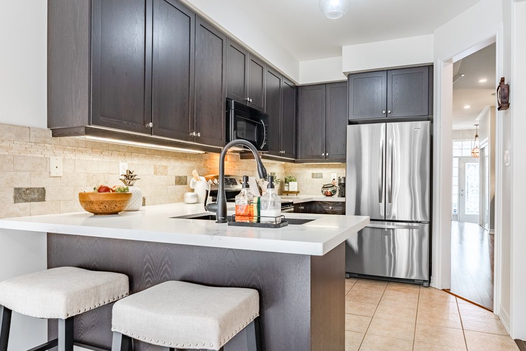 Welcome home to milton's most coveted neighbourhood! Fabulous curb appeal and fully landscaped! This freehold end unit townhome is located in a family friendly pocket of scott and is ready to move in! A well laid out home that is very bright and inviting! Features 9 ft ceilings on the main level, a chef's kitchen with stainless steel appliances, dark cabinetry, and a walkout to your deck and fully fenced yard. The new staircase (2025) leads you to the second level which features a primary suite with an ensuite and a walk in closet, full bath, and two other bedrooms that are a great size- perfect for growing family! The lower level is fully finished and features an open concept rec room, a wet bar, gas fireplace and a 4 pce bath. You have to see this home to believe the value!