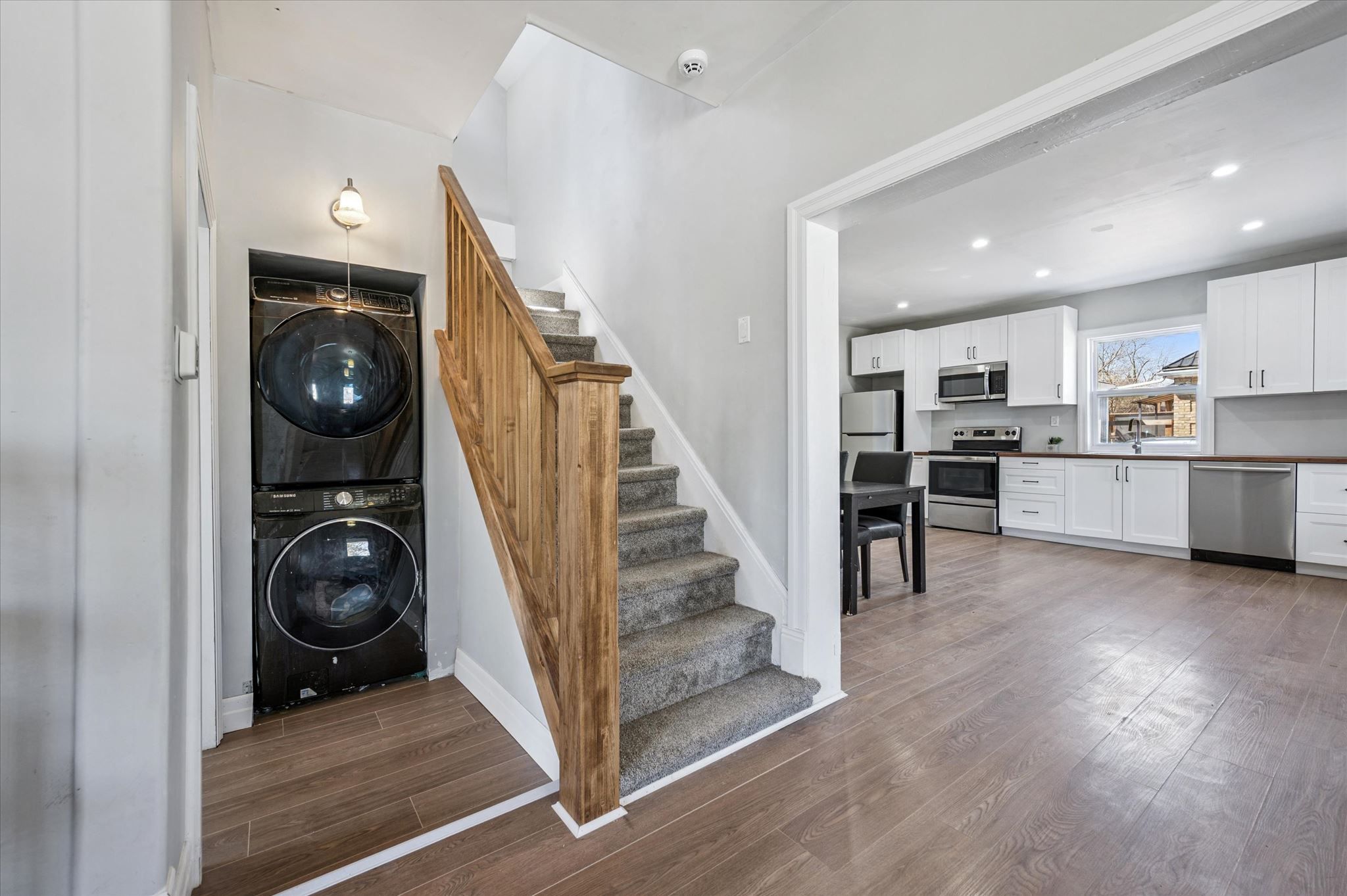 Located in the charming town of listowel, this beautifully updated home offers comfort and ample space for the whole family. A large front porch leads into a bright interior filled with natural light, opening to a spacious dining area connected to an open-concept kitchen featuring new appliances, countertops, and cabinetry. At the rear of the home, a spacious den and mudroom provide direct access to the back porch, while the main floor also includes a sunlit 5-piece bathroom and a stacked washer and dryer. Upstairs, three generous bedrooms offer ample space, including a primary bedroom with two closets, a second bedroom overlooking the front of the home, and a third that can serve as a bedroom or home office. The basement provides extensive storage and utility space for seasonal items and equipment. Recent updates include new flooring on the main level, new kitchen, updated electrical outlets, pot lights in the kitchen, an upgraded air conditioning system, and new banisters leading upstairs. Close to schools, parks, and open green spaces, this home is an excellent opportunity for families or those seeking a quieter lifestyle in a desirable southern ontario community-book your showing today.