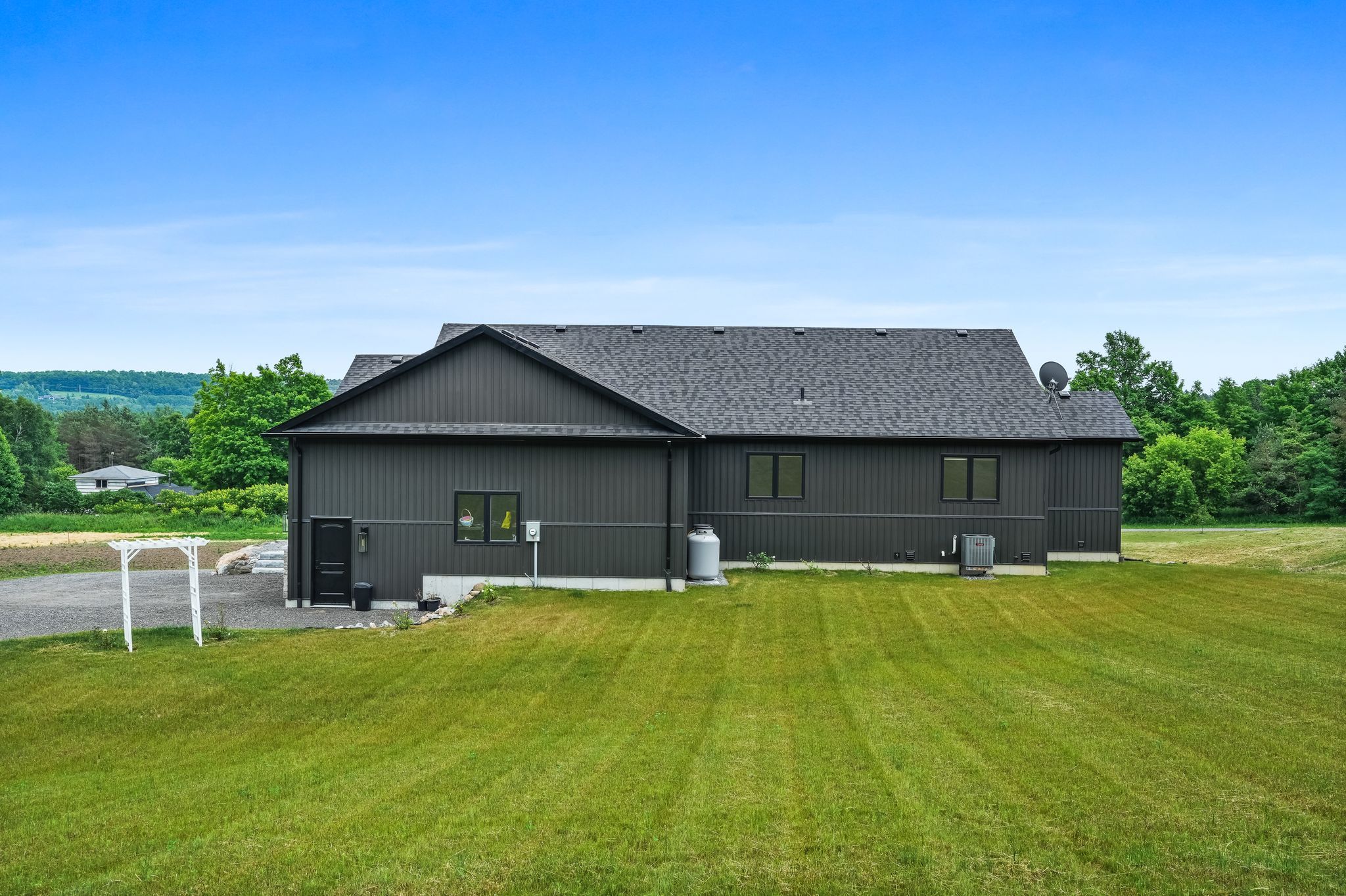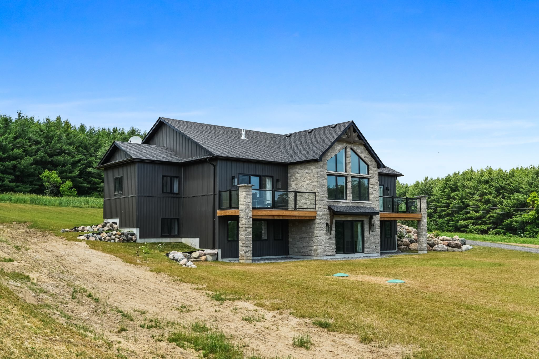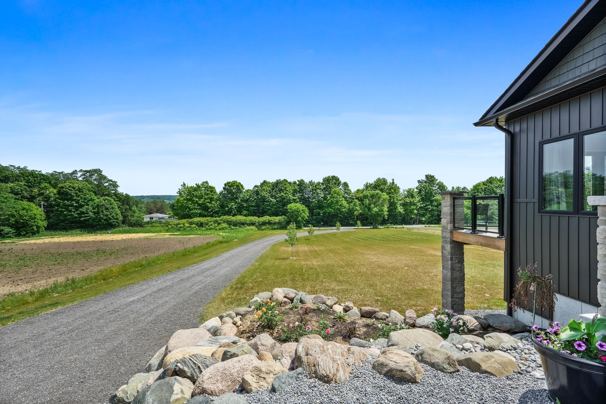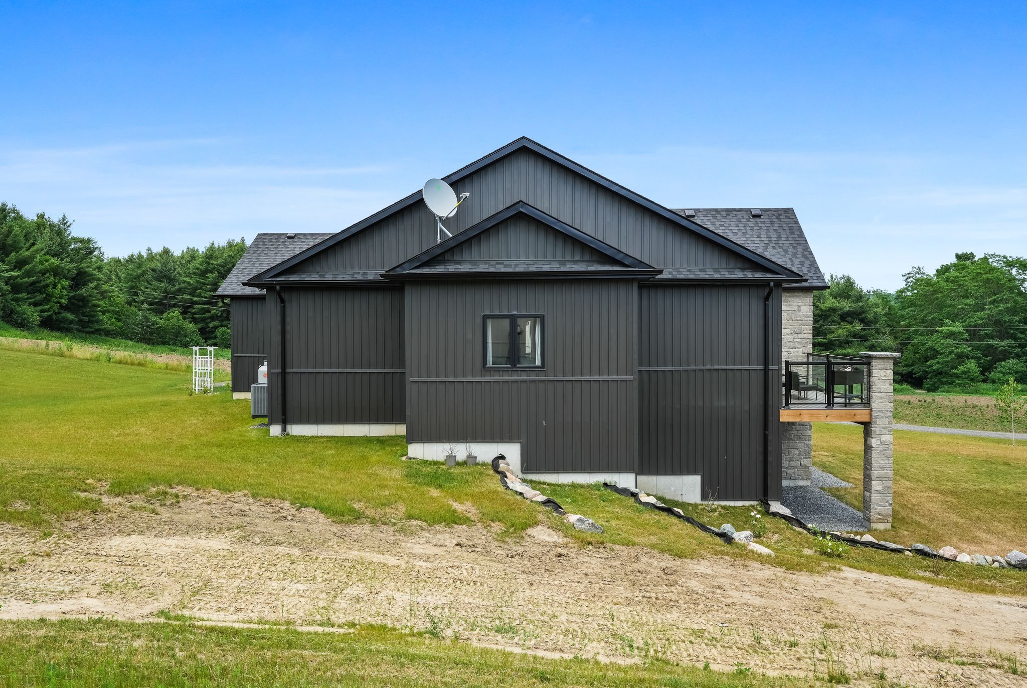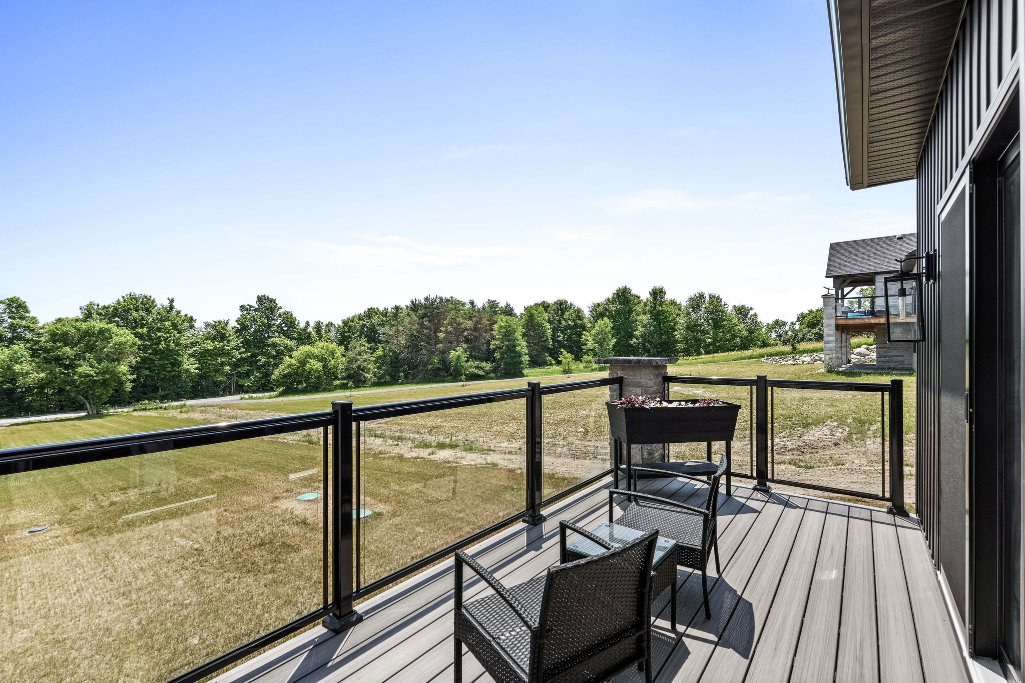 Welcome to your slice of paradise- a stunning 6-bed, 3-bath country home in cramahe township! Nestled on a 2-acre lot, this one year old custom-built gem blends modern luxury with serene rural living. Step inside to natural light flooding through south-facing windows, illuminating the open-concept main floor. The heart of the home is the custom-designed kitchen, a chef's dream featuring sleek granite countertops, a massive 10-foot island with a farmhouse sink, and top-of-the-line stainless steel appliances. Stylish pendant lighting and recessed pot lights create the perfect ambiance, whether you're preparing a gourmet meal or hosting a casual brunch. The dining room flows to a private deck with a gas bbq line, perfect for gatherings or quiet evenings. Enjoy coffee with serene views of your expansive lot. The spacious living room is a true highlight, designed to inspire awe with its 15-foot cathedral ceilings, exposed beams, and a striking stone fireplace with a cozy hearth. Oversized windows frame breathtaking views of the rolling landscape. The primary bedroom is a luxurious sanctuary, complete with a walk-out to a private deck where you can unwind in peace. The spa-inspired ensuite is a haven of relaxation, featuring high-end finishes and an attached walk-in closet. Two additional bedrooms on the main floor offer versatility, perfect for children, guests, or a home office. The fully-finished basement features 3 bedrooms, a 5-piece bath, office, rec room, & ample storage, ideal for families or guests. A laundry room with garage access enhances practicality. Outside, the 2-acre lot is a private oasis with quiet roads for walking, cycling, or atvs. High-speed satellite internet keeps you connected. Just 5 min north of hwy 401 in brighton, it offers easy access to belleville, trenton & the gta, ideal for families, professionals, or anyone craving a peaceful retreat with urban convenience. This home is a lifestyle-luxurious, spacious & serene. Schedule your tour today!