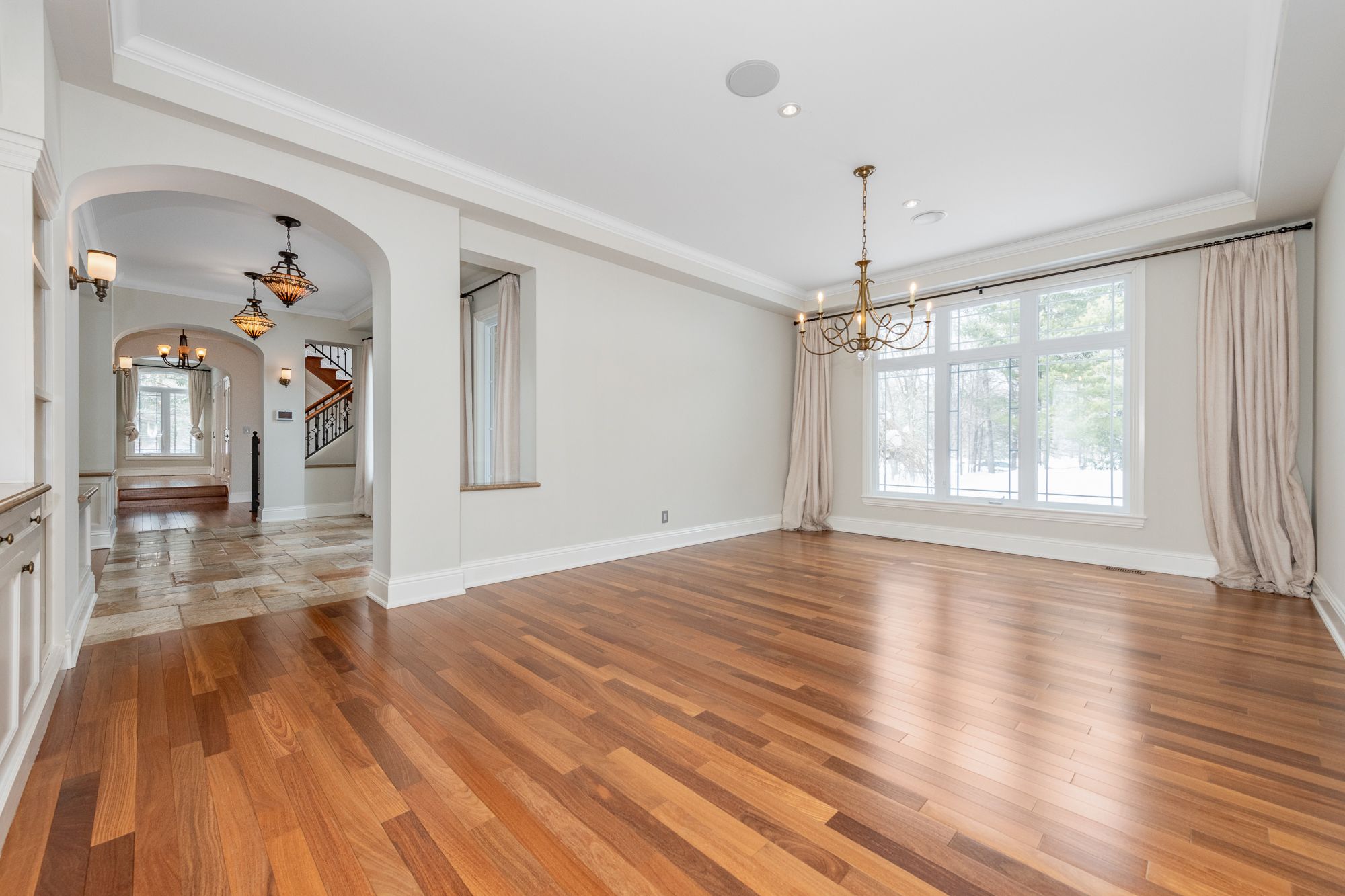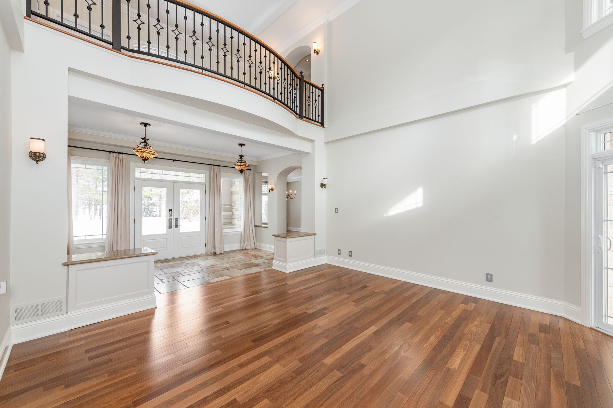 Set on a beautifully treed 2. 12 acre estate lot in prestigious rideau forest, this elegant nowaki-built residence offers exceptional privacy, timeless design, and impressive curb appeal. A grand foyer welcomes you inside, where soaring two-storey windows flood the formal living room with natural light and highlight a cozy gas fireplace, creating an immediate sense of scale and warmth. The thoughtfully designed main level blends everyday comfort with upscale finishes. A private primary suite is positioned on one side of the home, featuring a generous walk-in closet and a luxurious 5pc ensuite with double sinks, a soaker tub, and an open walk-in shower with rain head. At the heart of the home, the chef's kitchen showcases rich cabinetry, stone countertops, high-end built-in appliances, and a large centre island, seamlessly connecting to the family room with wood-burning fireplace and tranquil views of the backyard retreat. Upstairs, the secondary bedrooms offer exceptional comfort and versatility. Two feature expansive balconies overlooking the private backyard, while another enjoys its own front-facing balcony. Two bedrooms include walk-in closets, and one benefits from a private 4-piece ensuite, providing ideal accommodations for family or guests. The fully finished lower level is designed for entertaining, complete with a bar, home theatre area, billiards room, sauna, 2pc bath, and direct access to the garage. Outside, enjoy resort-style living with a luxurious in-ground saltwater pool surrounded by mature trees for ultimate privacy. In addition to the attached garage, a separate detached garage provides extra parking, storage, or workshop potential, with an expansive driveway accommodating numerous vehicles. Located in one of the region's most sought-after estate communities, this remarkable property offers a rare combination of space, privacy, and refined living just minutes from city amenities.