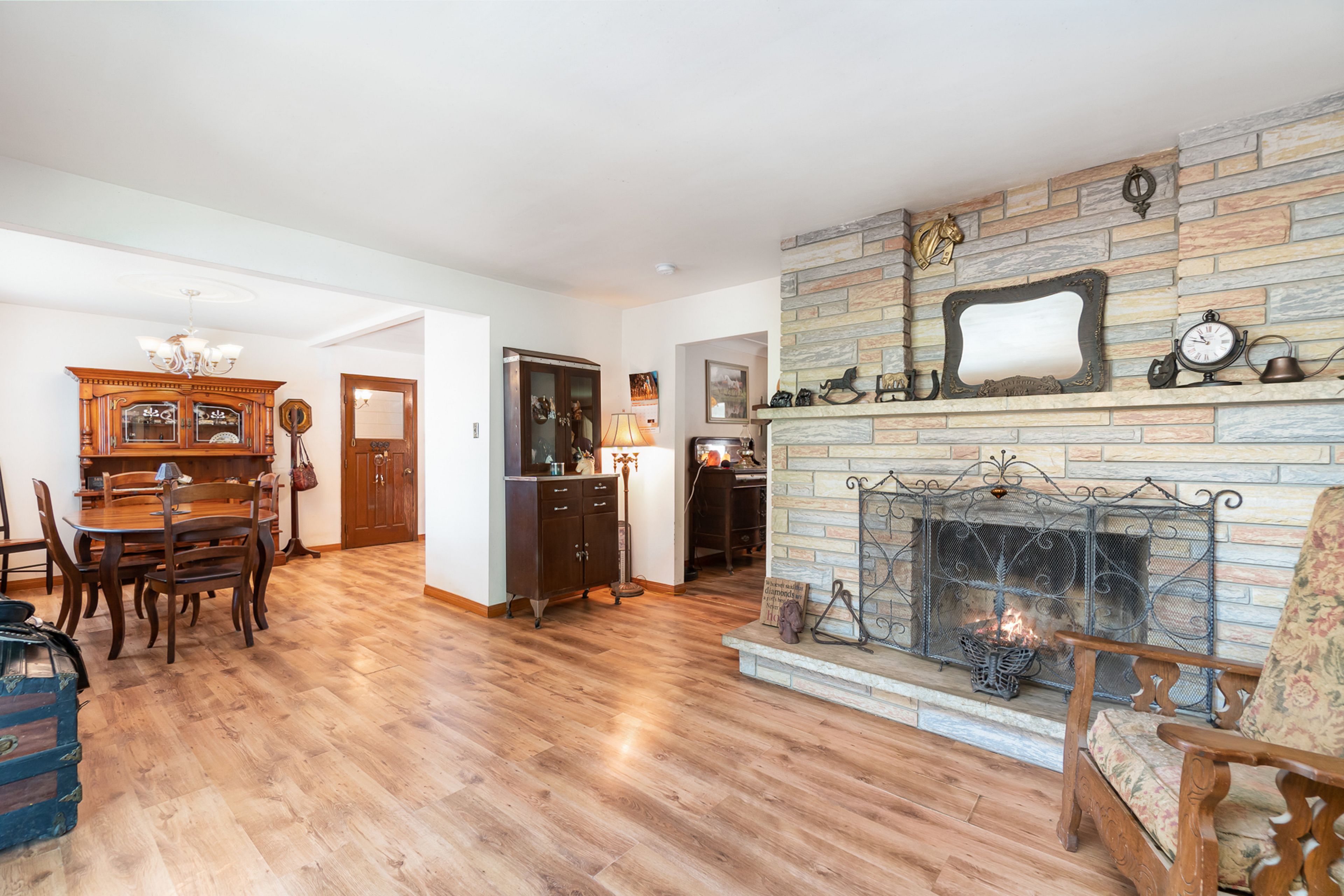 • Two-bedroom bungalow with large living spaces and inviting wood fireplace.