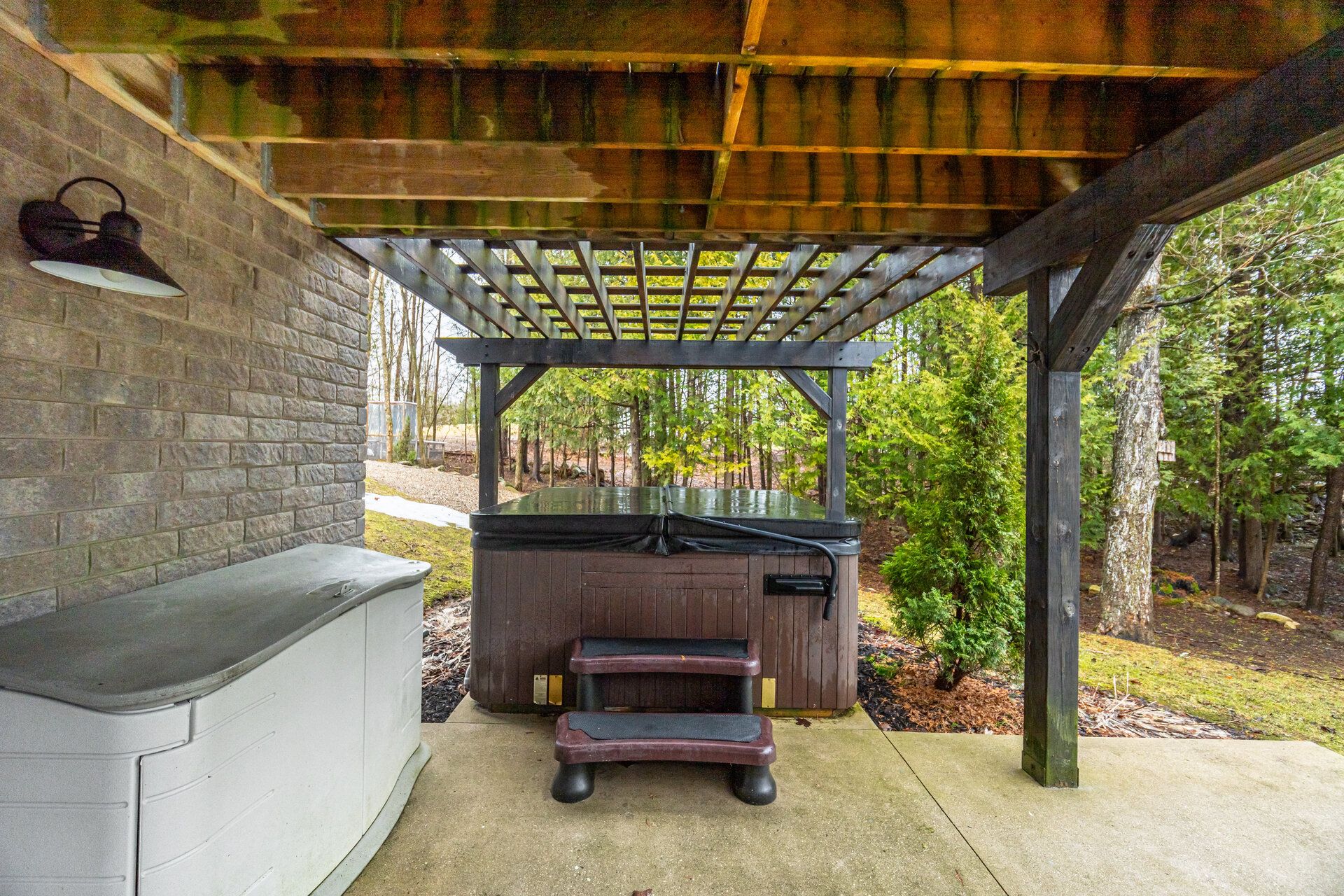 • Landscaped property with hot tub, outdoor shed, and chicken coop.