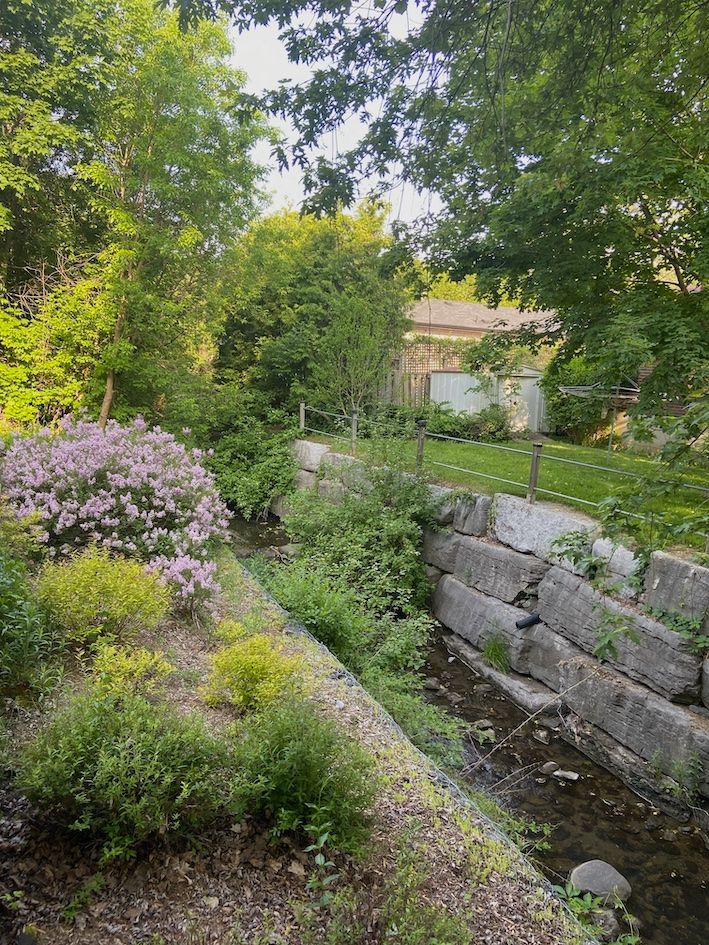 • Large deck overlooking Harmony Creek for peaceful outdoor relaxation.