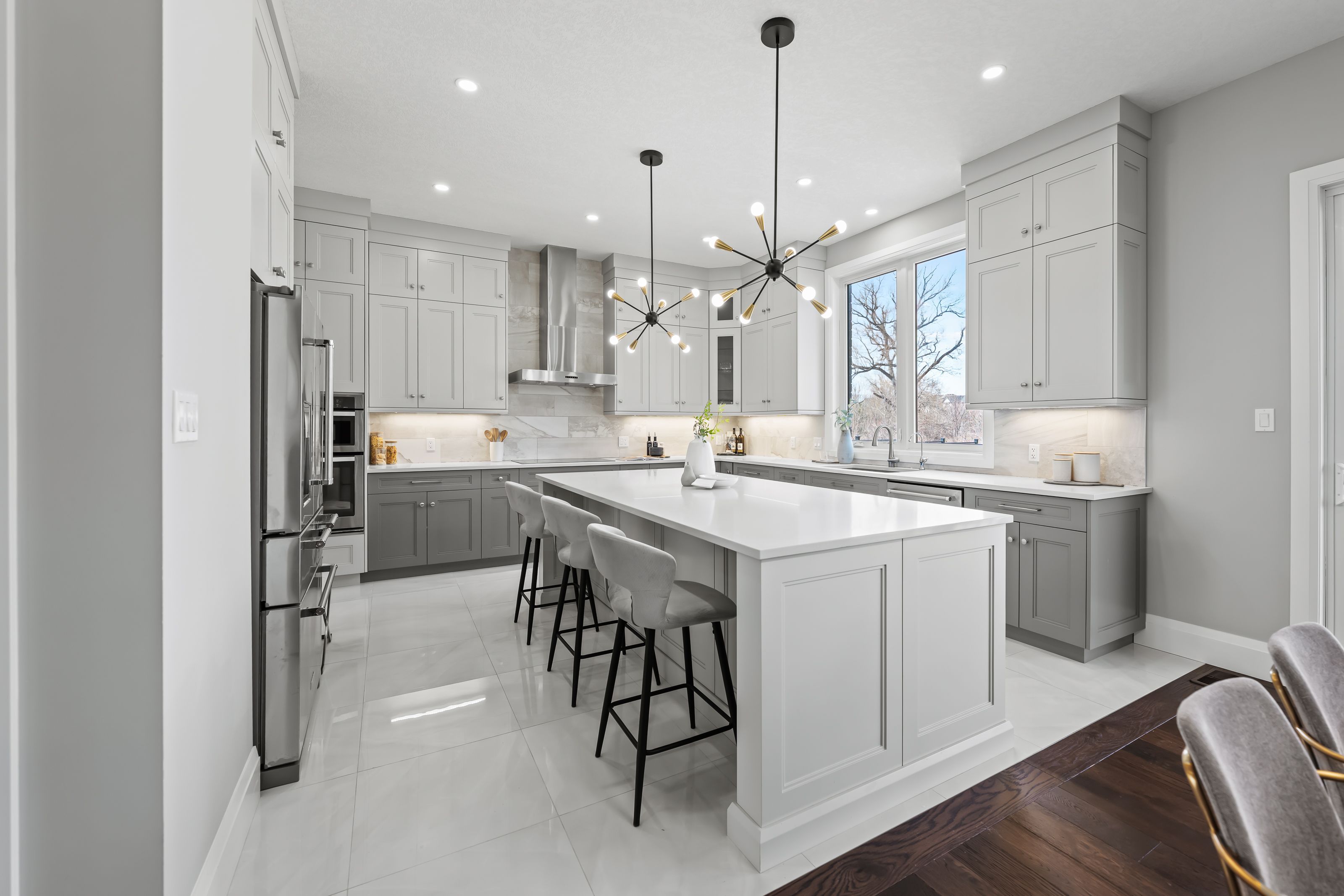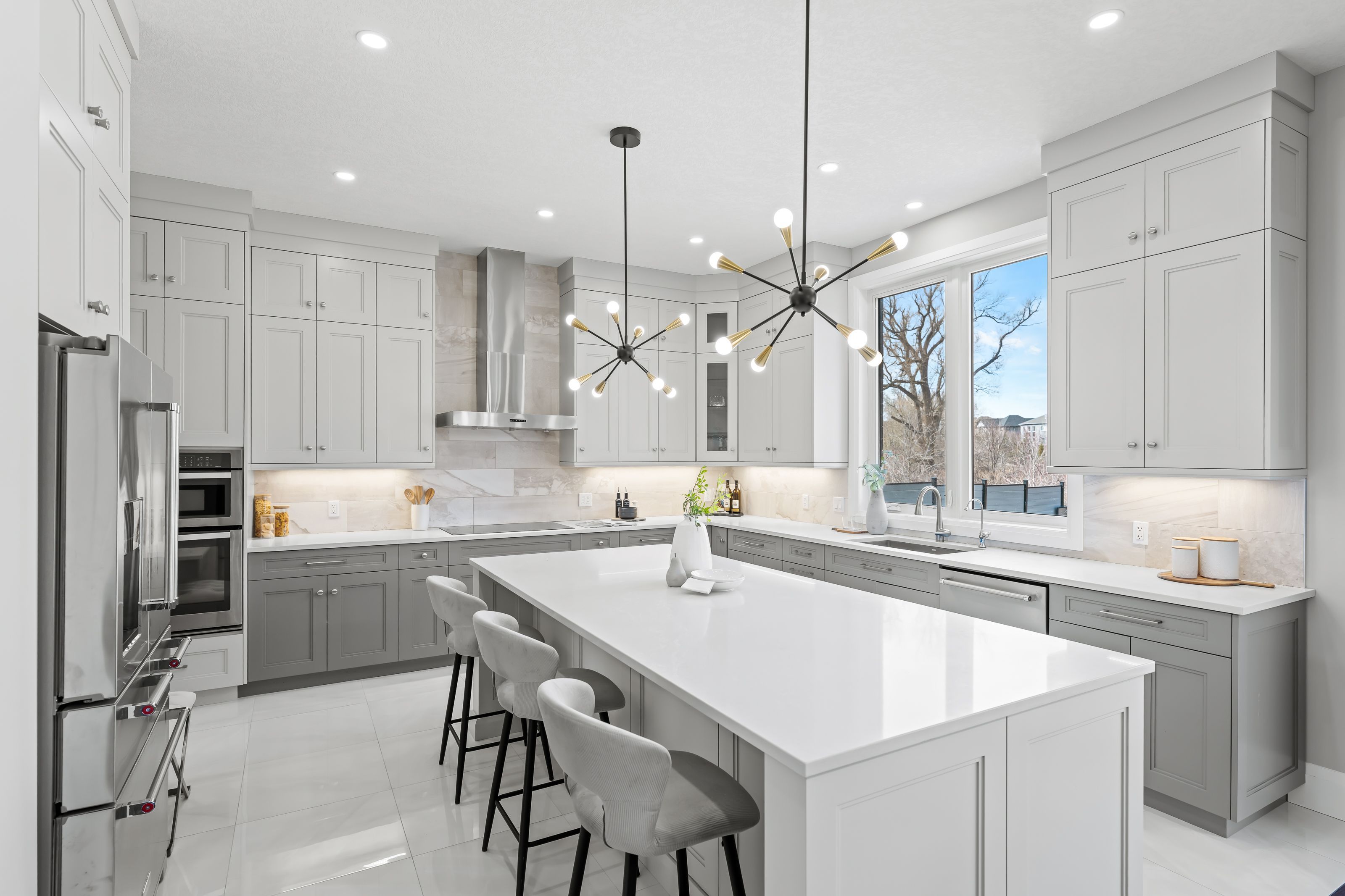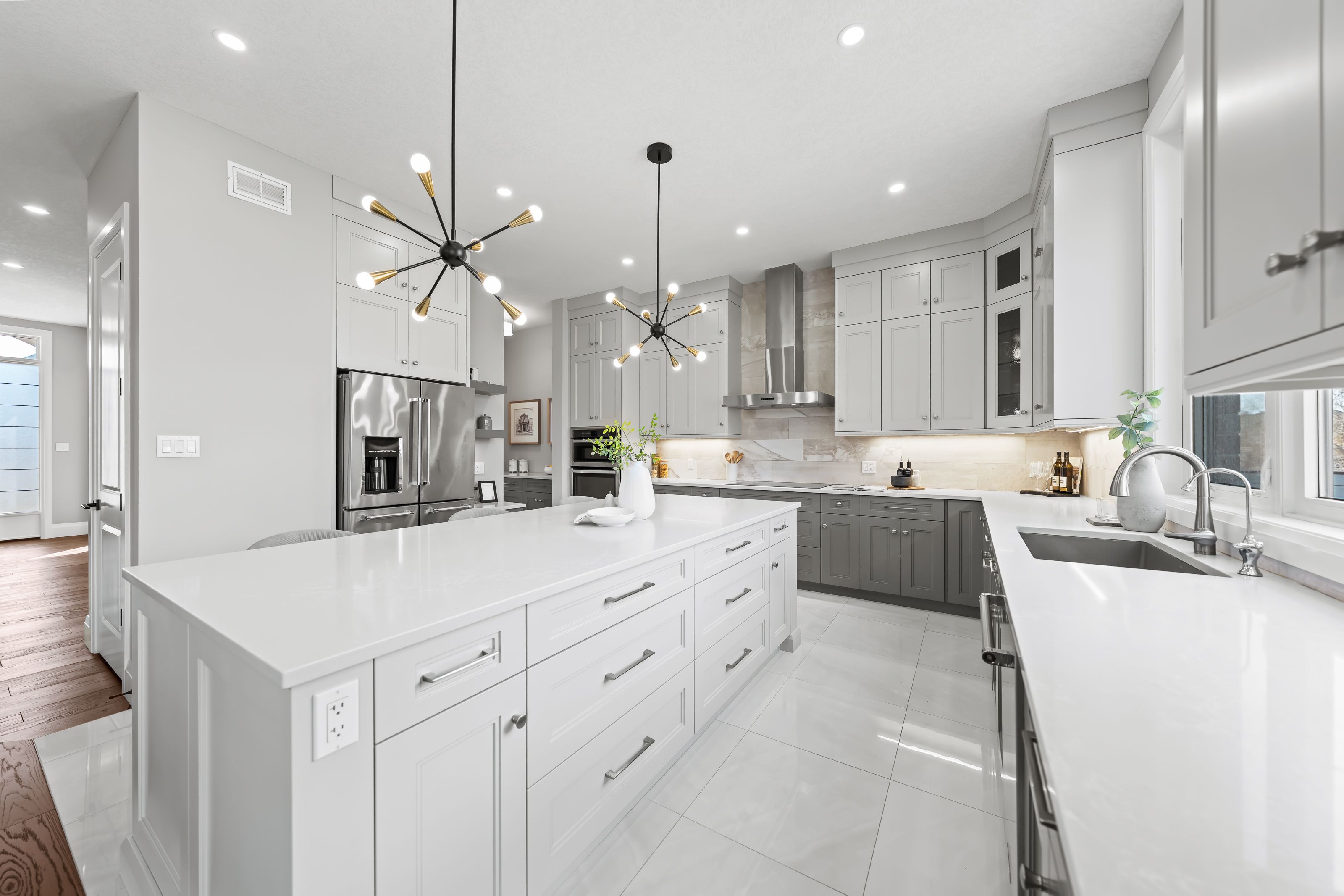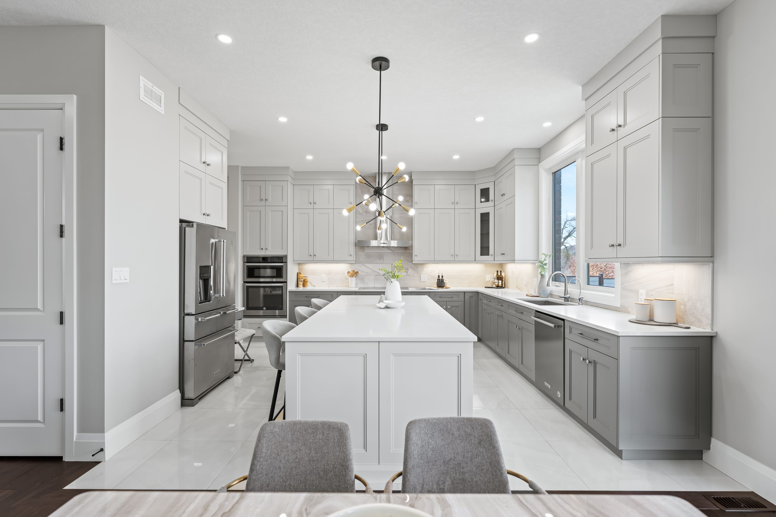 • Gorgeous kitchen features quartz counters, large island, and premium appliances.