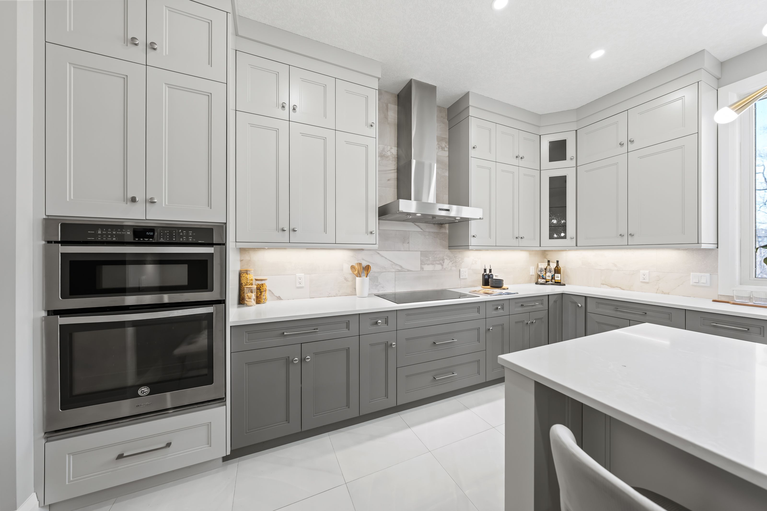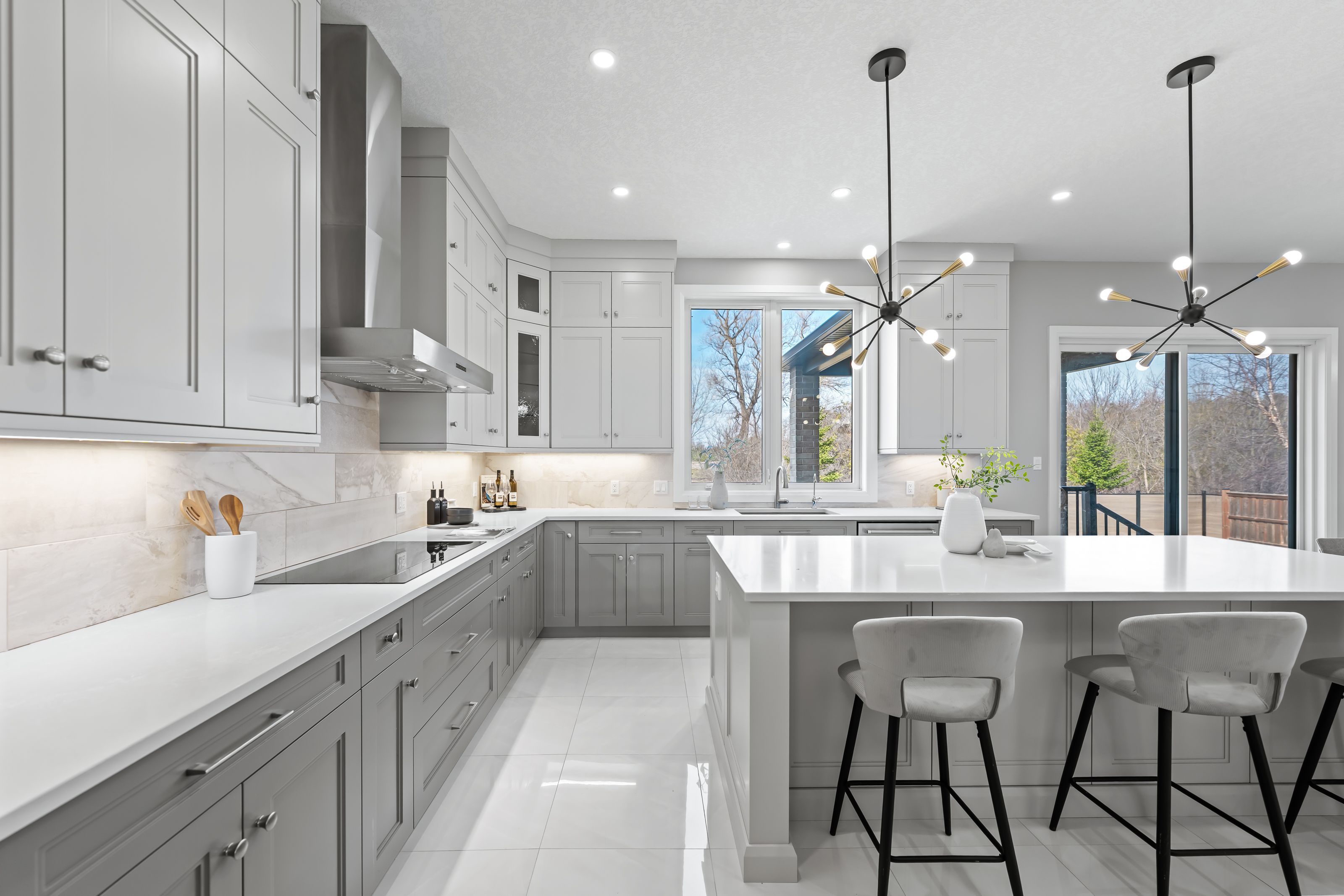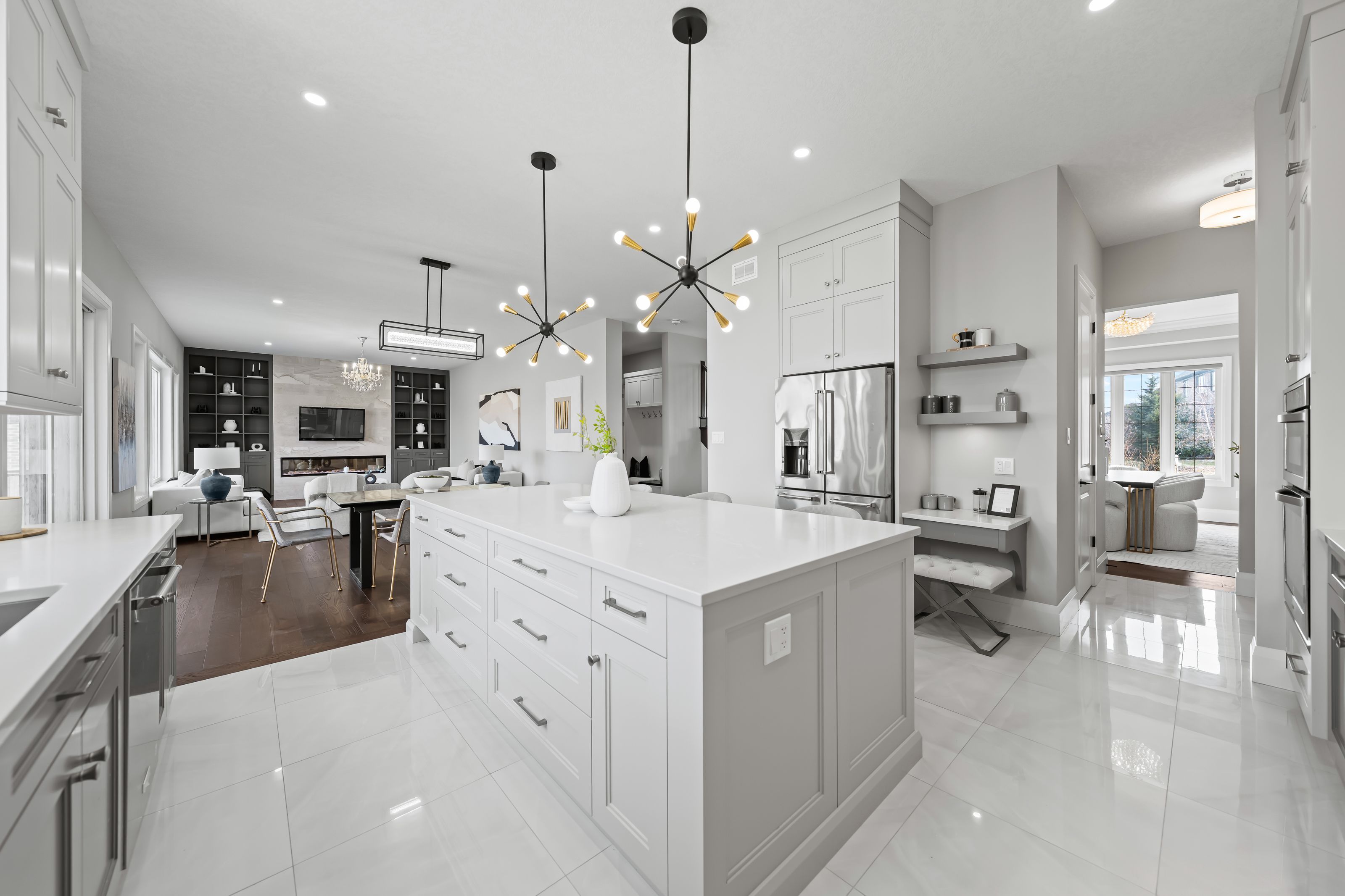 • Gorgeous kitchen features quartz counters, large island, and premium appliances.