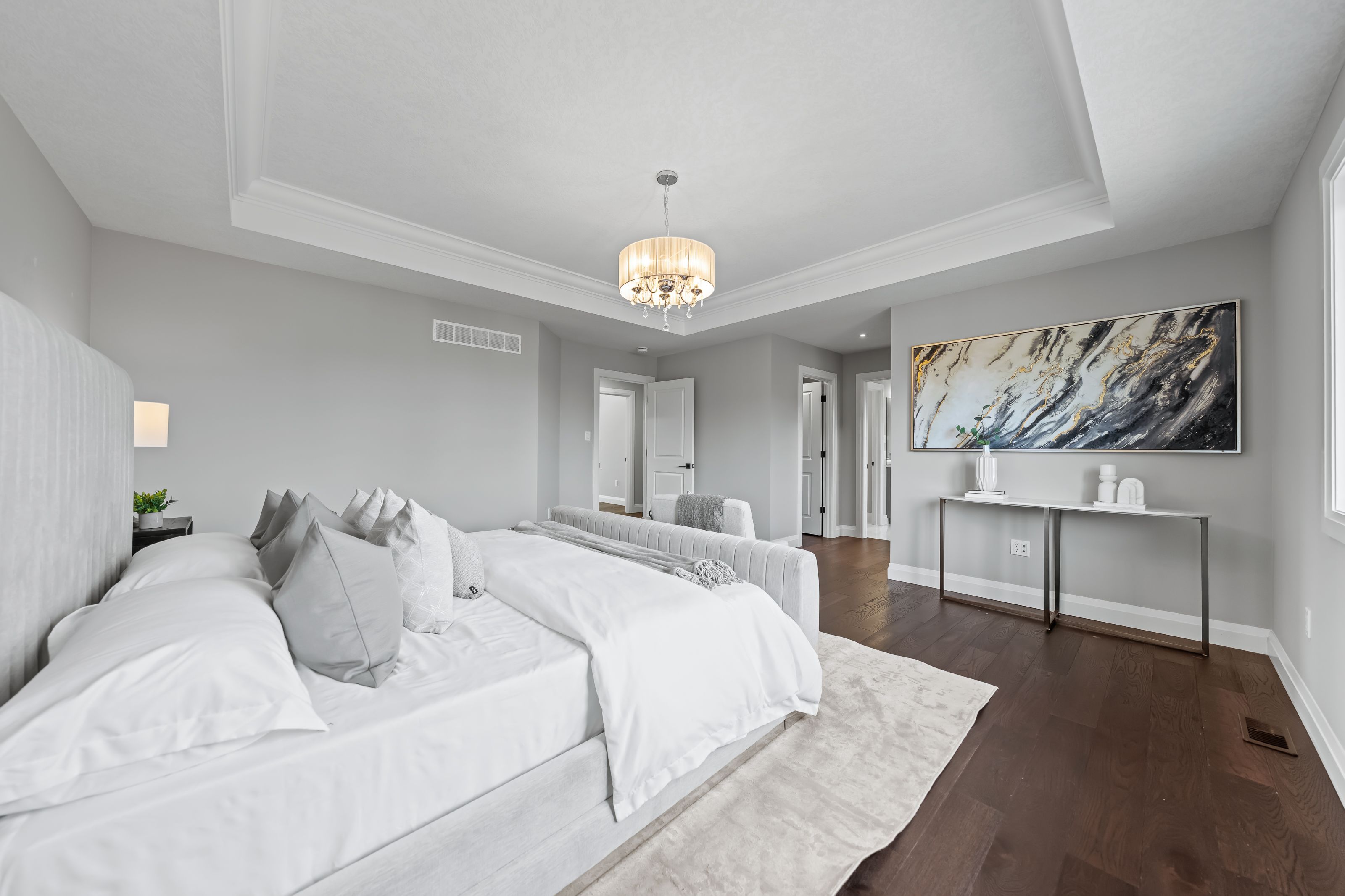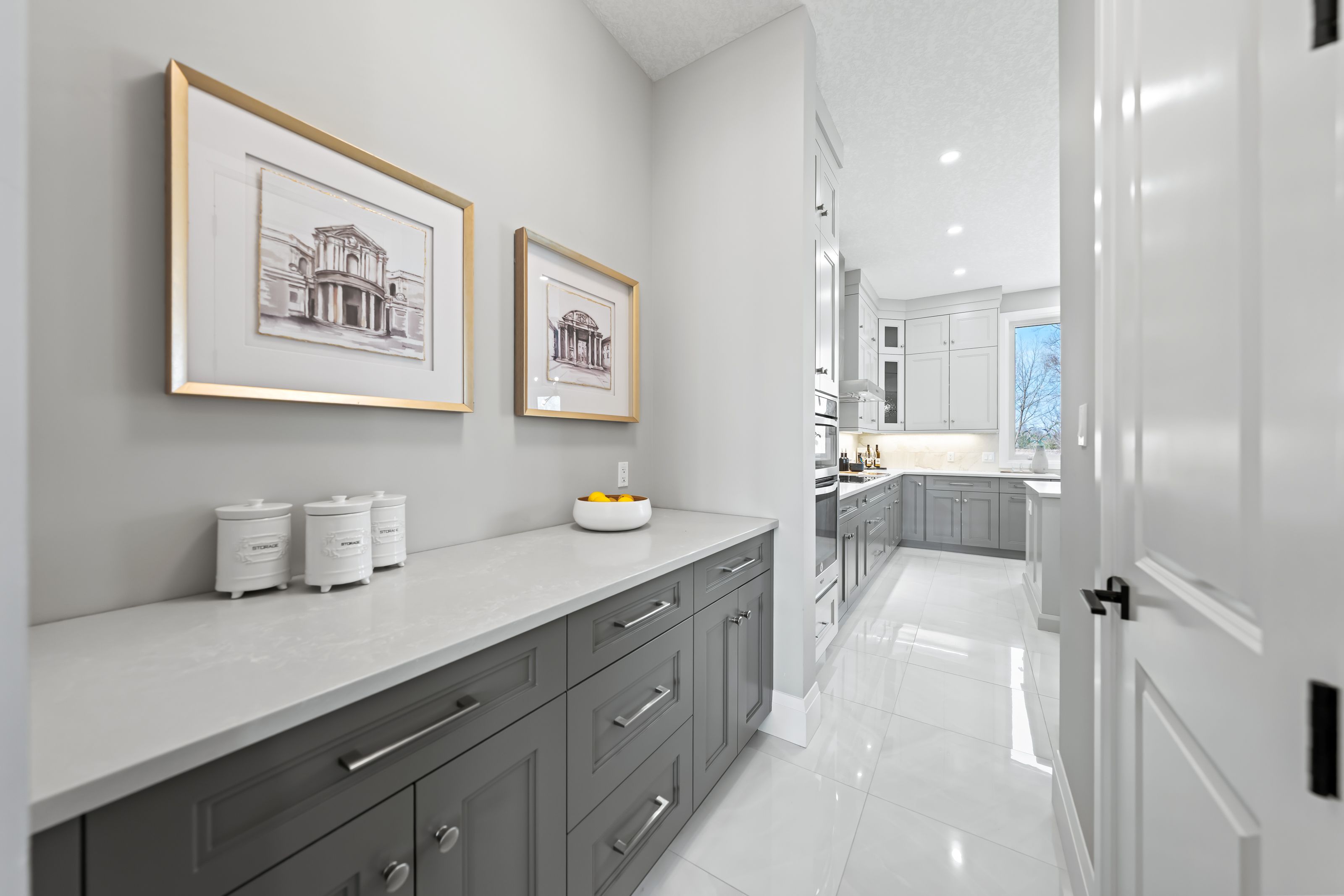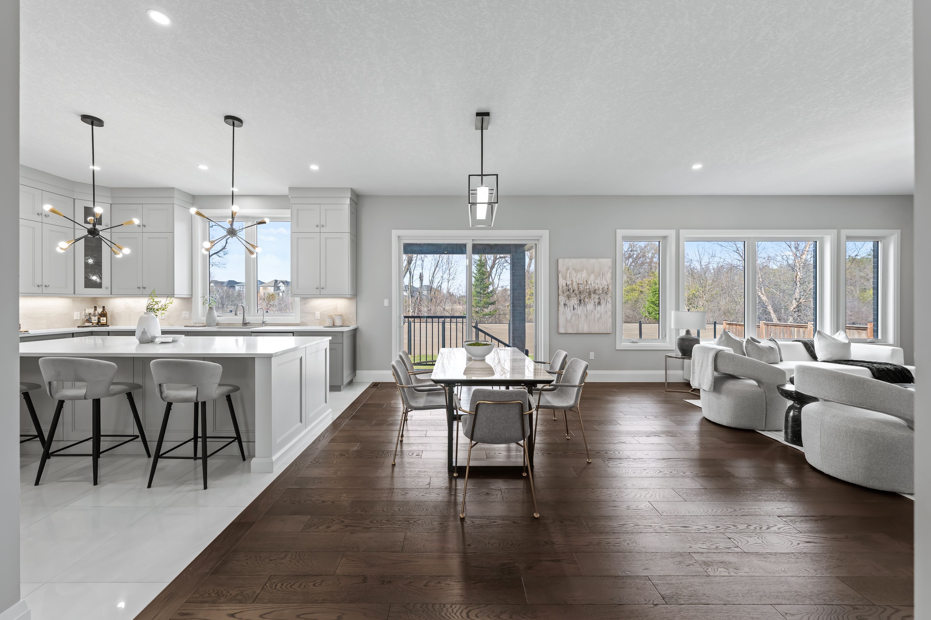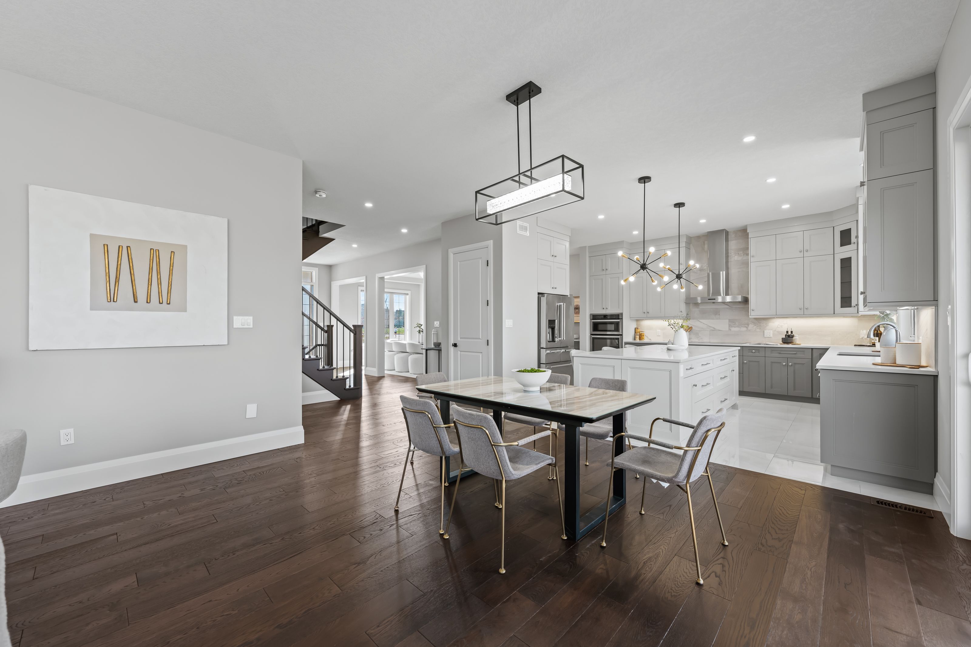 • Gorgeous kitchen features quartz counters, large island, and premium appliances.