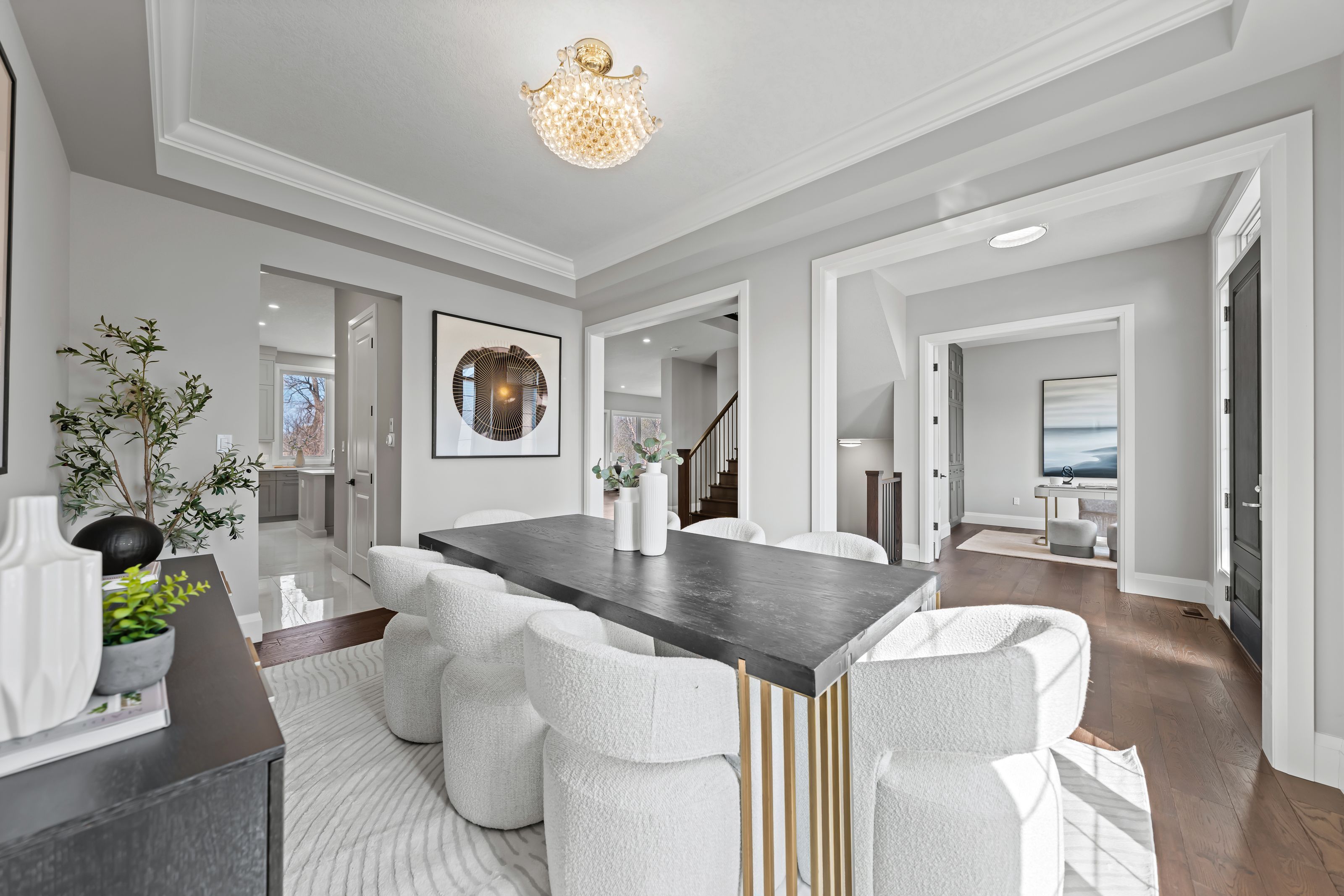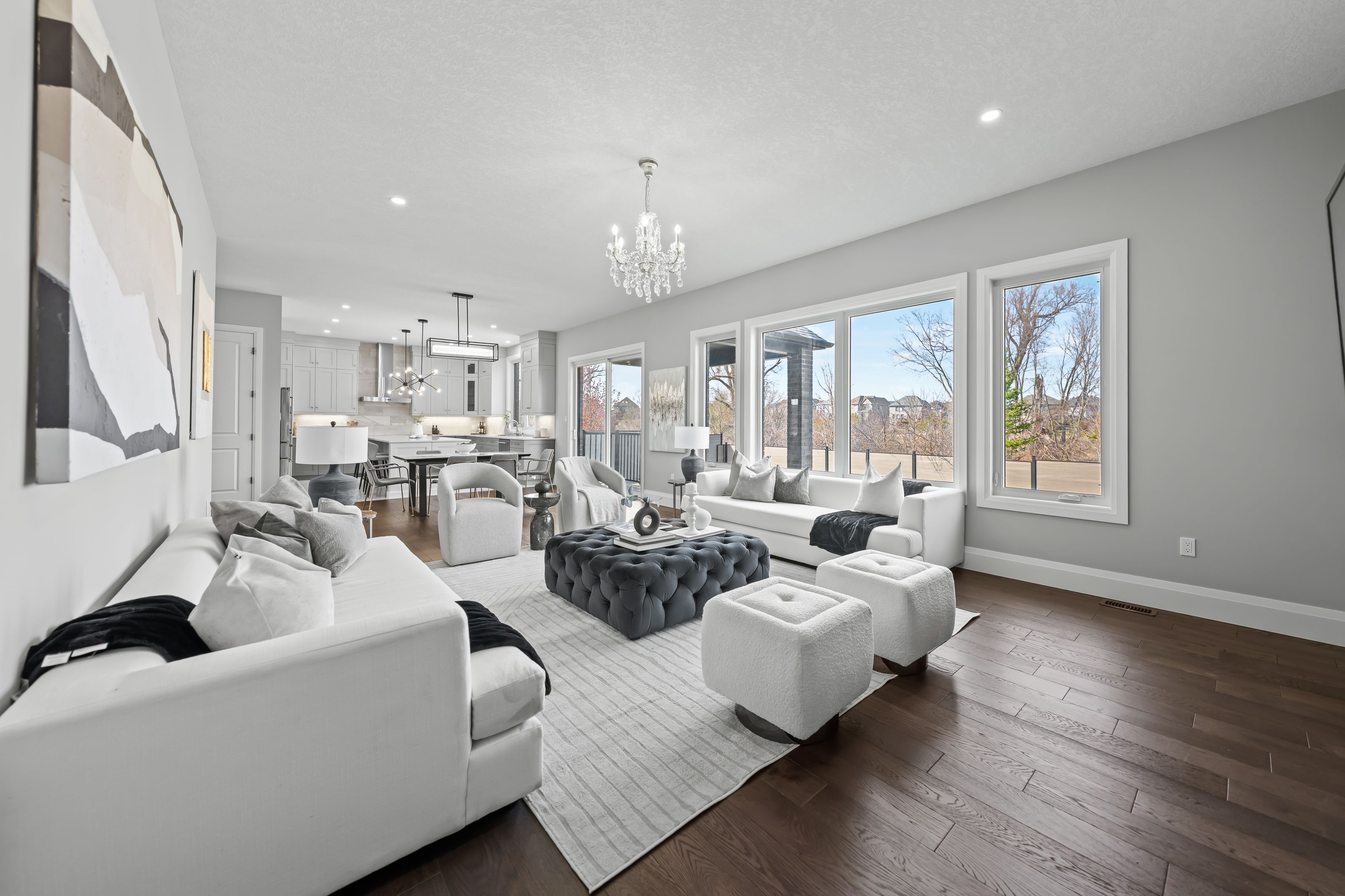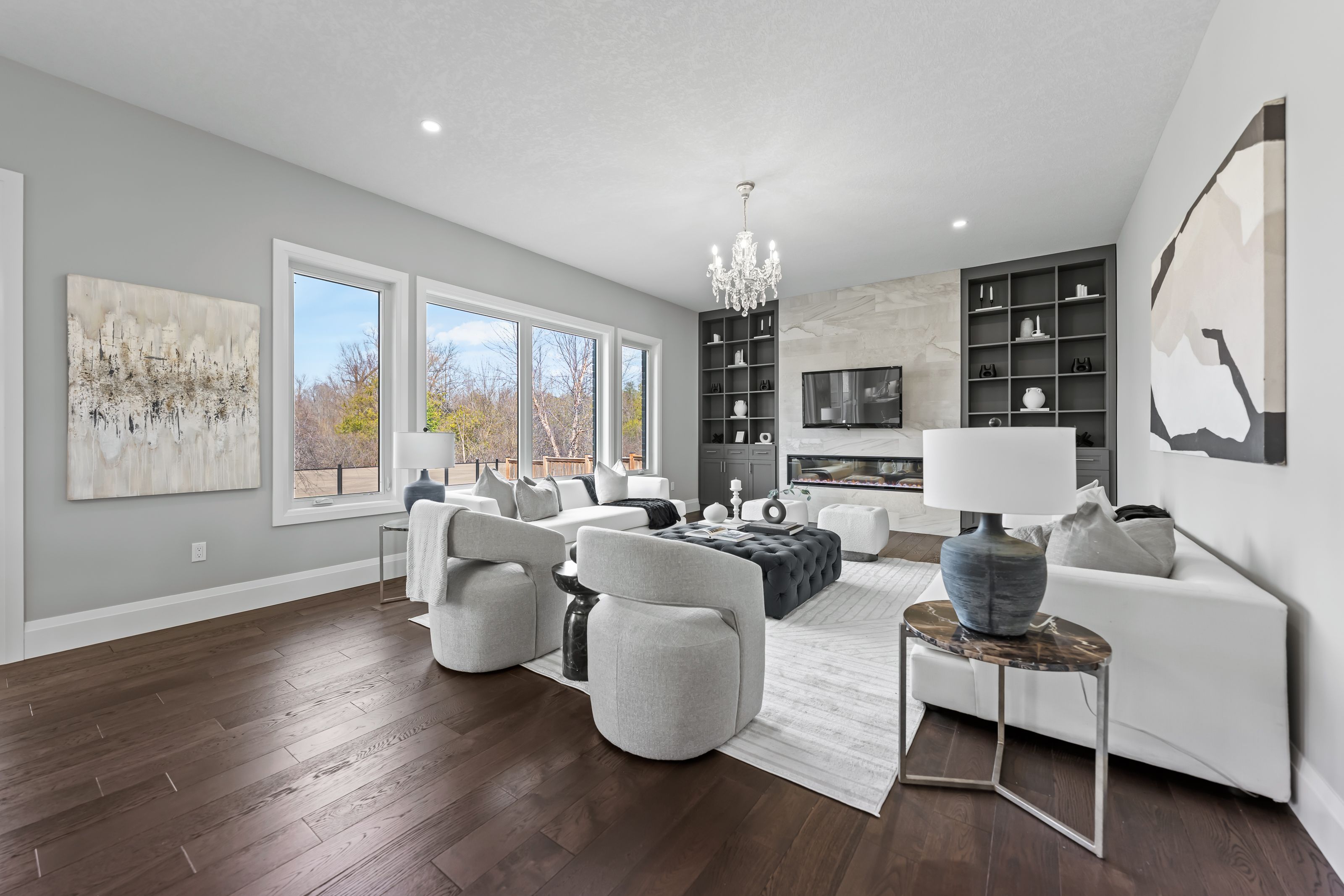 This is truly a rare offering in carriage crossing, waterloo-custom-built luxury with a triple car garage, 72' wide lot & backing protected forest. Blending elegance, comfort & exceptional craftsmanship, this executive home offers approx. 3,600 sf of beautifully finished above grade living space with 4 bdrms & 4 baths, thoughtfully designed for refined living. Set on an oversized lot, the home showcases timeless architecture, upscale finishes & a flr plan that impresses throughout. A welcoming entry opens to 10' ceilings, hardwood & porcelain tile flring & designer lighting. A front office/living rm with custom built-ins & a formal dining rm with tray ceiling frame the entry. The dining rm connects to a servery & walk-in pantry, leading into the custom chervin kitchen with quartz counters, backsplash, lrg island, under-cabinet lighting & premium appliances. The kitchen flows into the breakfast area with access to the covered back porch & opens to the great rm spanning the rear of the home-offering stunning views of the private, forested backyard. The great rm features an electric fp with custom built-ins. Completing the main is a lrg mud rm. Upstairs, the primary suite offers a walk-in closet & spa-like 5-pc ensuite with dual sinks, soaker tub & shower. 3 additional bdrms each feature walk-in closets & ensuite access-1 with a private 3-pc & 2 sharing a 5-pc jack & jill, plus upper level laundry. The unfinished lower level offers excellent potential with lrg windows & a bath rough-in-ready to be customized. The exterior is equally impressive with professionally landscaped grounds, interlock driveway, fenced yard & covered porch & patio, all surrounded by mature trees for exceptional privacy. Located in one of waterloo's most sought-after communities, steps to trails, parks, top-rated schools, rim park & grey silo golf club, & mins to st. Jacobs market, universities, shopping & hwy access-this is a rare opportunity to own a truly exceptional home in carriage crossing.