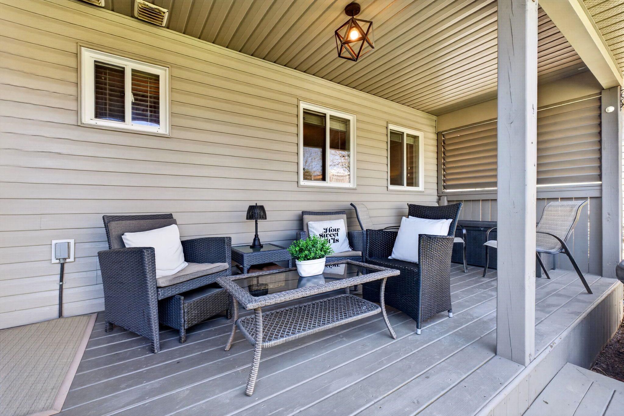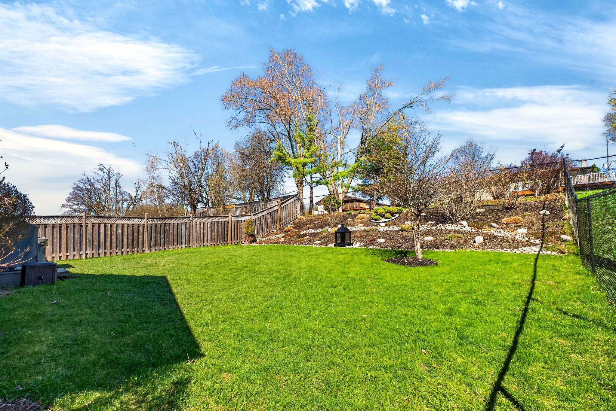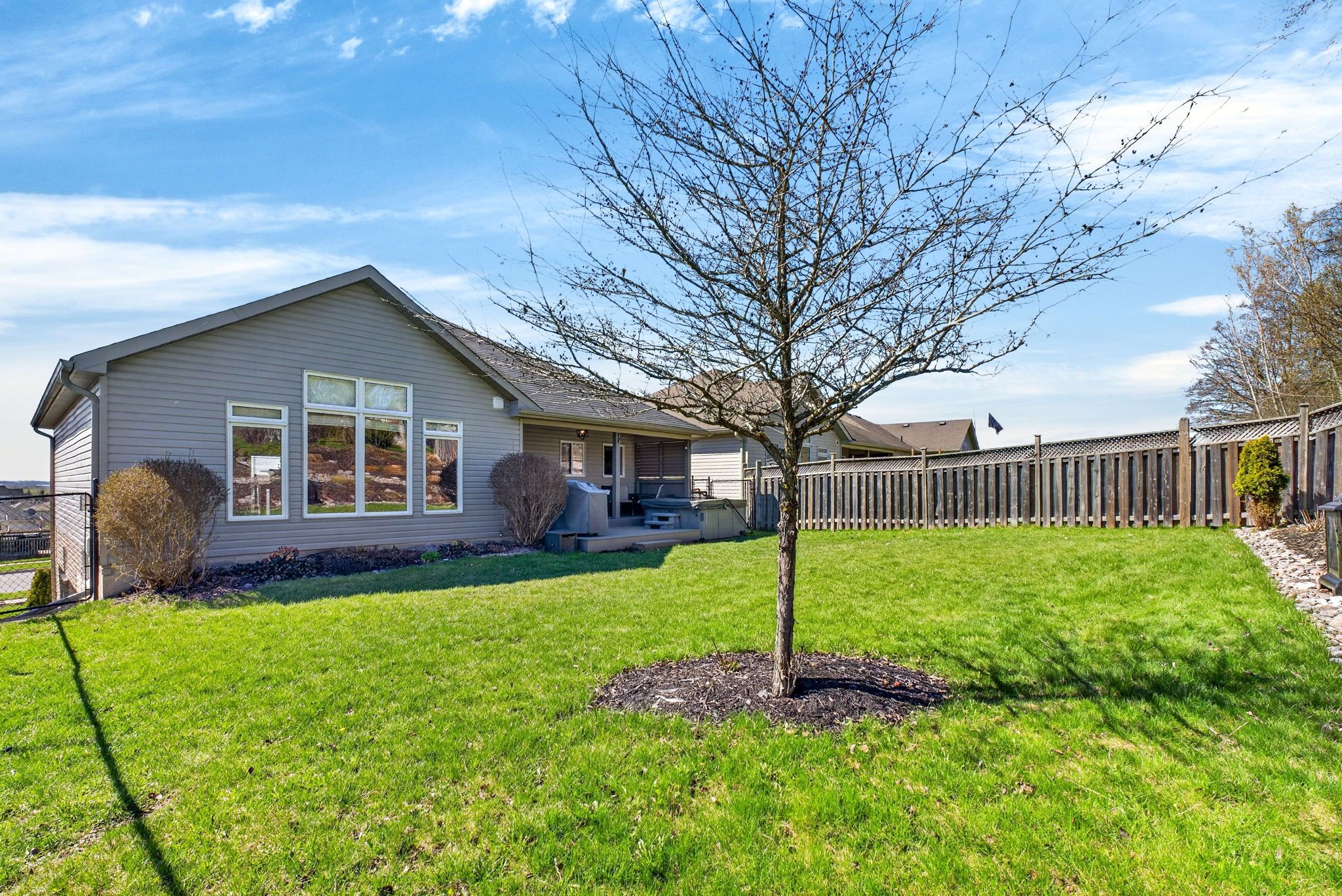 • Private backyard oasis with a large deck and maintained hot tub.