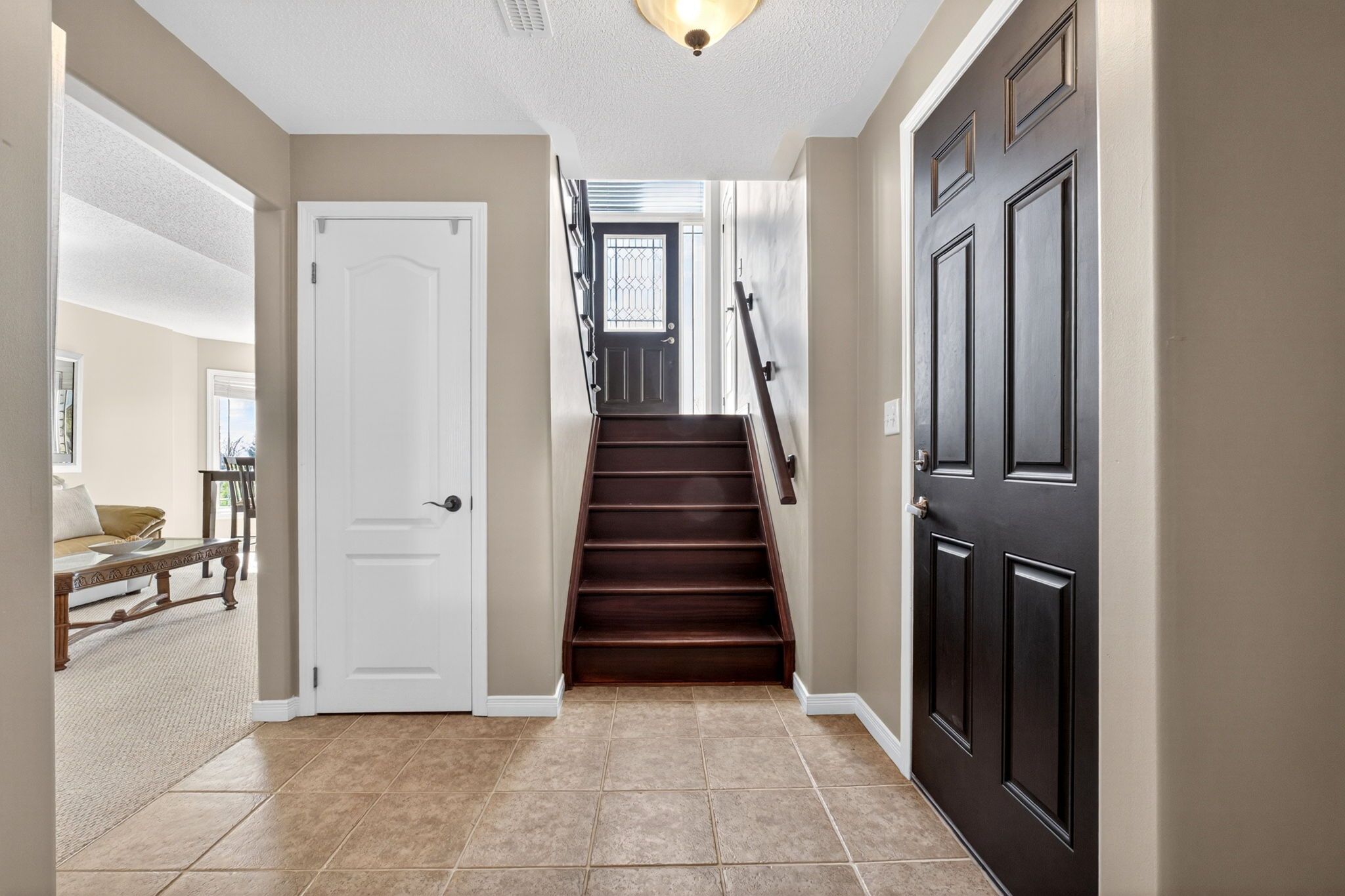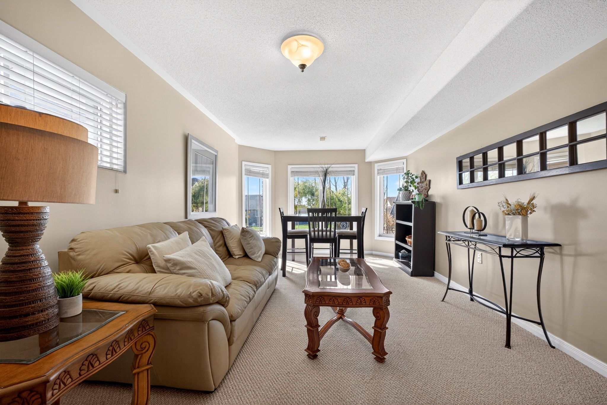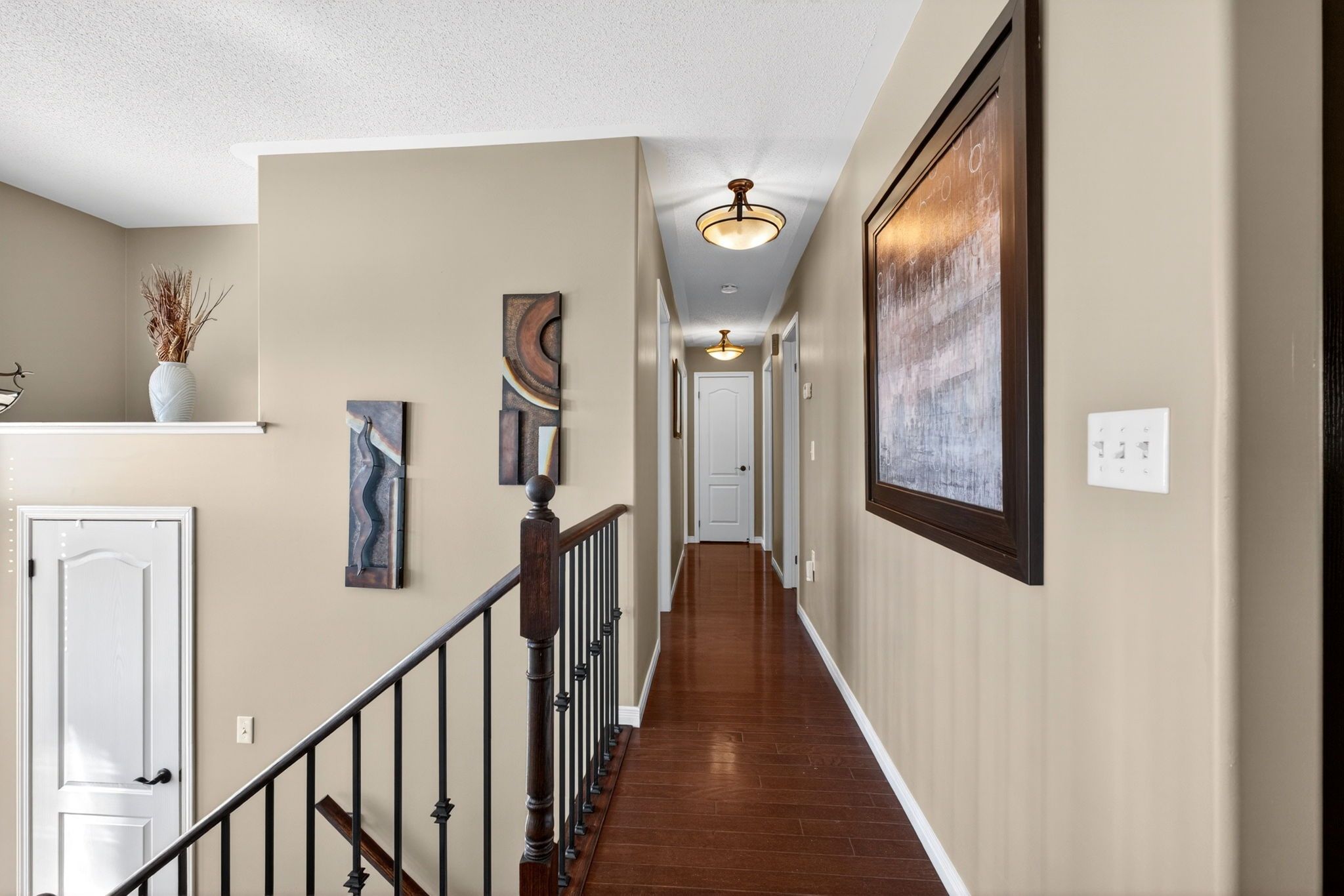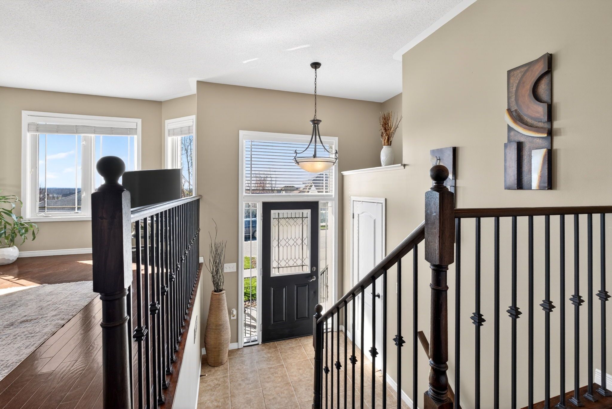• Bright open-concept main floor with vaulted ceilings and hardwood flooring.