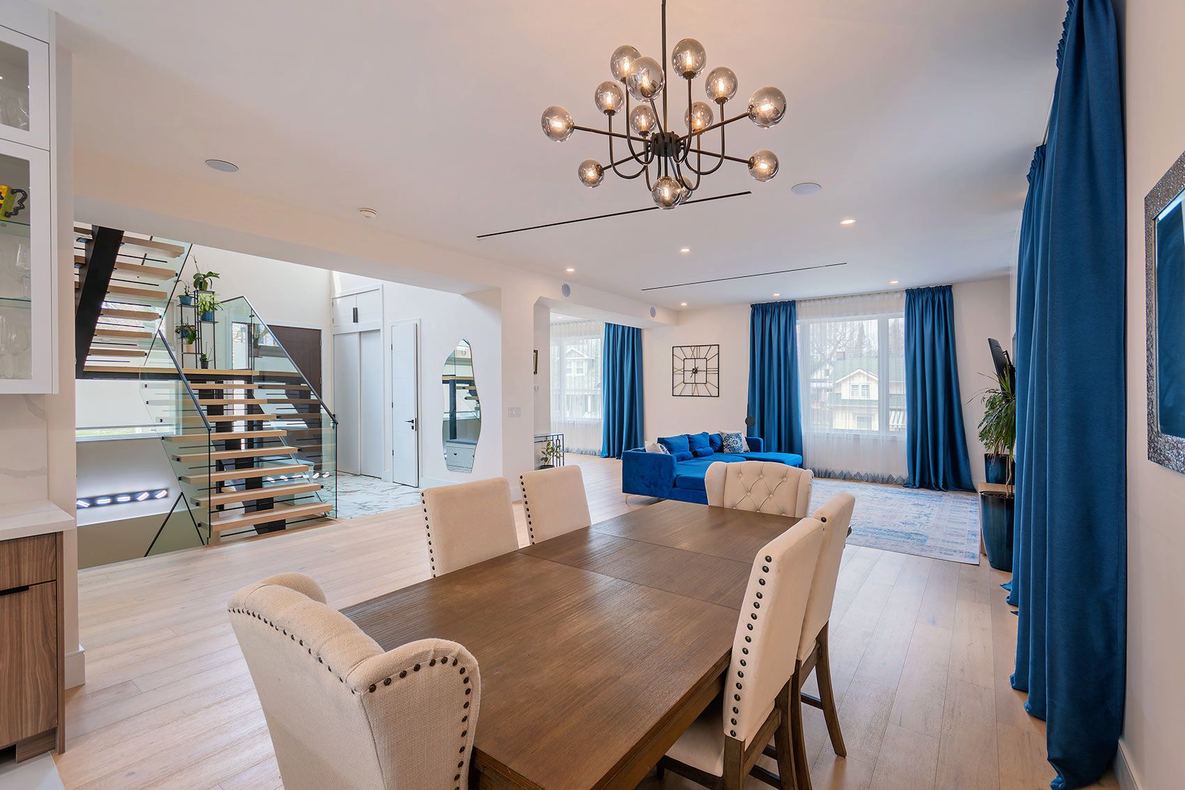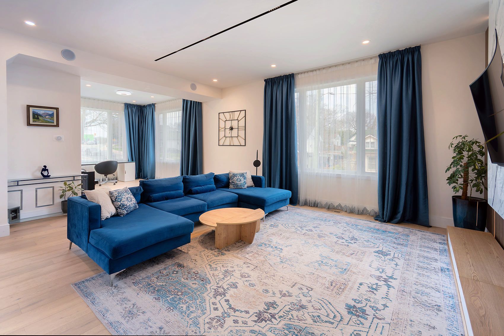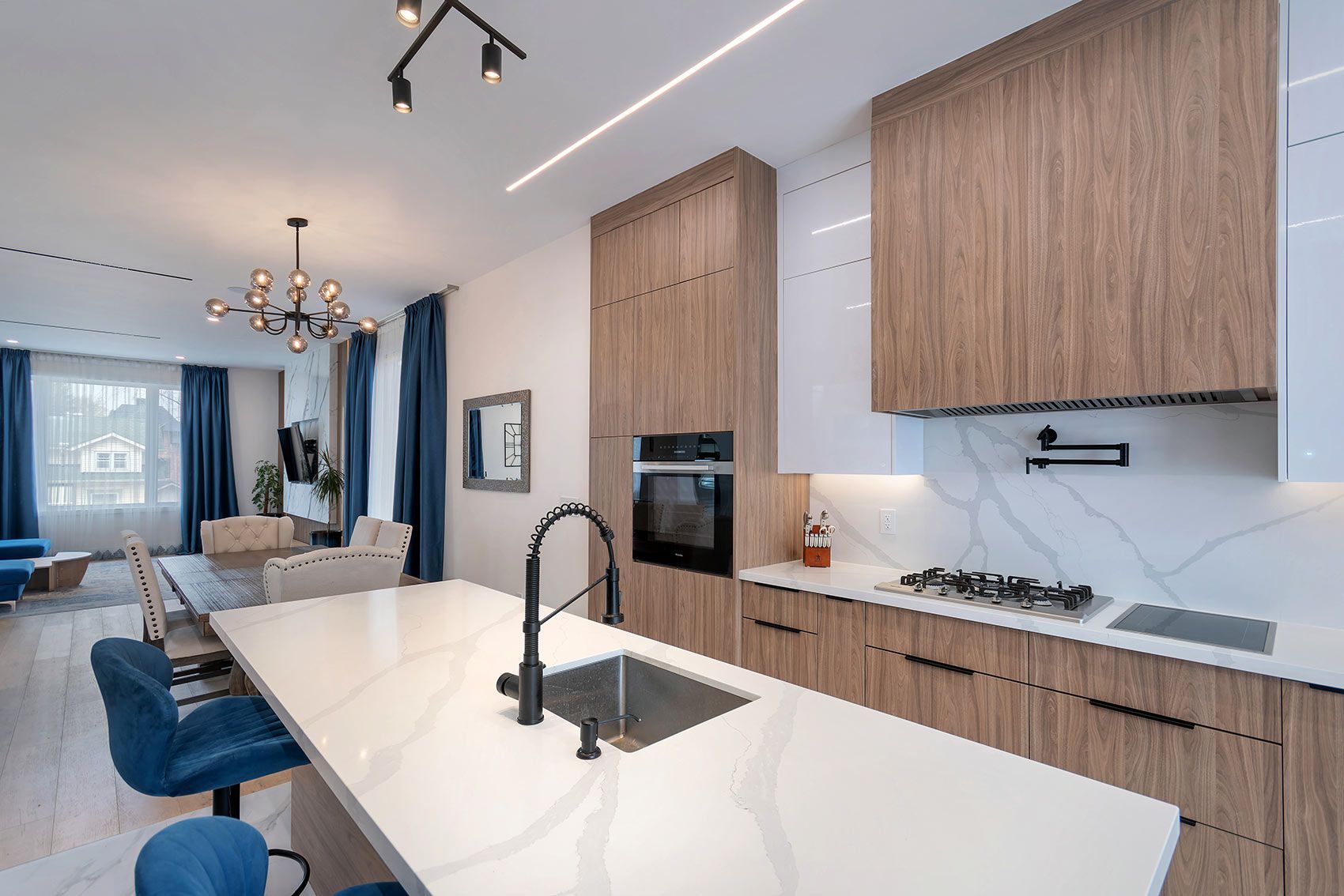 • Designer kitchen features high-end appliances and a spacious island for entertaining.