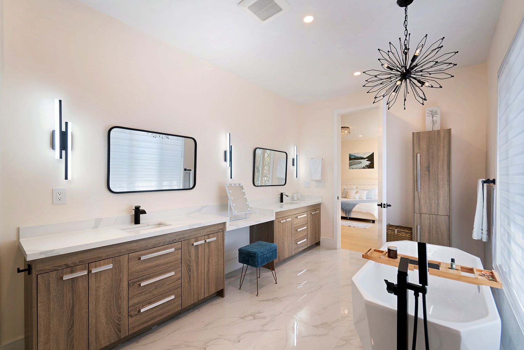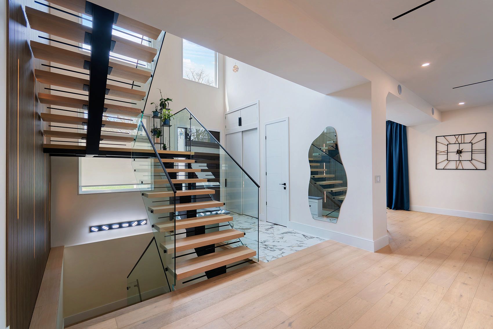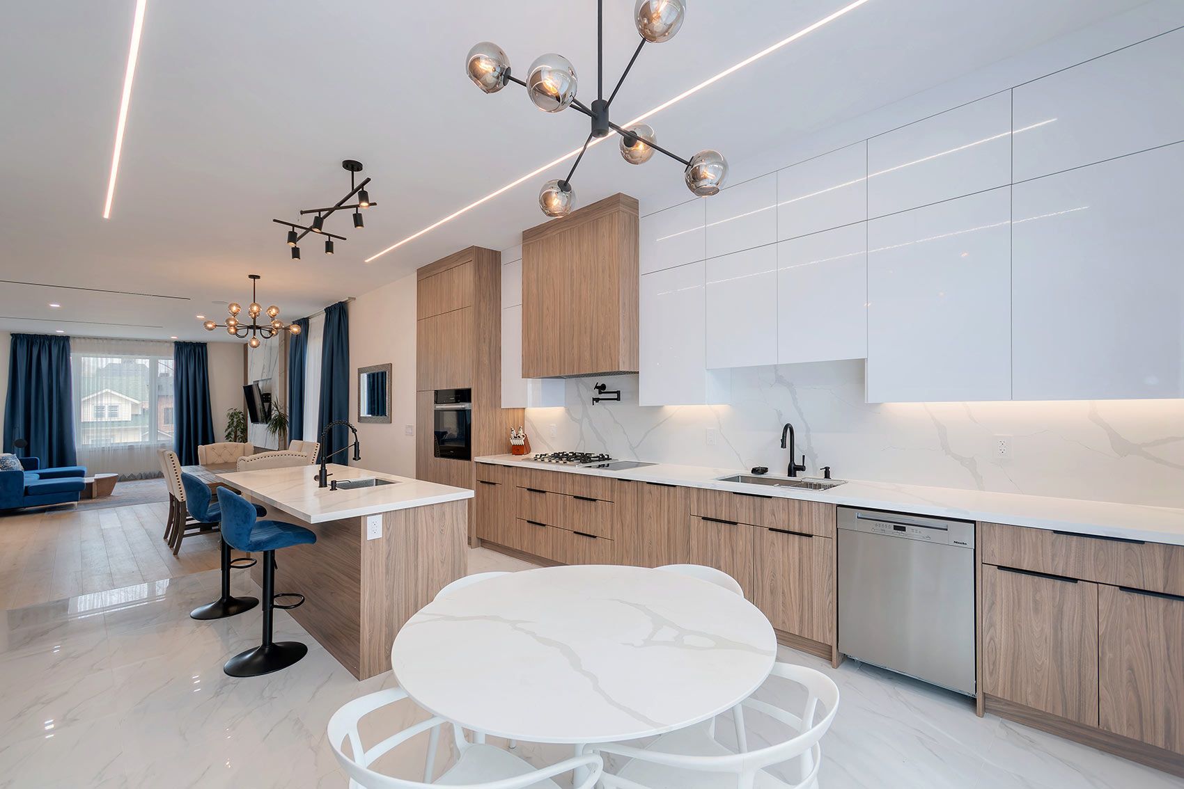 • Designer kitchen features high-end appliances and a spacious island for entertaining.