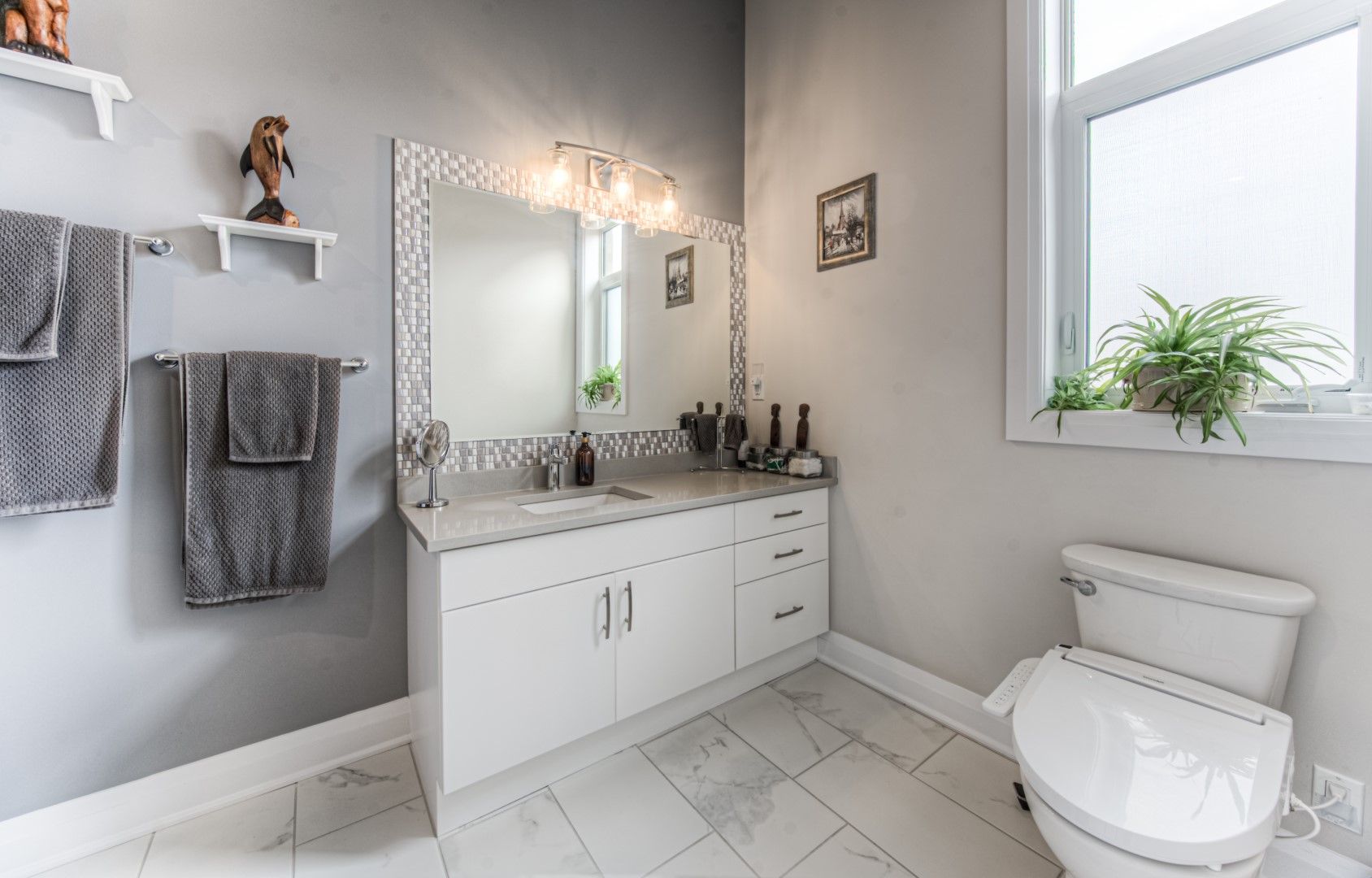 • Main level features a primary bedroom with ensuite and walk-in closet.