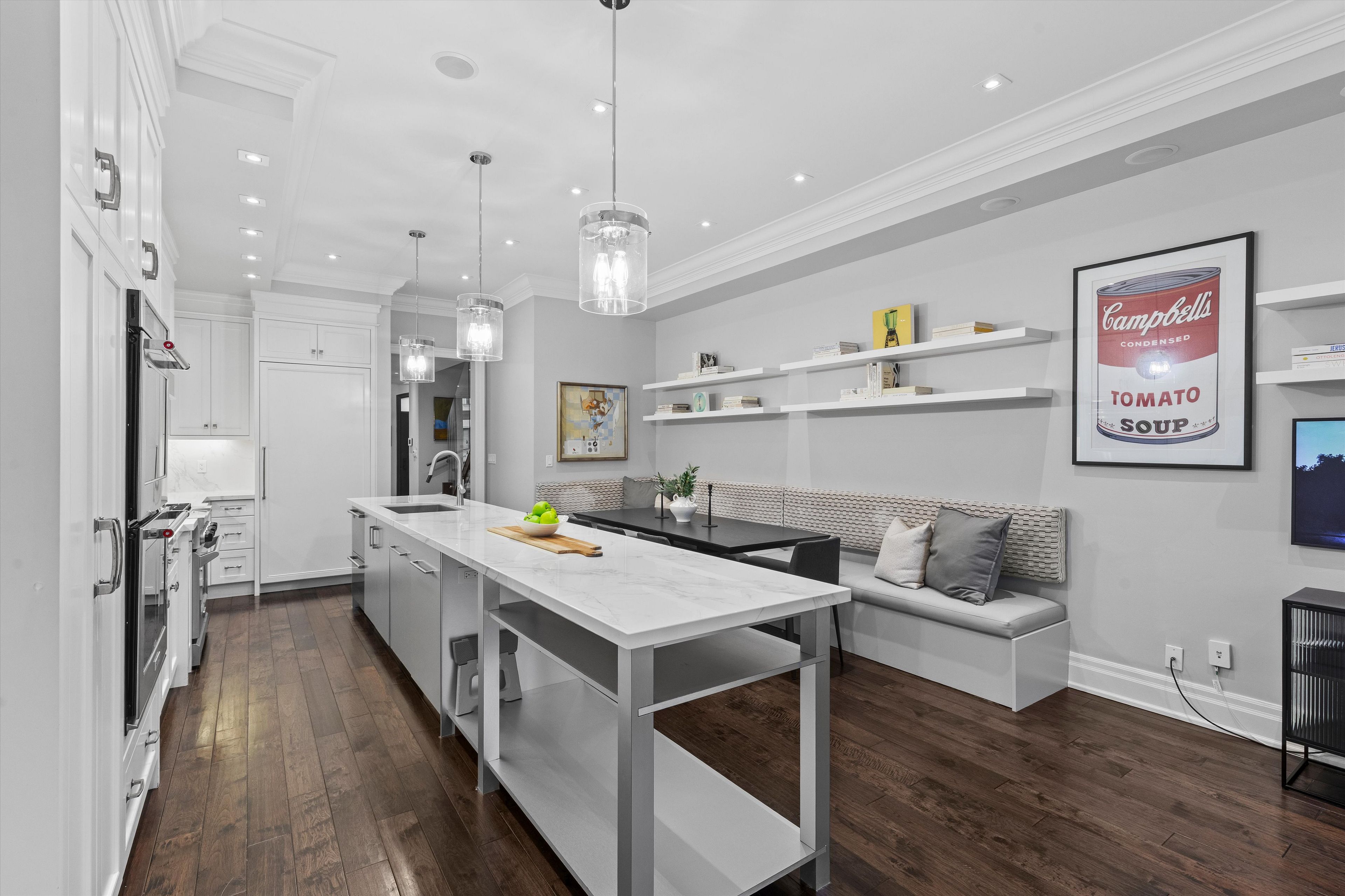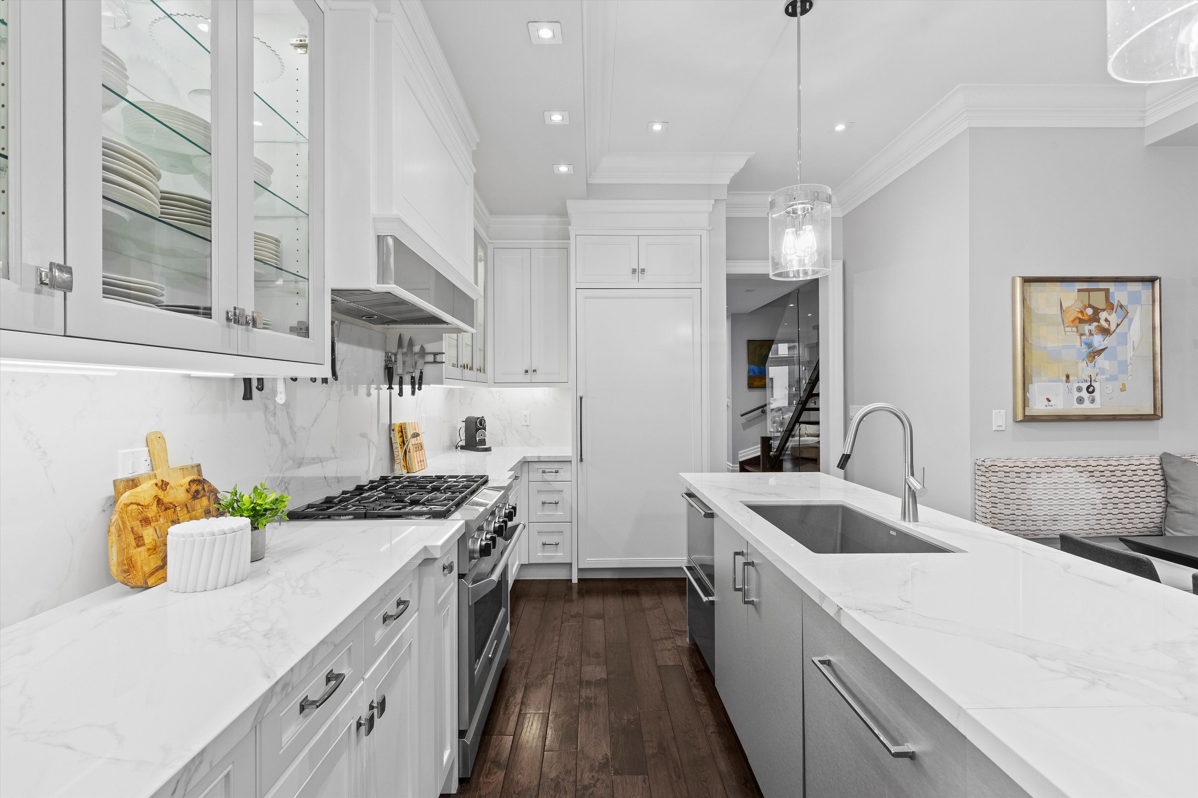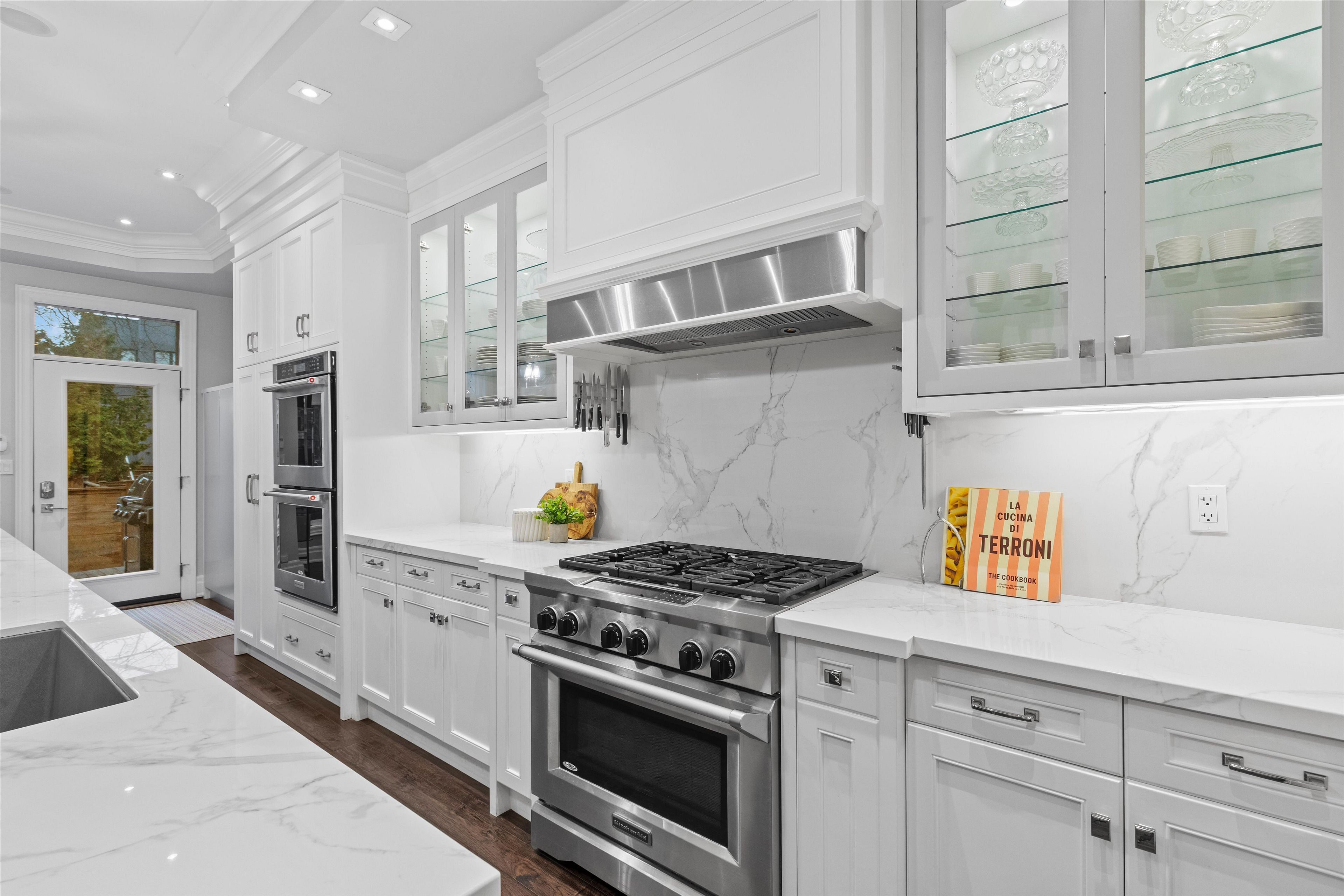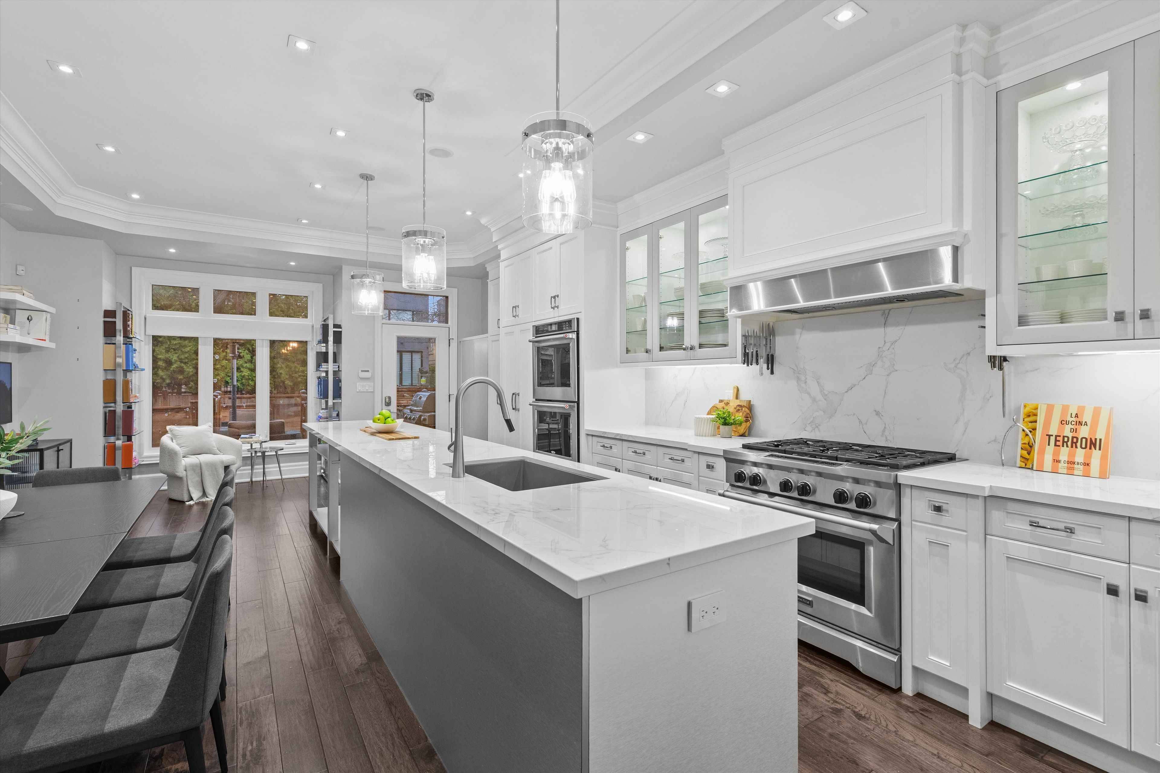 • Modern chef's kitchen with top-tier appliances and ample dining space for hosting.