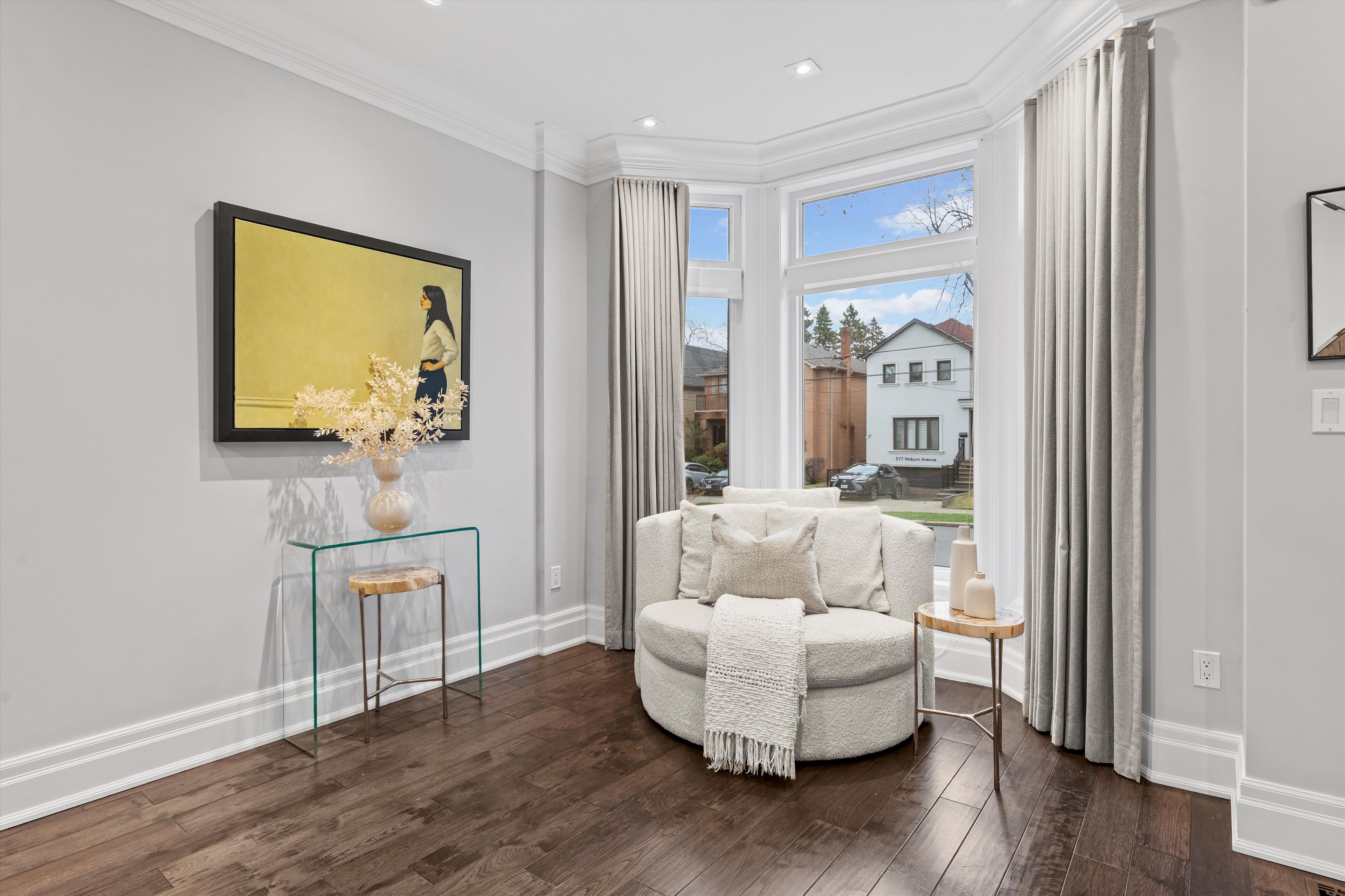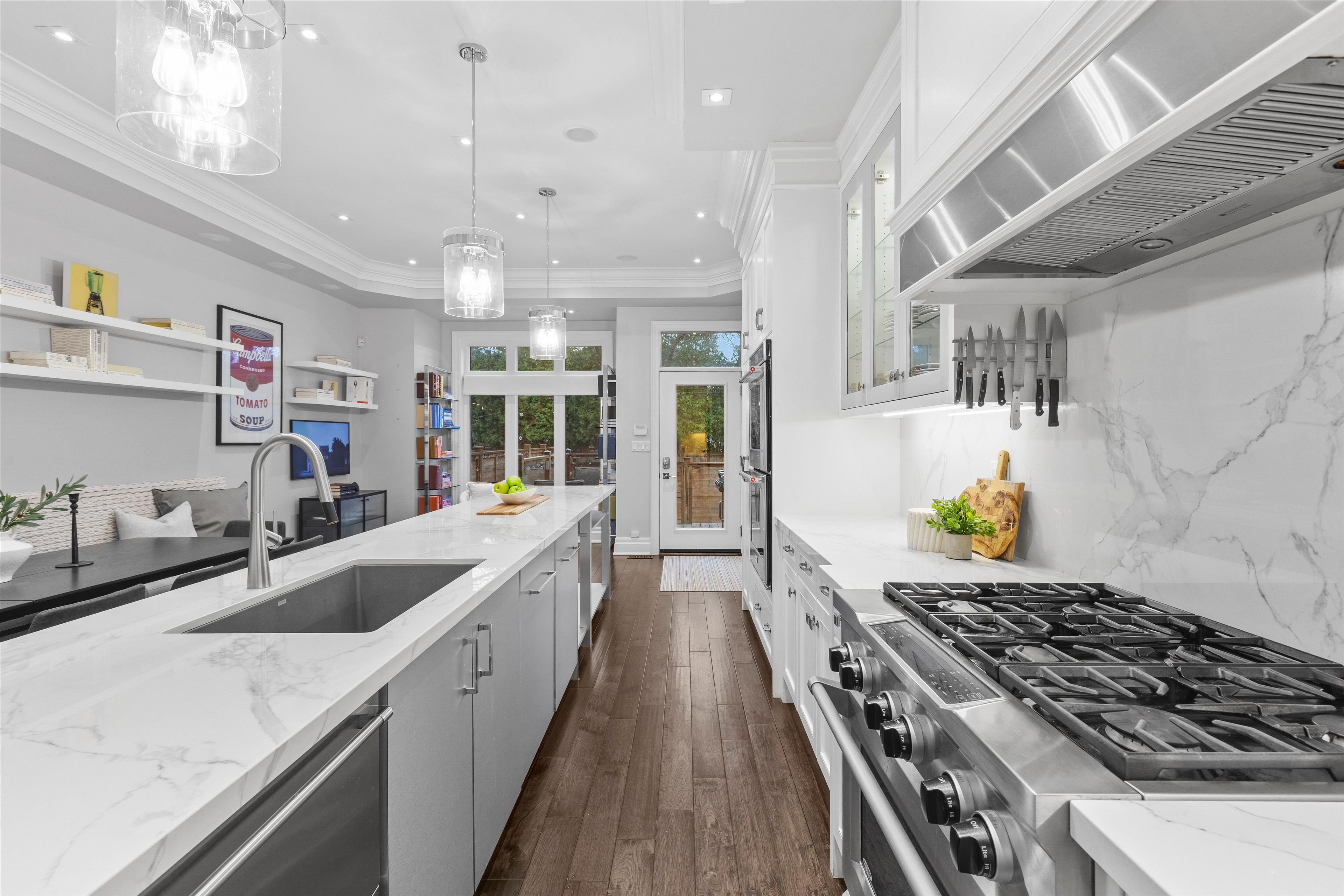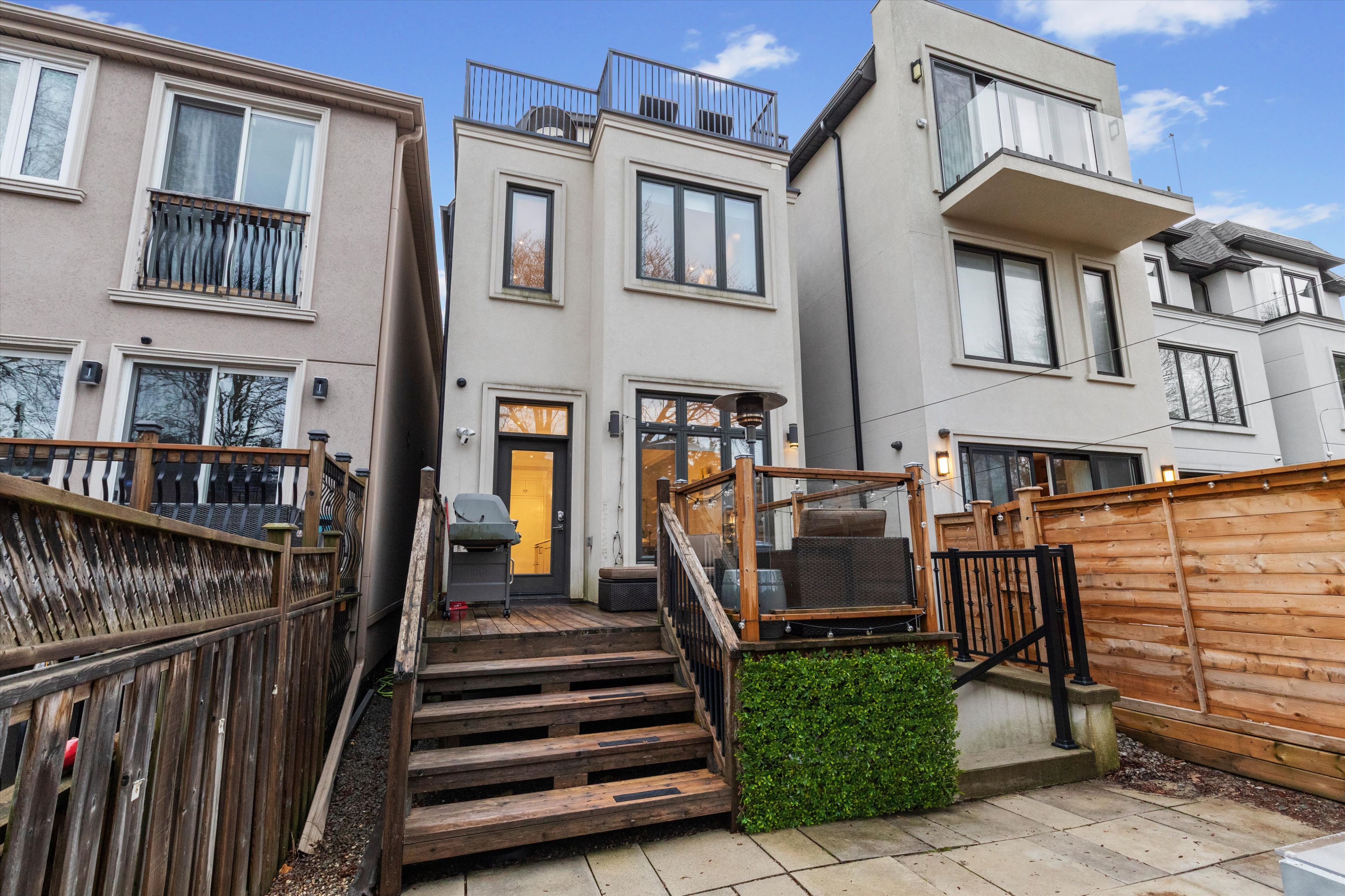 Welcome to 582 woburn avenue: an exceptional 5+1-bed, 5-bath detached 3-storey home situated on a quiet, tree-lined street in the heart of ledbury park. Spanning 2,492 sq. Ft. Above grade plus a fully finished 899 sq. Ft. Basement, this thoughtfully designed residence delivers the space, style, and functionality today's discerning buyer is looking for. The main level impresses from the moment you enter, with gleaming hardwood floors, soaring tray ceilings, and a sun-filled living room framed by a large bay window. The heart of the home is an extraordinary chef's kitchen, renovated just three years ago, featuring sub-zero, perlick, miele, and kitchenaid appliances, quartz countertops, custom cabinetry, a large centre island, and built-in banquet seating. To top it off, the kitchen comes equipped with three ovens and a large banquet dining area, making hosting a dream. From the kitchen, walk out to a private elevated deck, stone patio, and two-car laneway parking. Upstairs, the serene primary suite offers a walk-in closet, custom built-ins, and a stunning 5-piece marble ensuite with his-and-hers sinks. Four additional bedrooms span the upper levels, along with a beautifully appointed 4-piece bath and a serene third-floor retreat complete with its own 3-piece bath, skylight, and private terrace. The finished basement adds a spacious recreation room with a gas fireplace, a walk-up to the back patio, a laundry room, and a sixth bedroom with a full bathroom. Perfect for a live-in nanny, extended family or guests. Located in the catchment for ledbury park elementary and middle school (jk-8) and john polanyi collegiate institute (9-12) are among the most sought-after public schools in the city. Steps to lawrence subway station, pusateri's, top-rated restaurants, and parks. A rare opportunity in one of toronto's most beloved neighbourhoods.