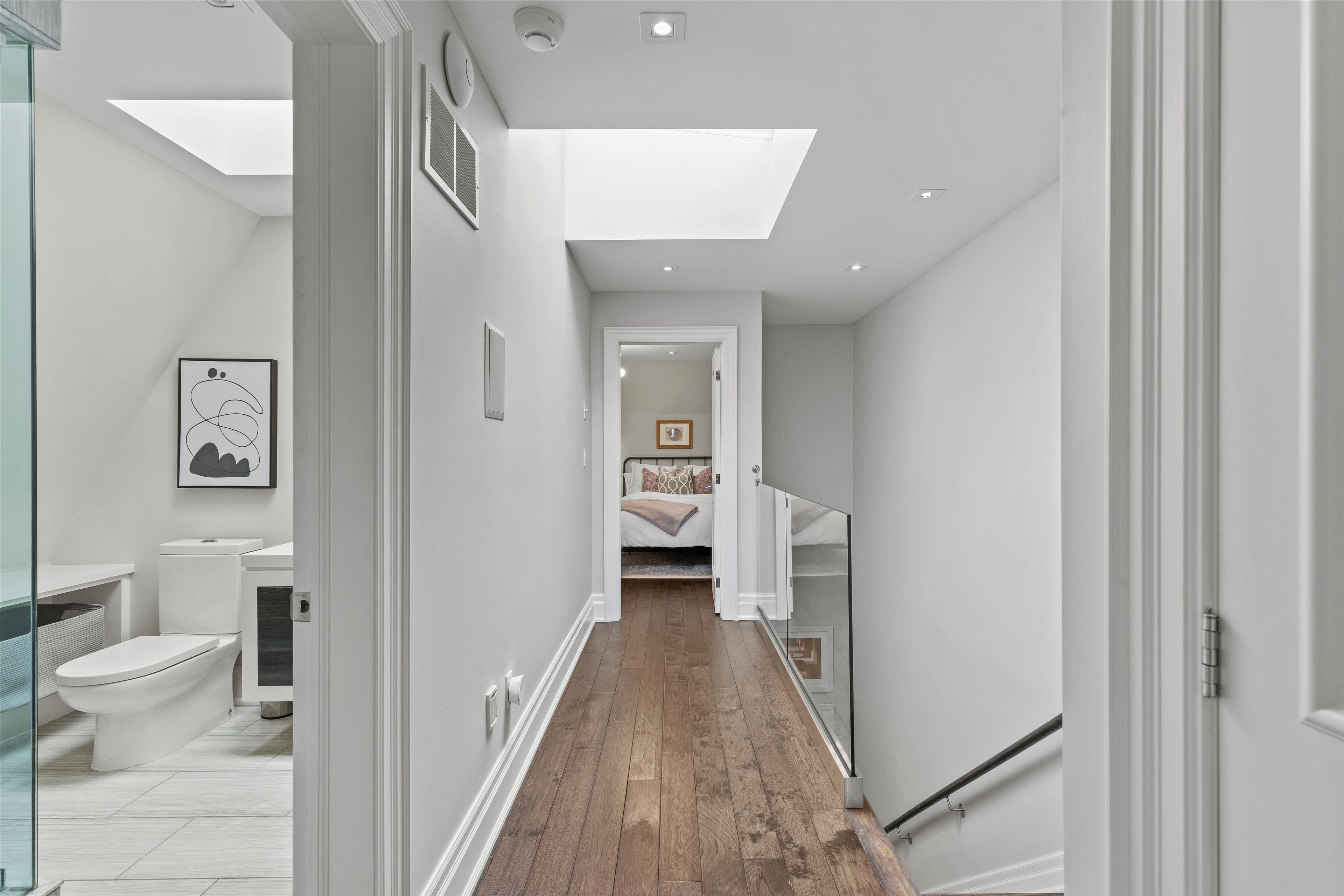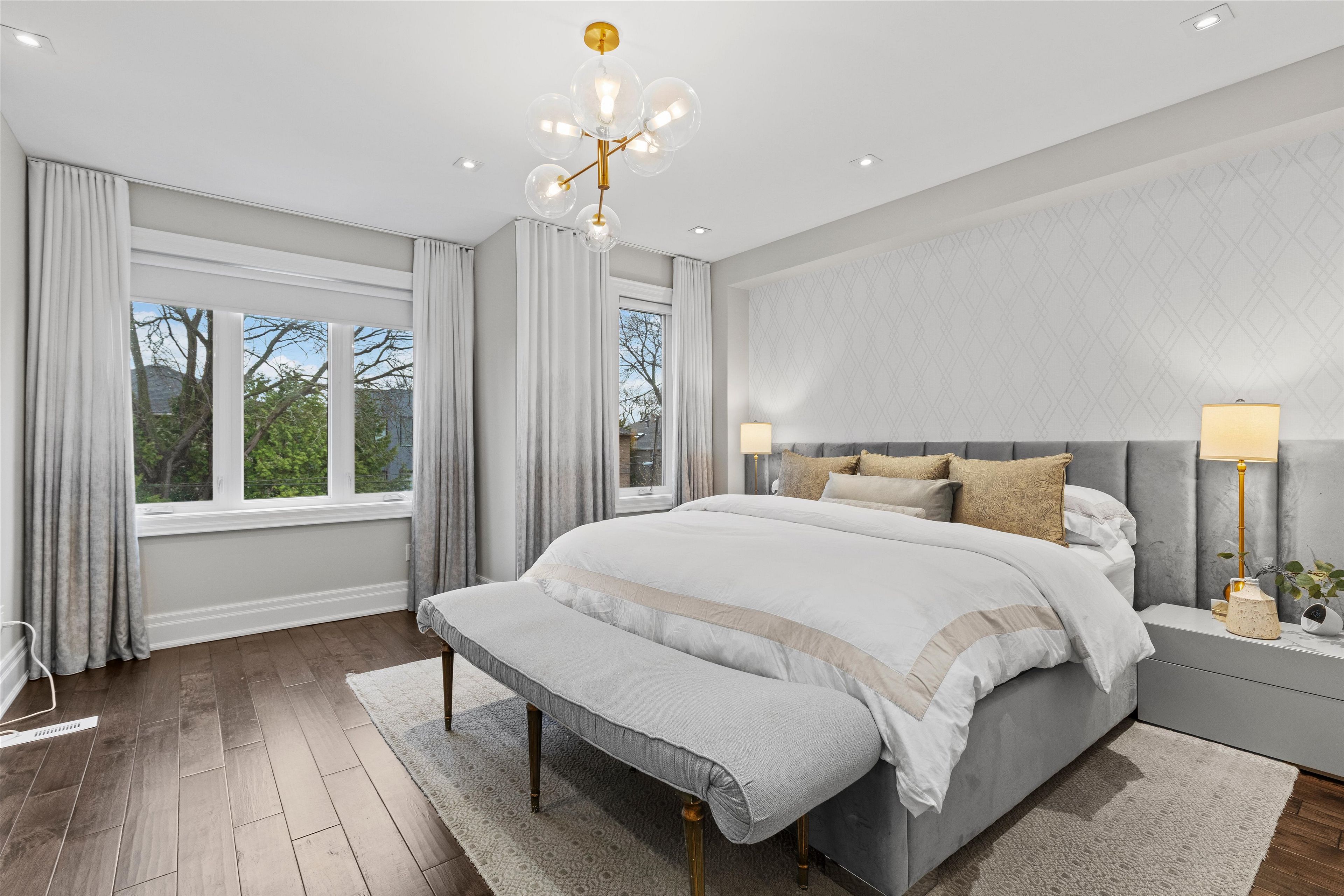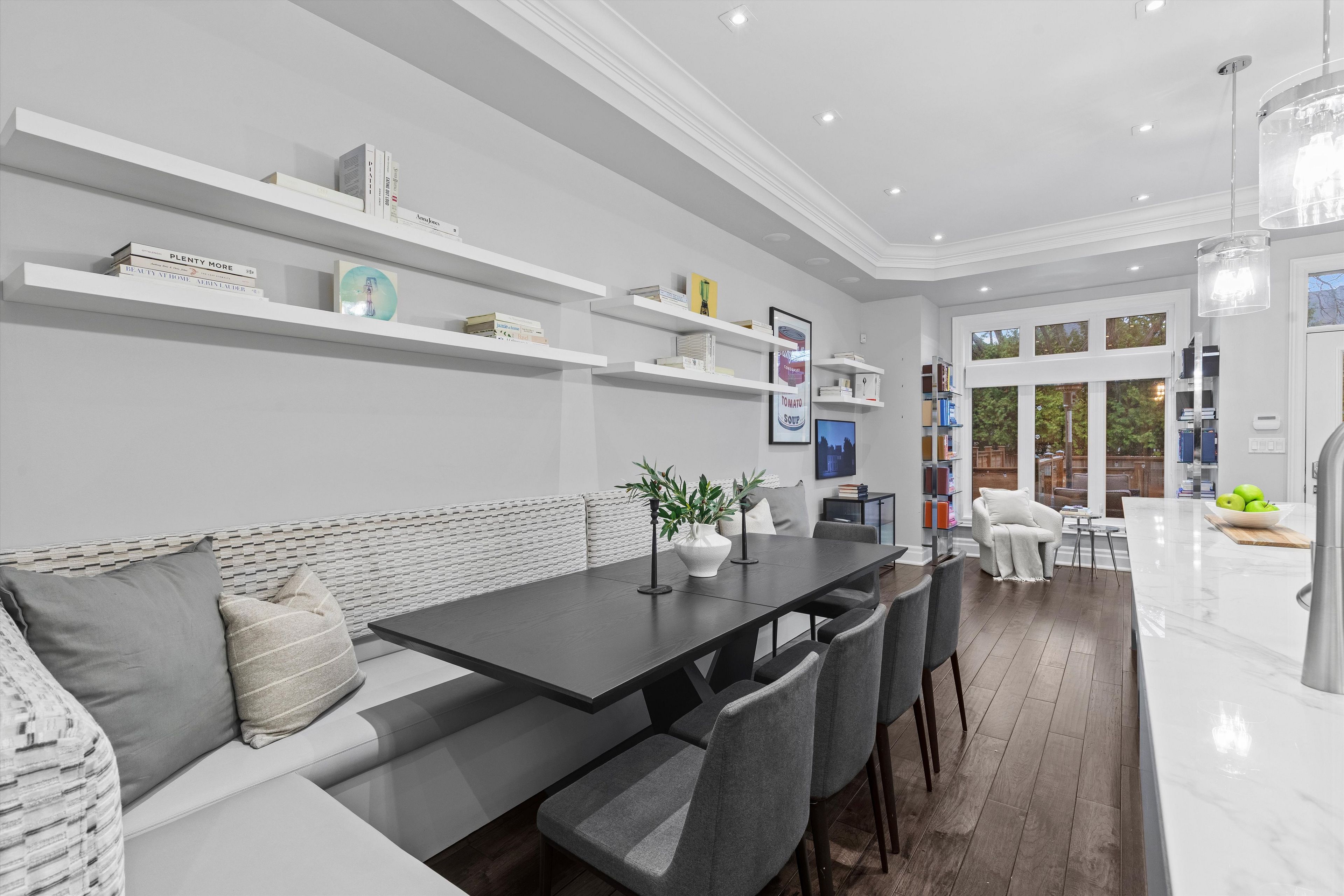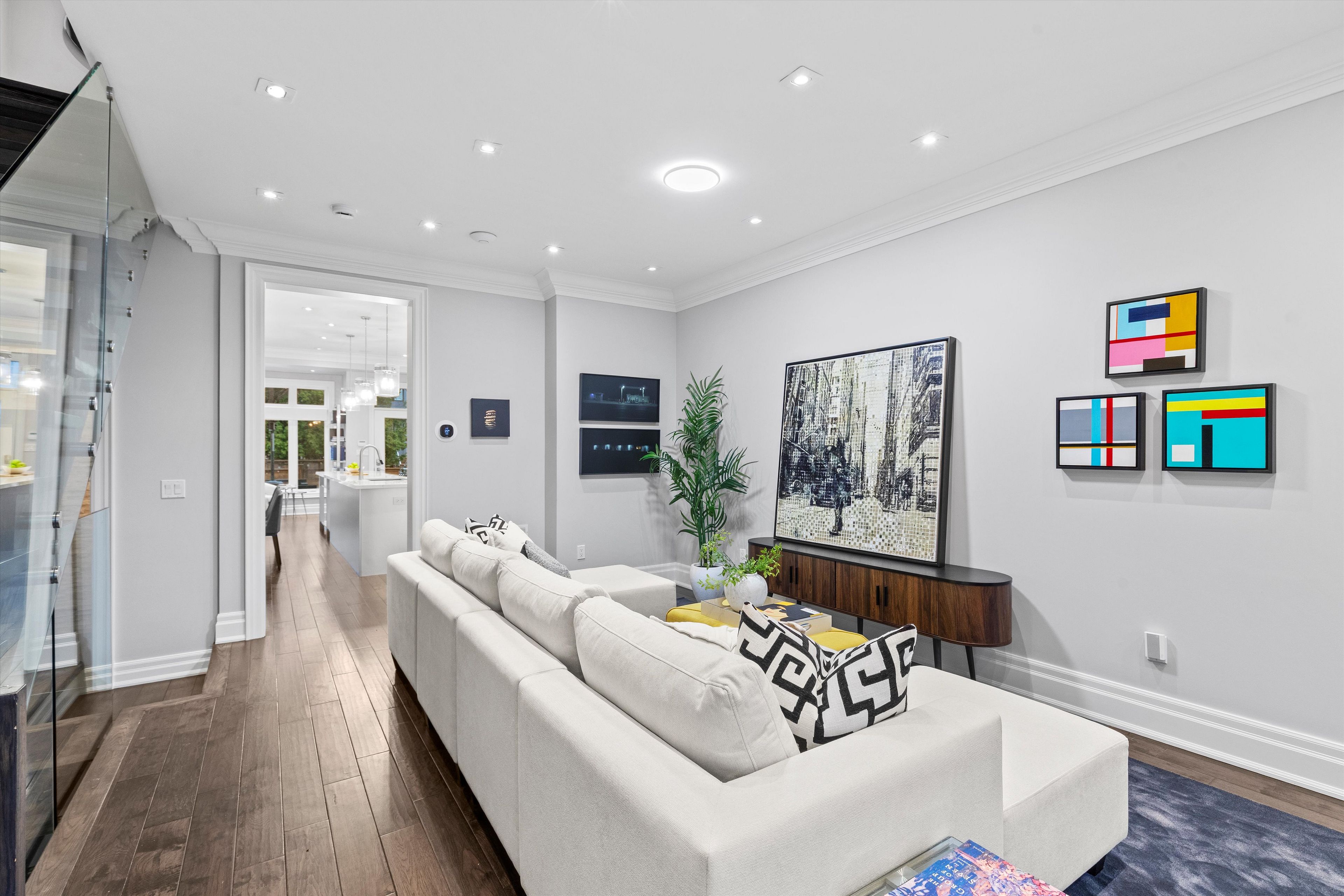 Welcome to 582 woburn avenue: an exceptional 5+1-bed, 5-bath detached 3-storey home situated on a quiet, tree-lined street in the heart of ledbury park. Spanning 2,492 sq. Ft. Above grade plus a fully finished 899 sq. Ft. Basement, this thoughtfully designed residence delivers the space, style, and functionality today's discerning buyer is looking for. The main level impresses from the moment you enter, with gleaming hardwood floors, soaring tray ceilings, and a sun-filled living room framed by a large bay window. The heart of the home is an extraordinary chef's kitchen, renovated just three years ago, featuring sub-zero, perlick, miele, and kitchenaid appliances, quartz countertops, custom cabinetry, a large centre island, and built-in banquet seating. To top it off, the kitchen comes equipped with three ovens and a large banquet dining area, making hosting a dream. From the kitchen, walk out to a private elevated deck, stone patio, and two-car laneway parking. Upstairs, the serene primary suite offers a walk-in closet, custom built-ins, and a stunning 5-piece marble ensuite with his-and-hers sinks. Four additional bedrooms span the upper levels, along with a beautifully appointed 4-piece bath and a serene third-floor retreat complete with its own 3-piece bath, skylight, and private terrace. The finished basement adds a spacious recreation room with a gas fireplace, a walk-up to the back patio, a laundry room, and a sixth bedroom with a full bathroom. Perfect for a live-in nanny, extended family or guests. Located in the catchment for ledbury park elementary and middle school (jk-8) and john polanyi collegiate institute (9-12) are among the most sought-after public schools in the city. Steps to lawrence subway station, pusateri's, top-rated restaurants, and parks. A rare opportunity in one of toronto's most beloved neighbourhoods.