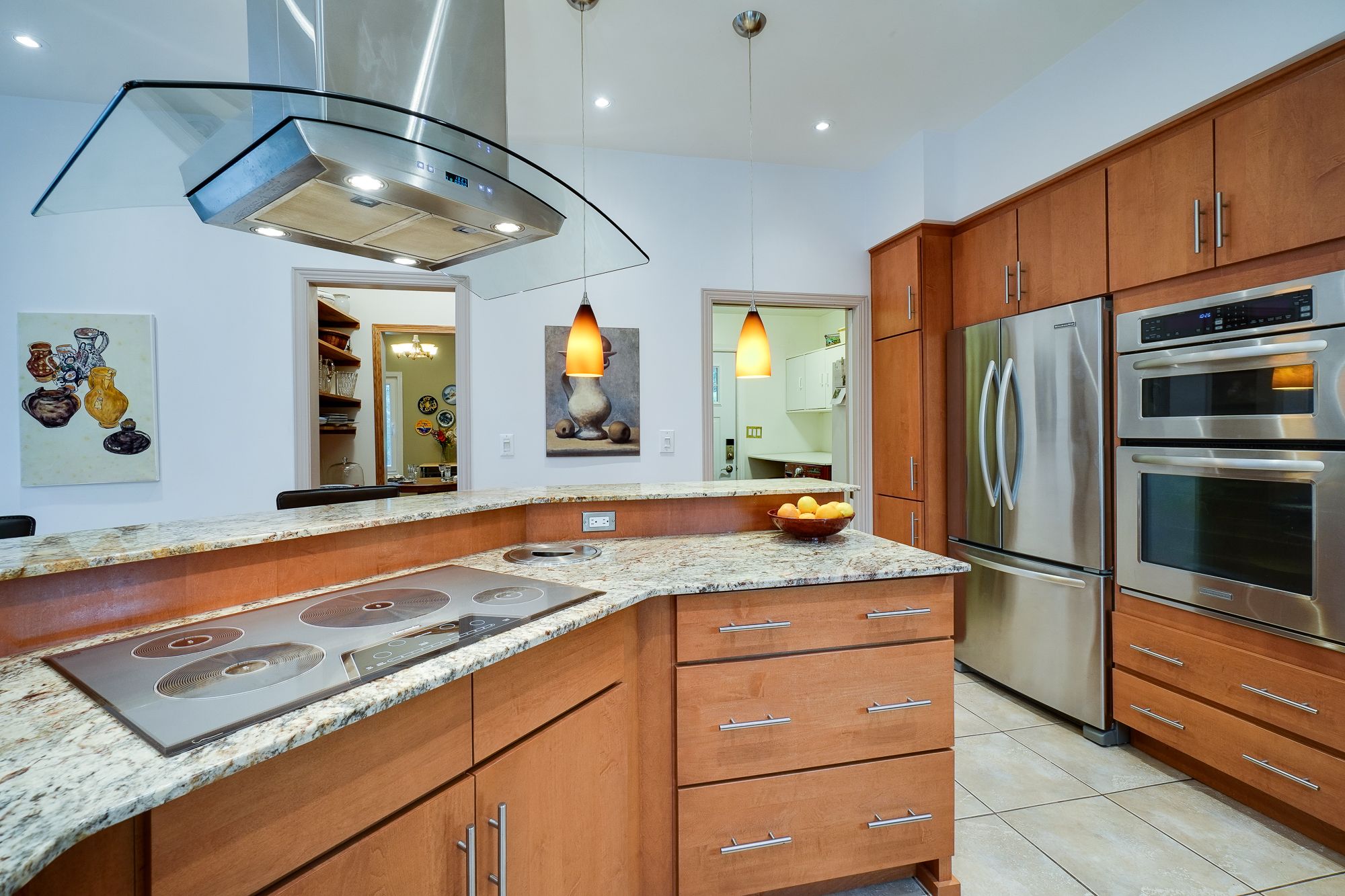 • Custom kitchen with granite countertops, butler's pantry, and built-in appliances.